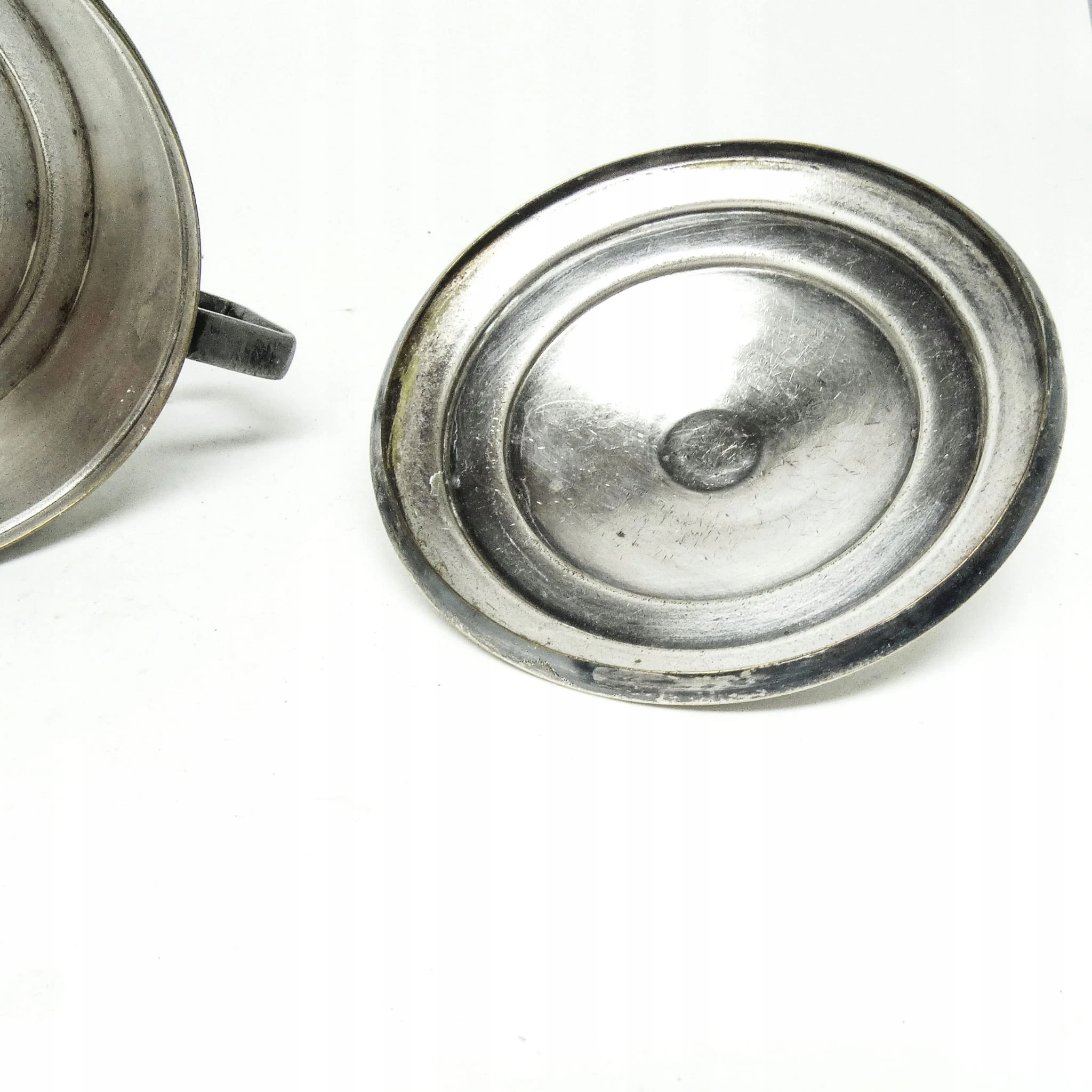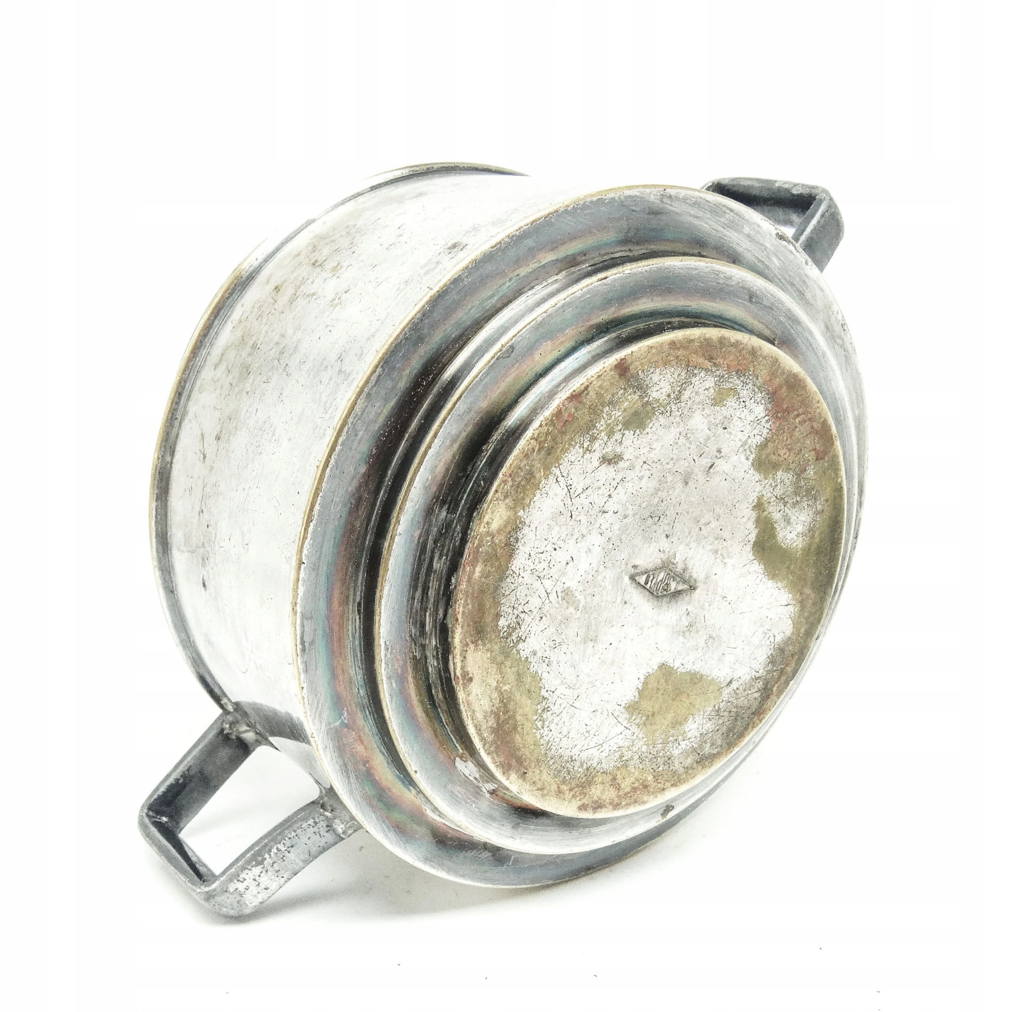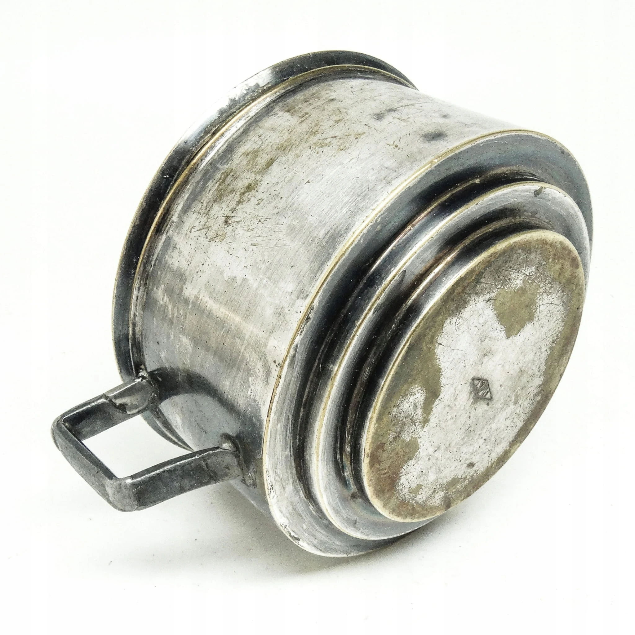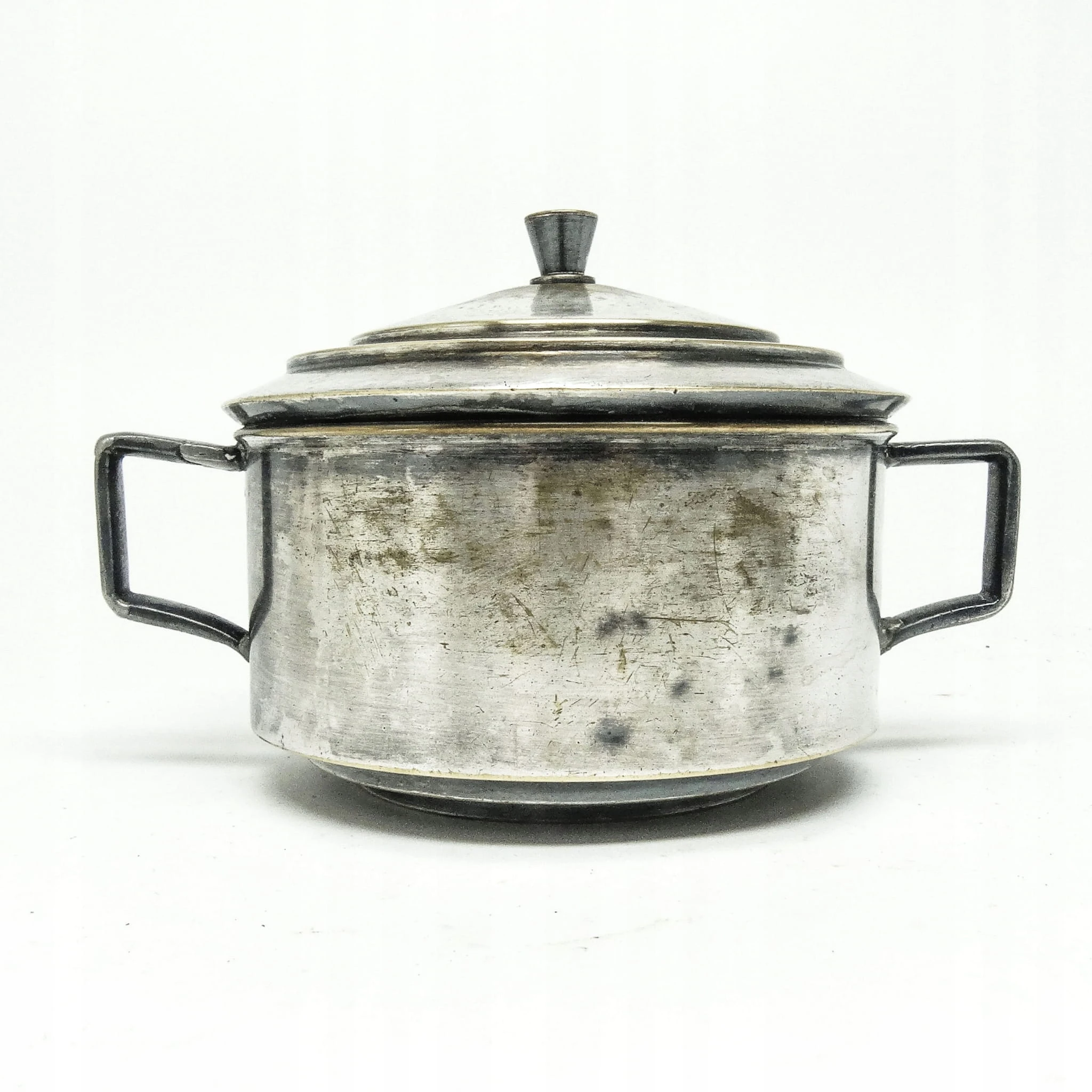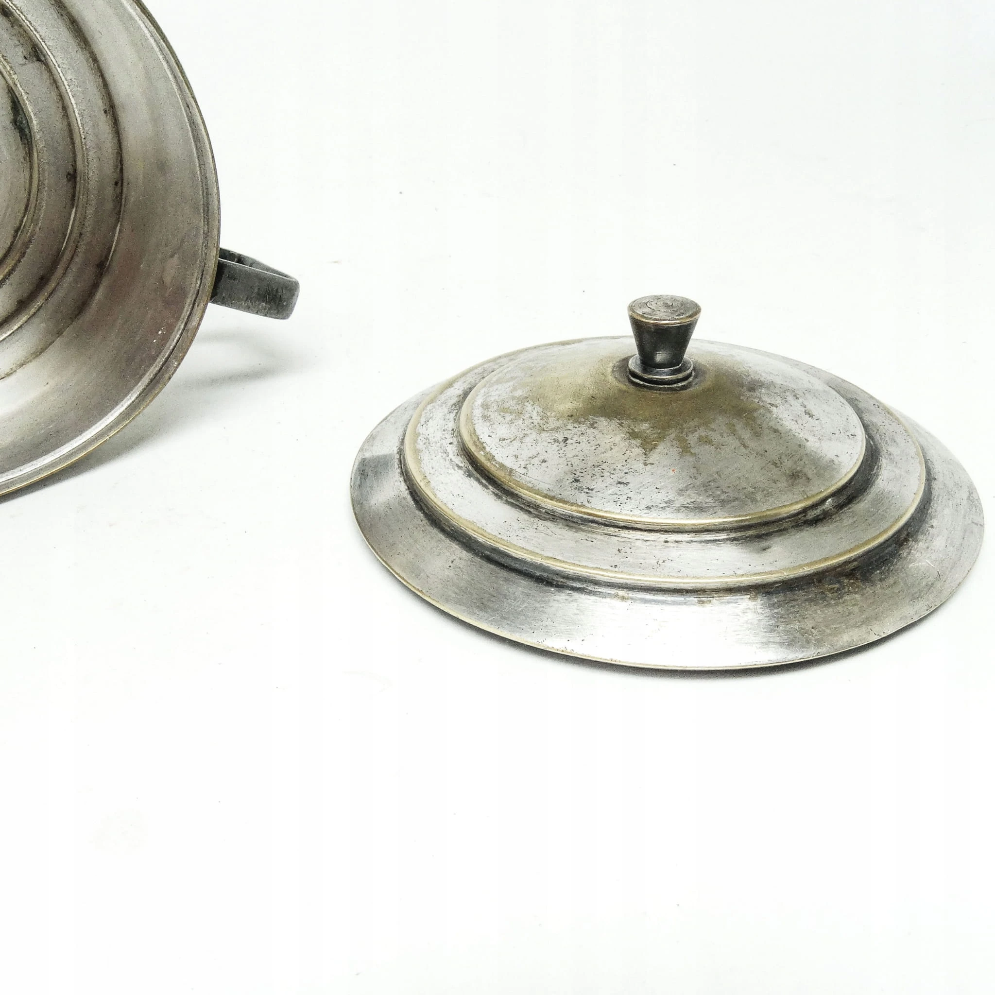 Cukiernica wyprodukowana w latach 30. przez wytwórnie Sopyło. Wykonana została z platerowanego mosiądzu. Stan na zdjęciach.