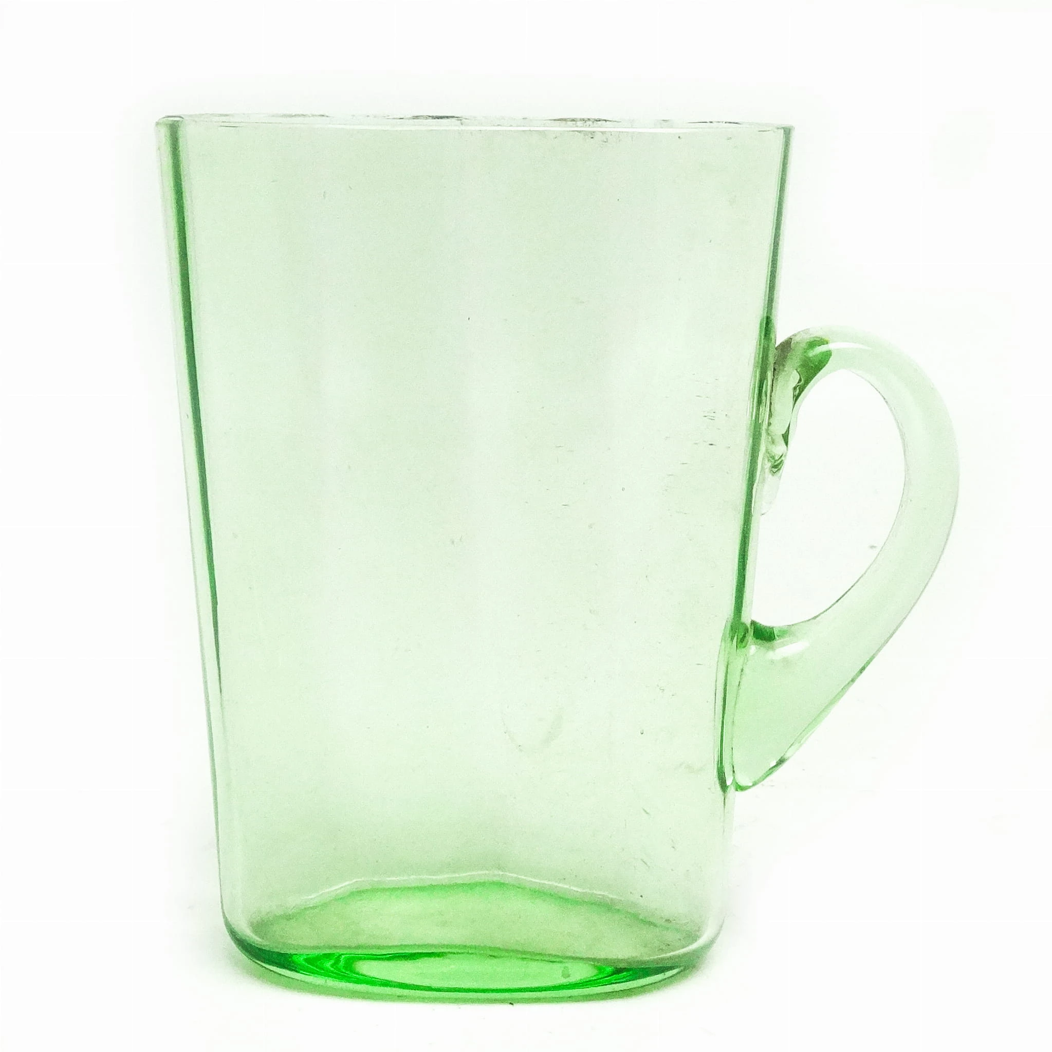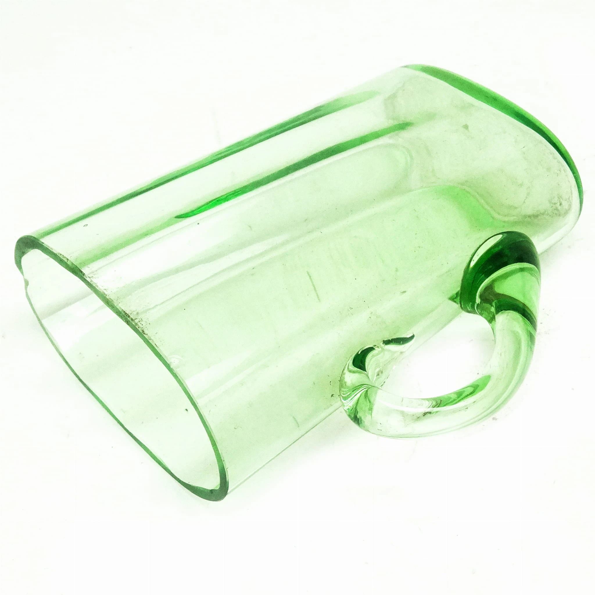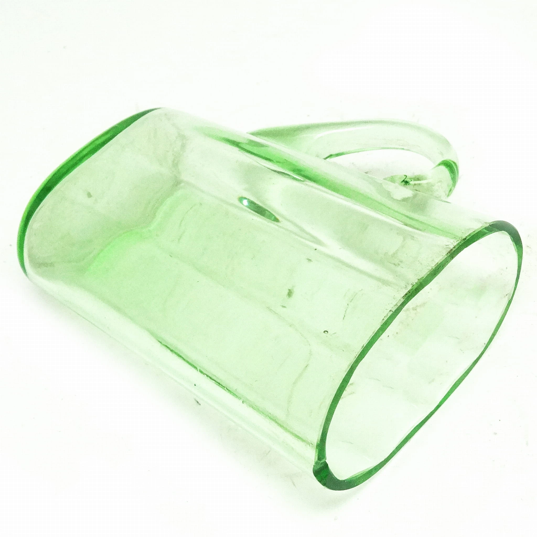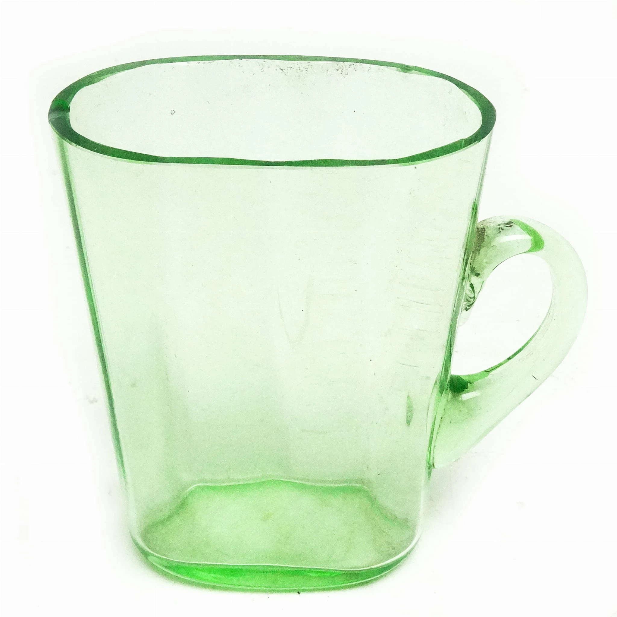 Miarka do wód uzdrowiskowych wyprodukowana została w Niemczech w latach 1900-1915. Uszkodzona, łuska na rancie została pokazana na zdjęciu. Szkło jest uranowe.