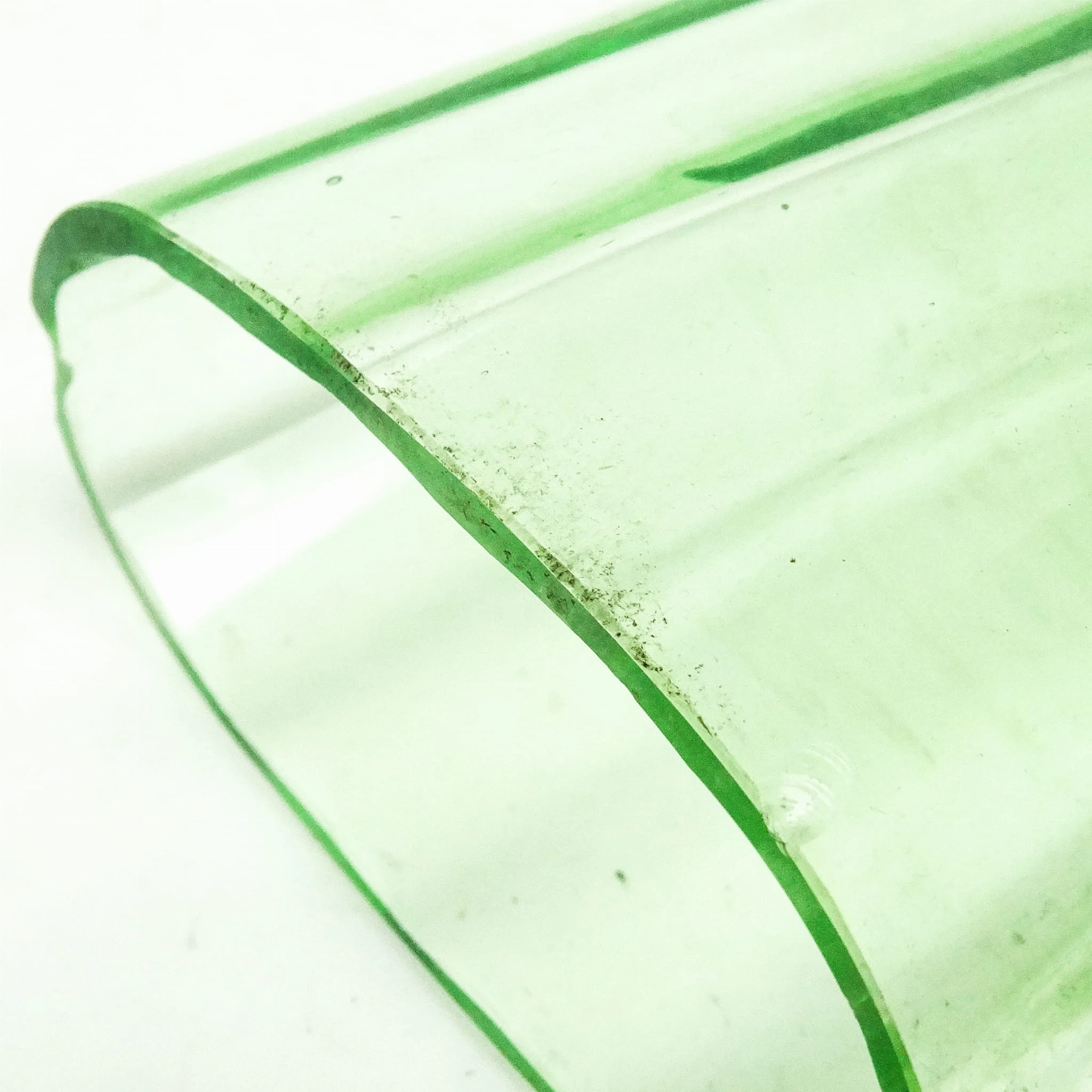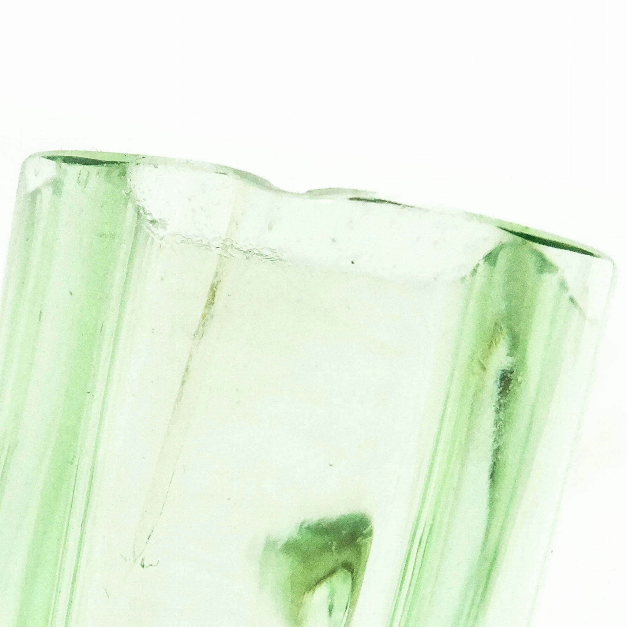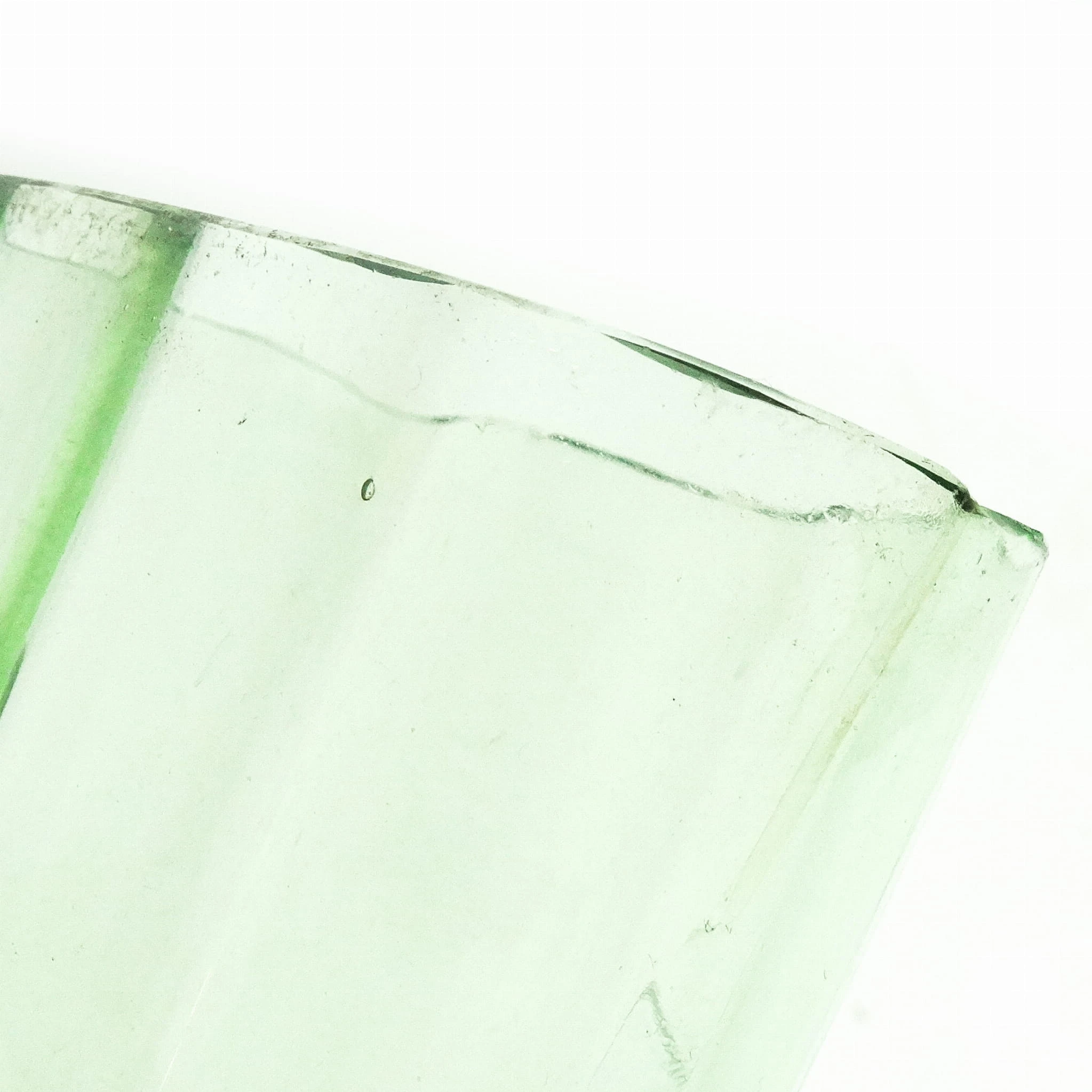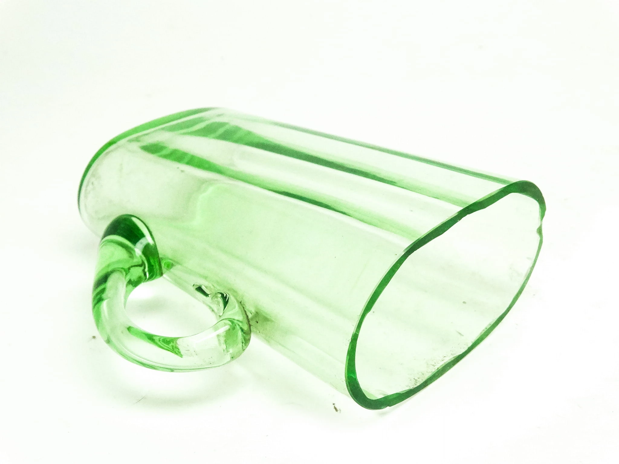 Miarka do wód uzdrowiskowych wyprodukowana została w Niemczech w latach 1900-1915. Uszkodzona, łuska na rancie została pokazana na zdjęciu. Szkło jest uranowe.