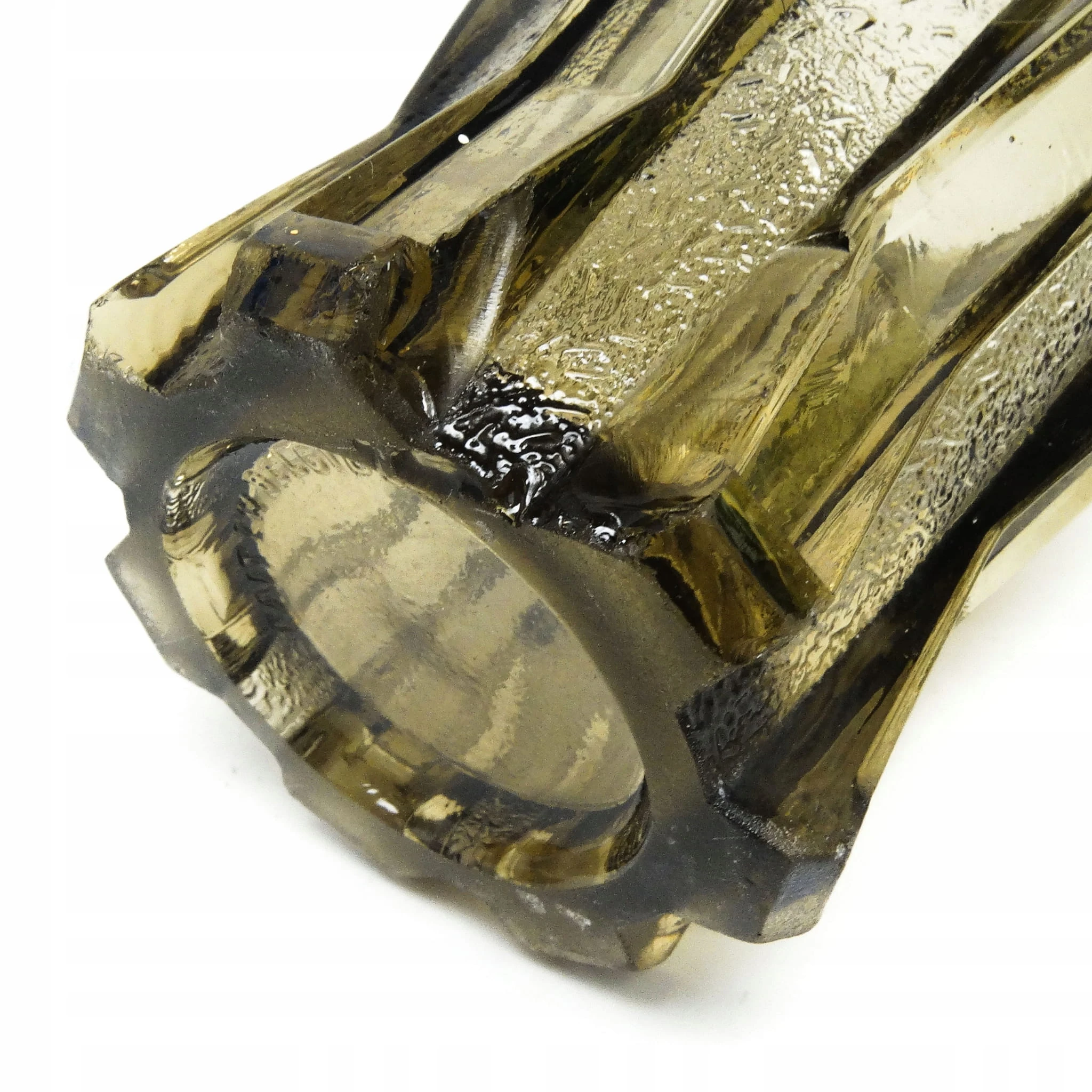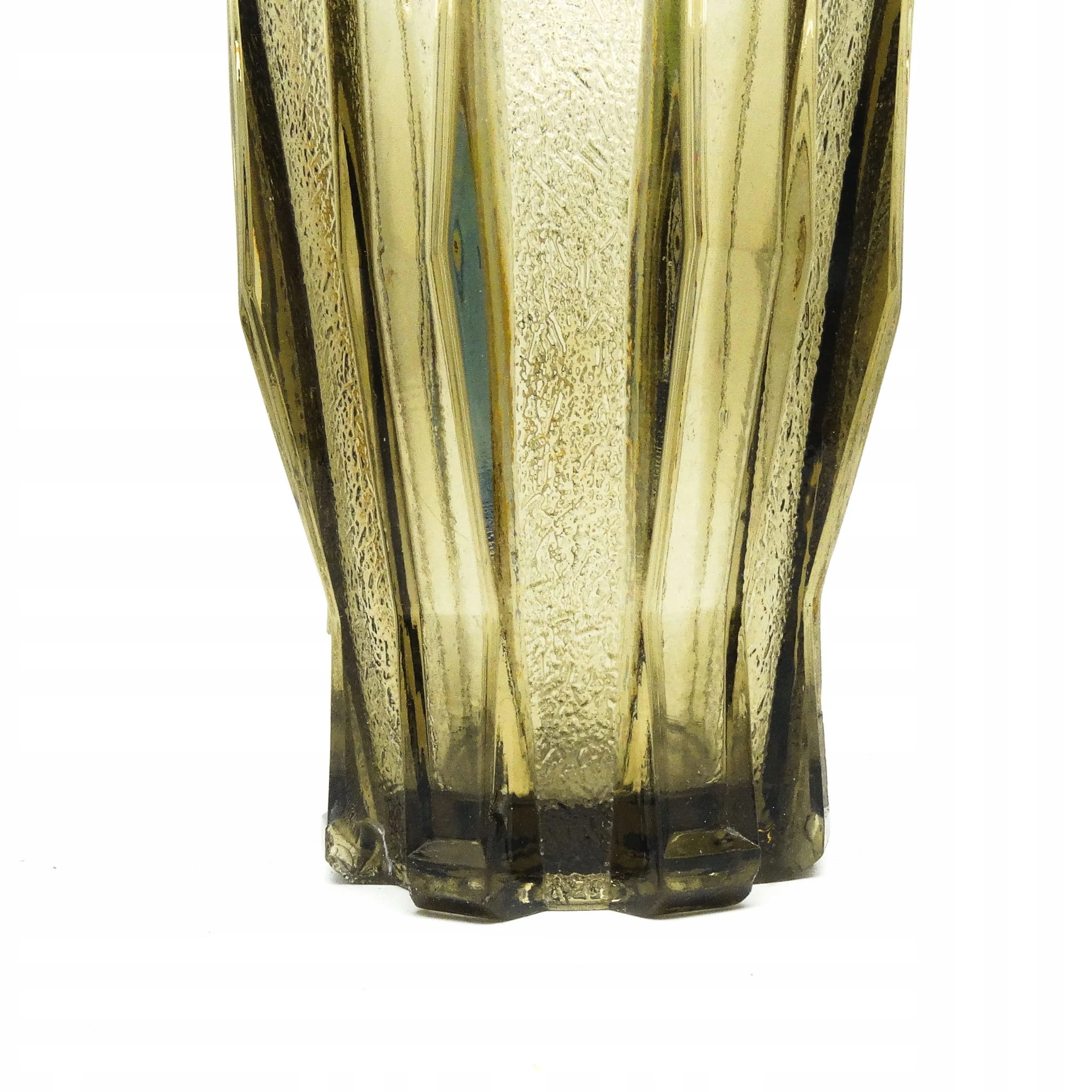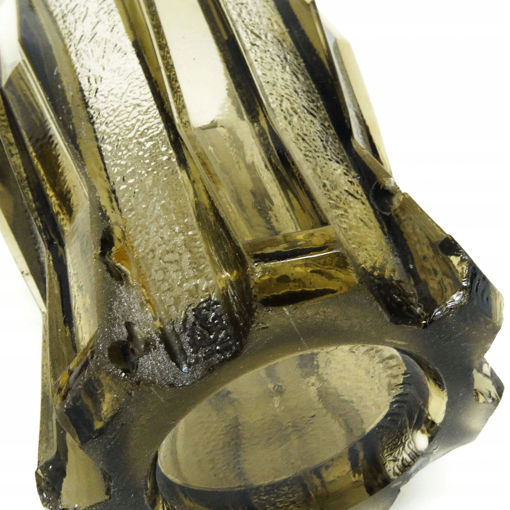 Wazon o nazwie Skymont wykonany został w belgijskiej hucie szkła Val Lambert. Wykonany w latach 50. Nosi ślady uzytkowania w postaci odprysków pokazanych na zdjęciach.