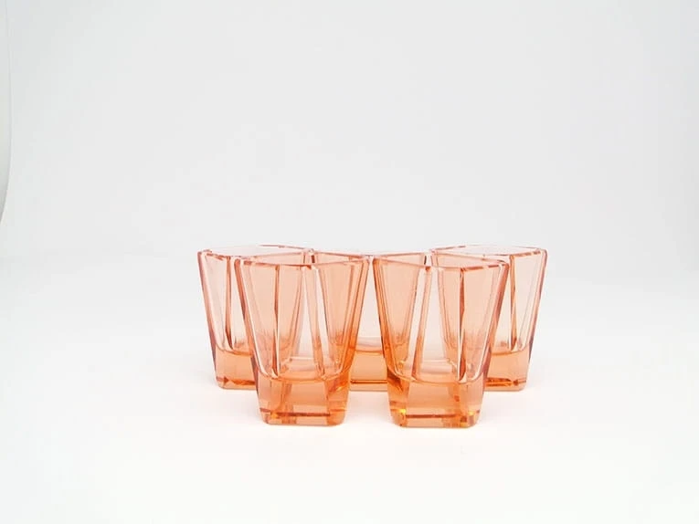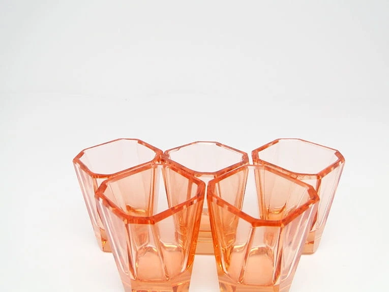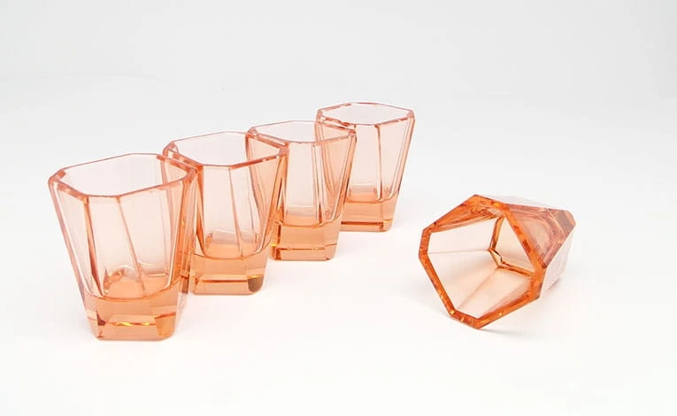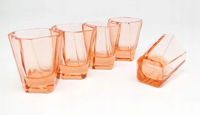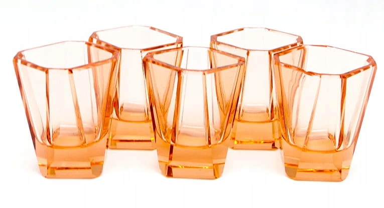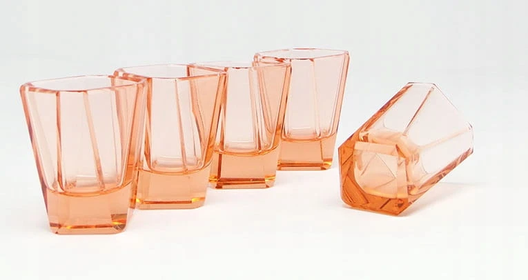 Kieliszki do wódki wykonane ze szkła szlifowanego.