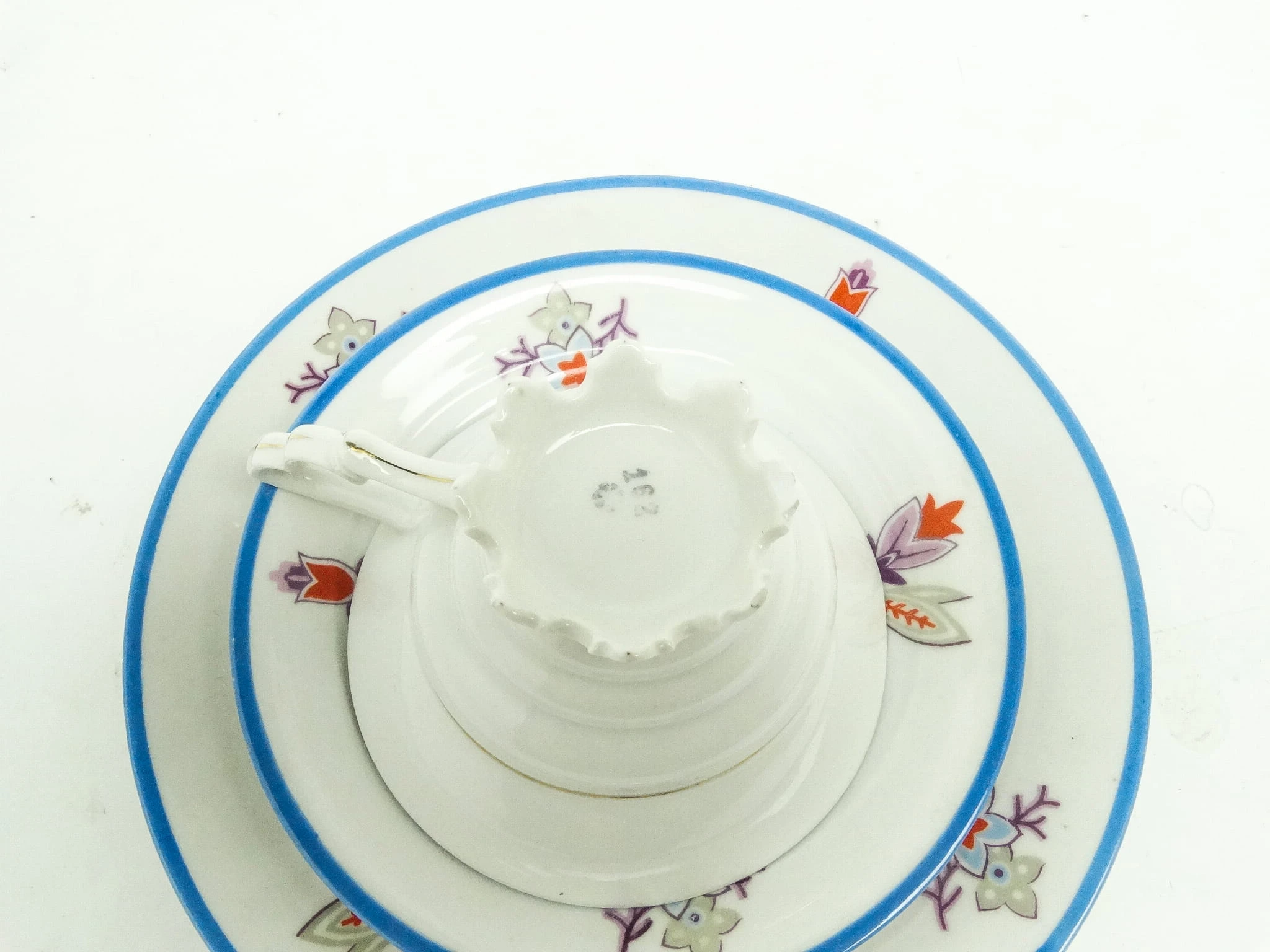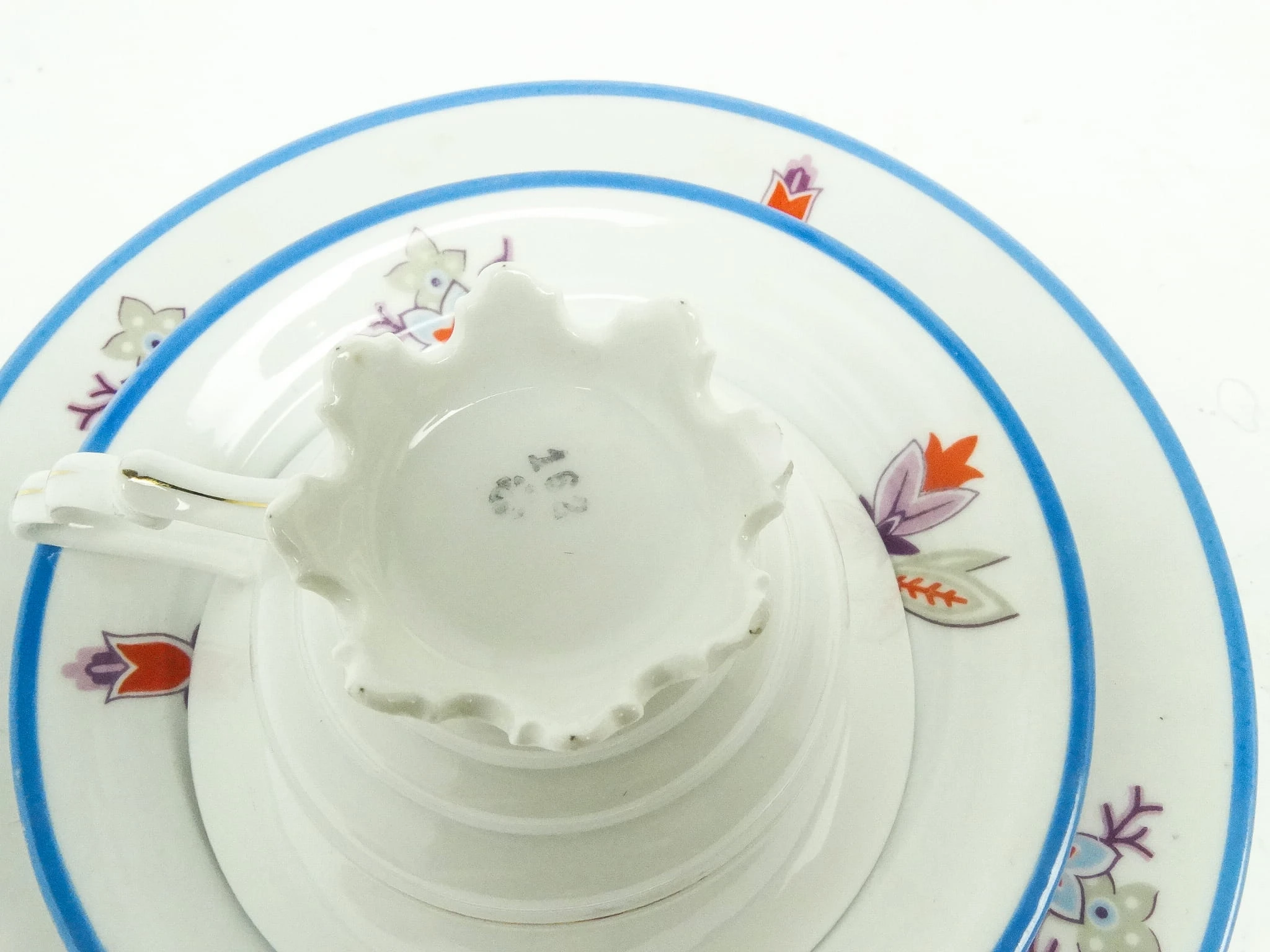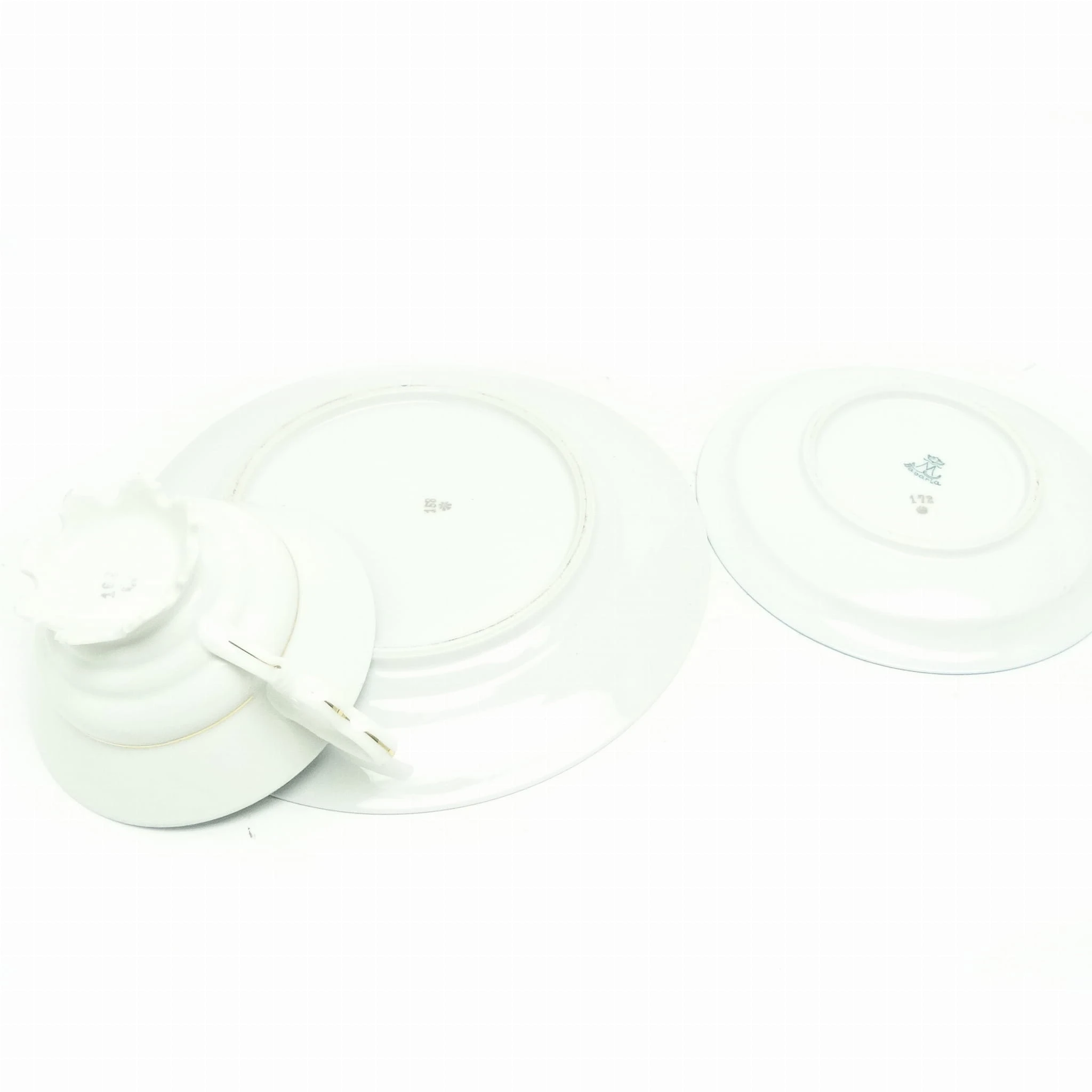 Biała cienka porcelana glazurowana, malowana ze złoceniami.