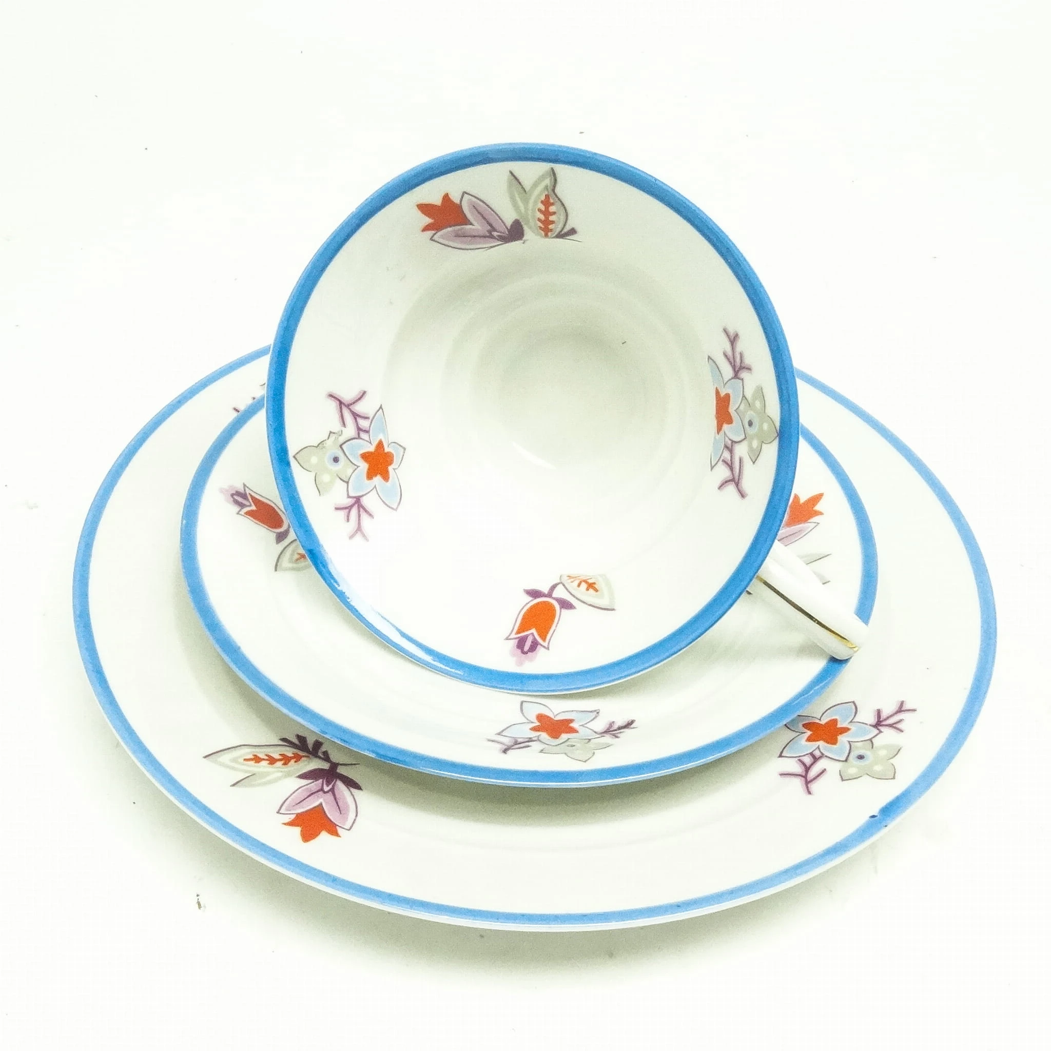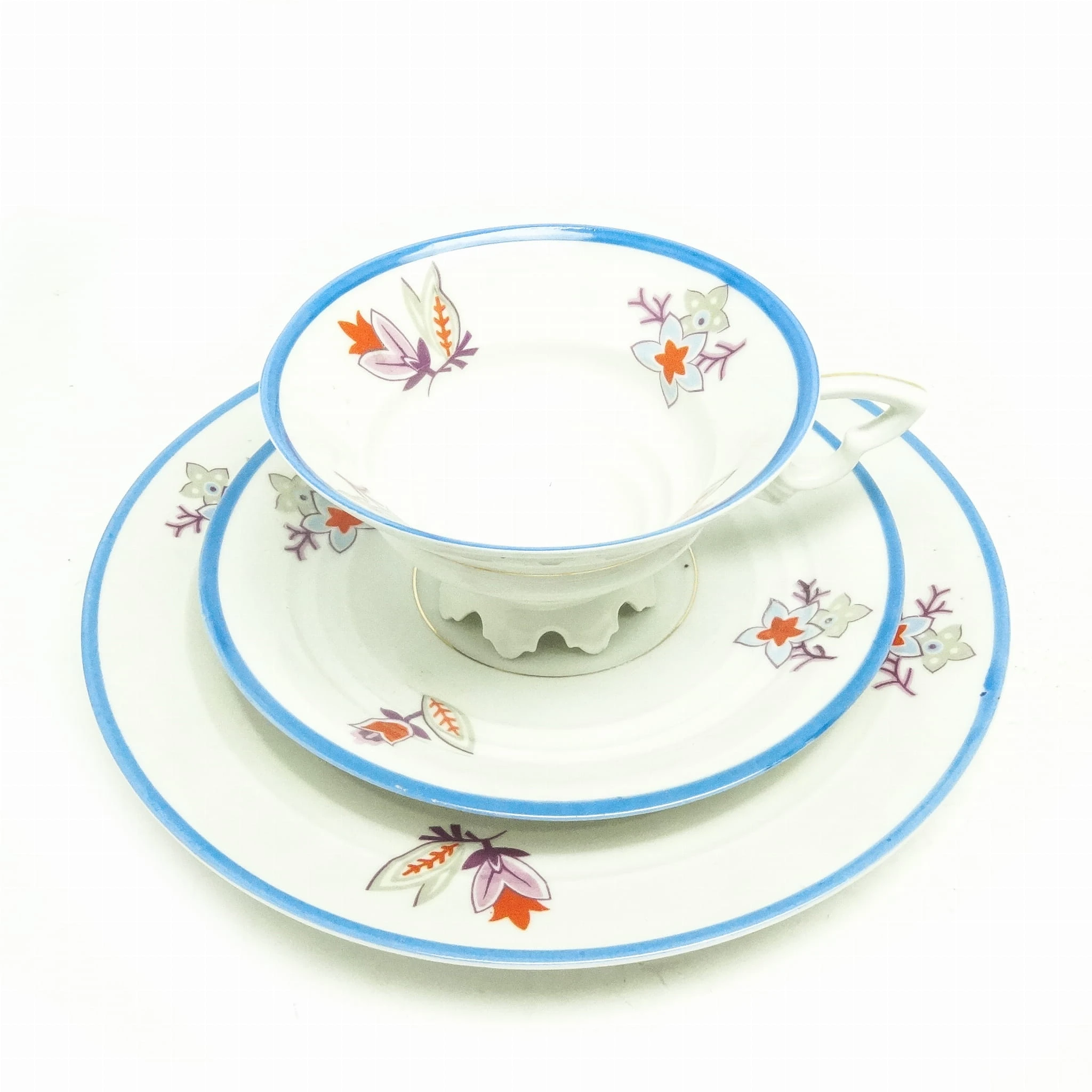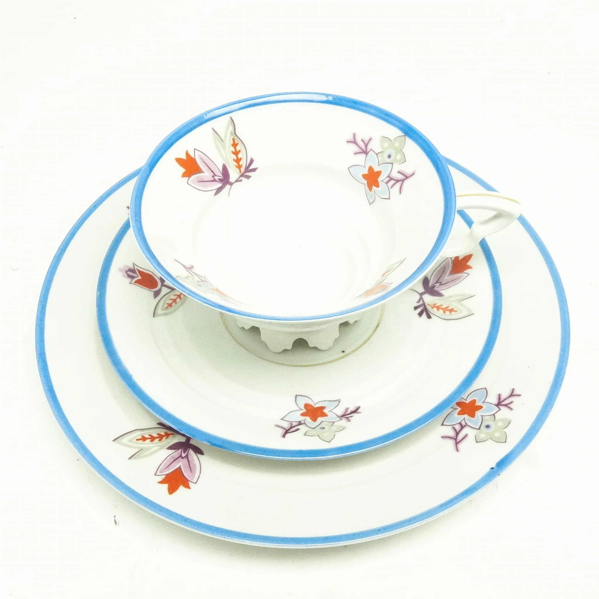 Biała cienka porcelana glazurowana, malowana ze złoceniami.