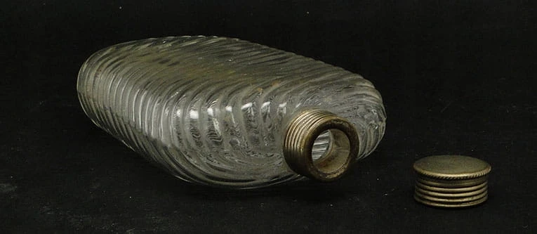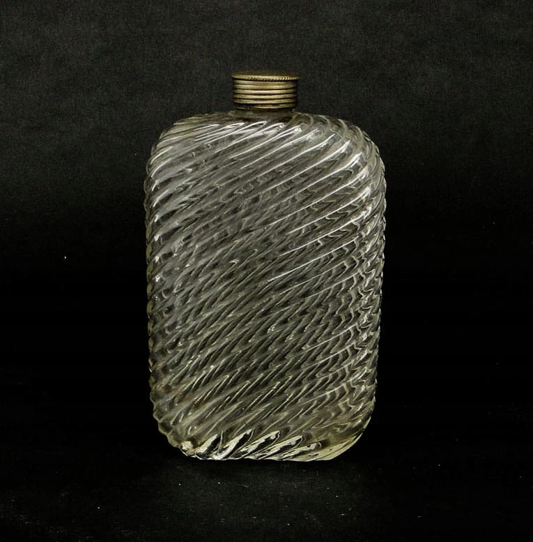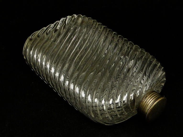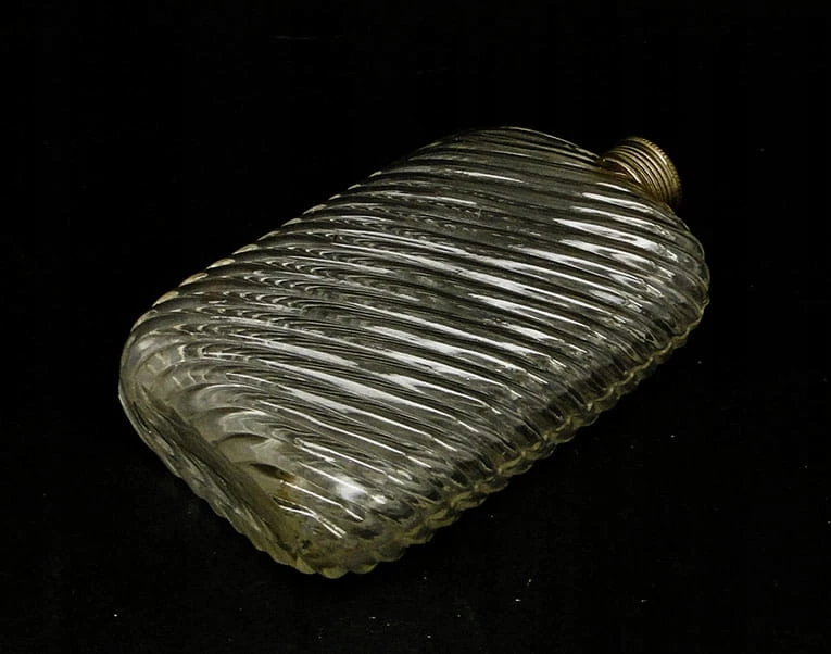 Piersiówka ART DECO. Materiał, z którego została wykonana to szkło rychlowane.