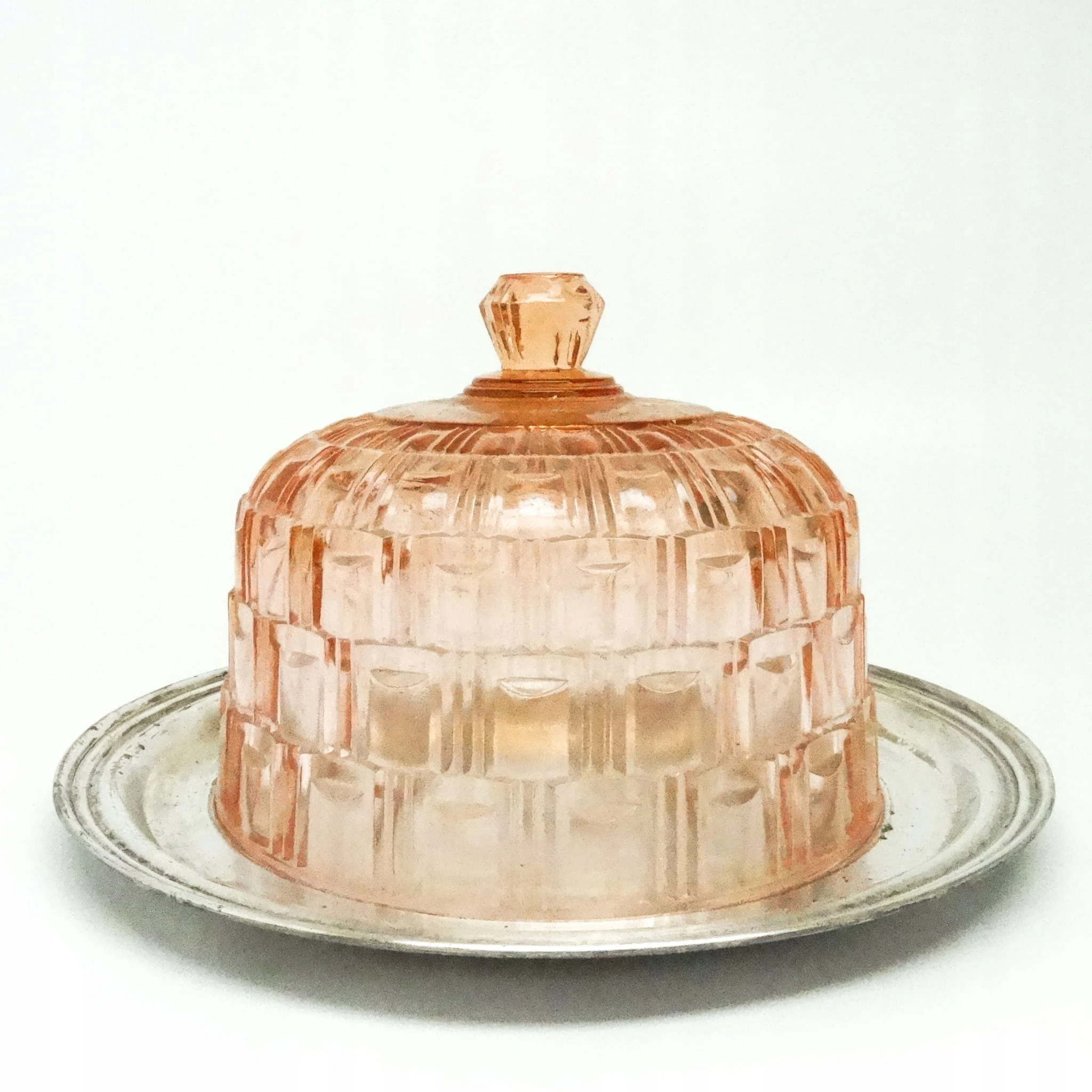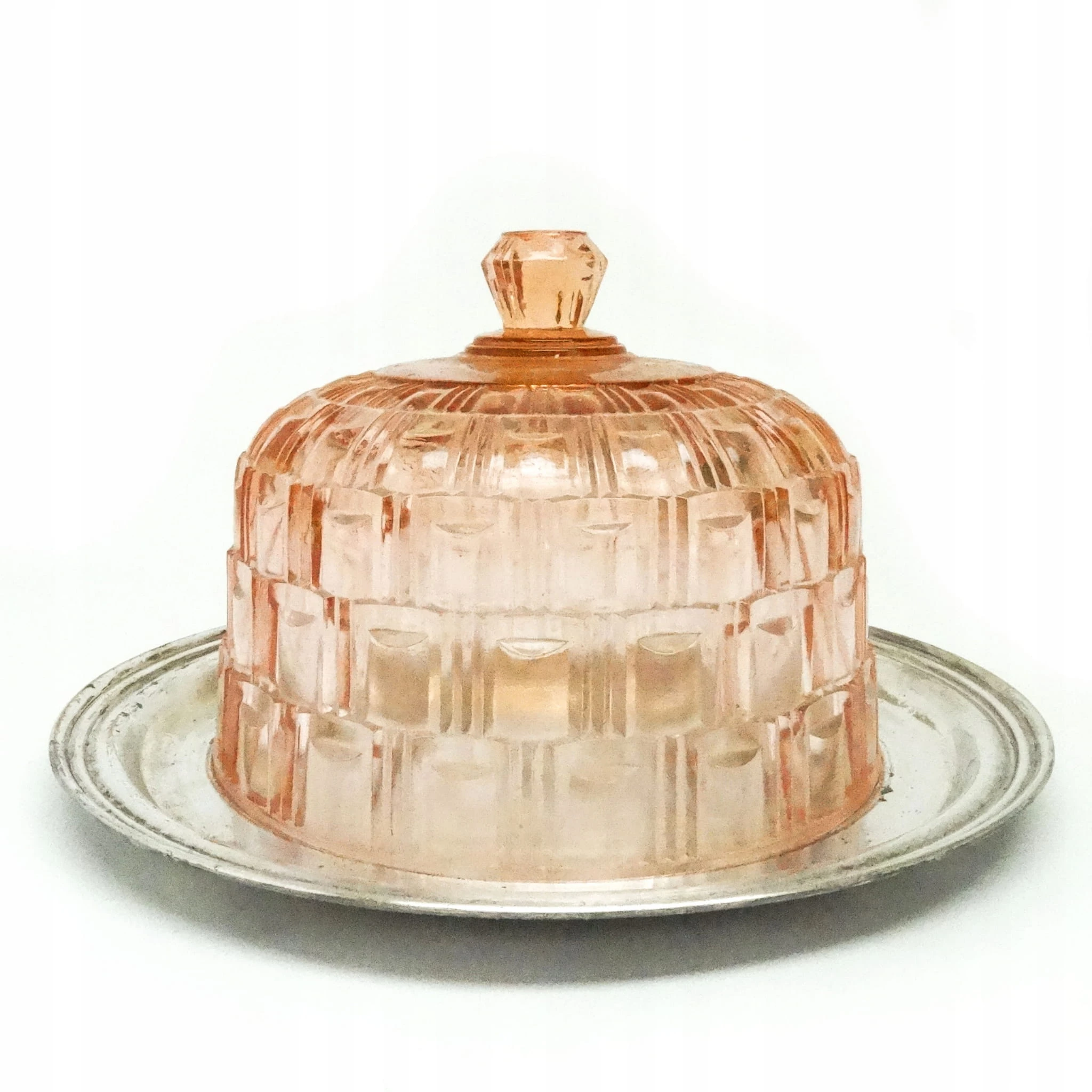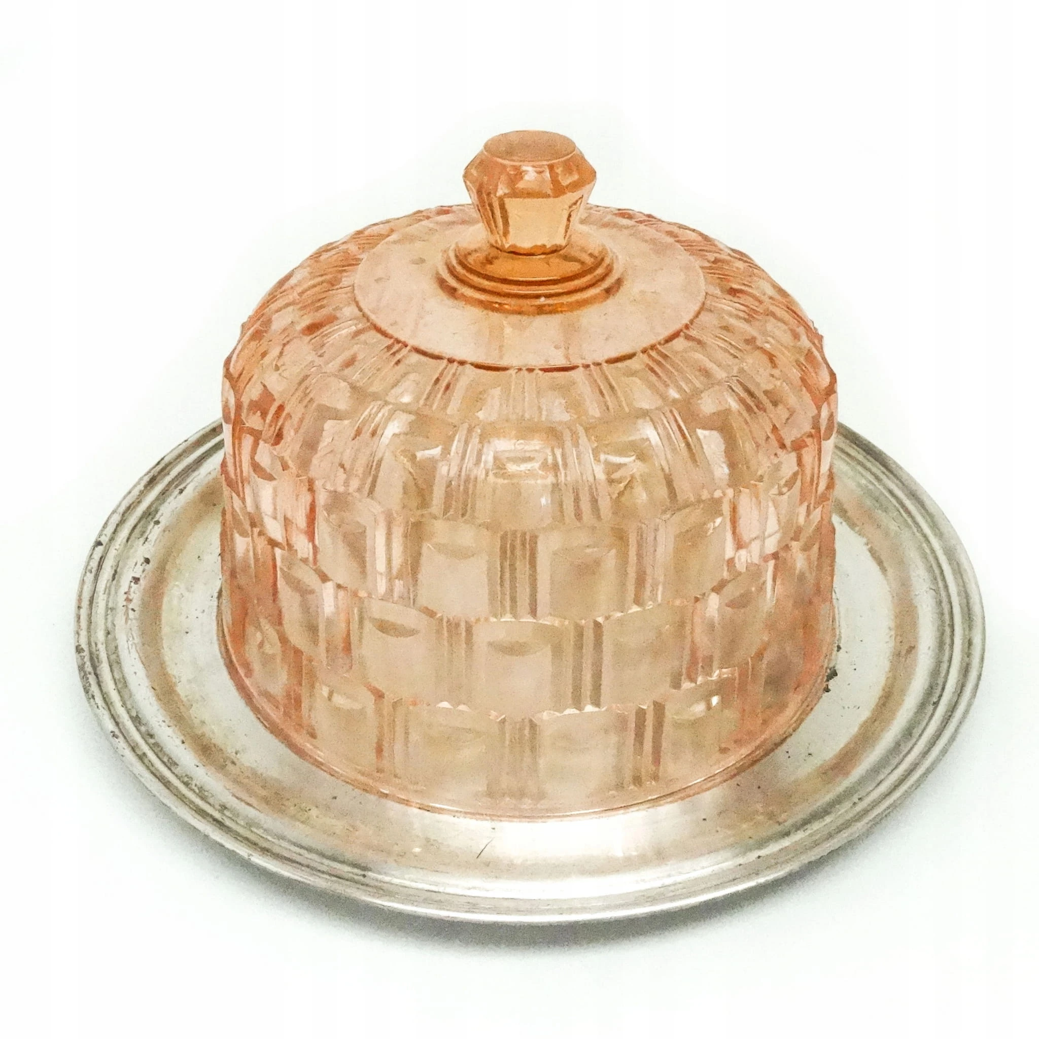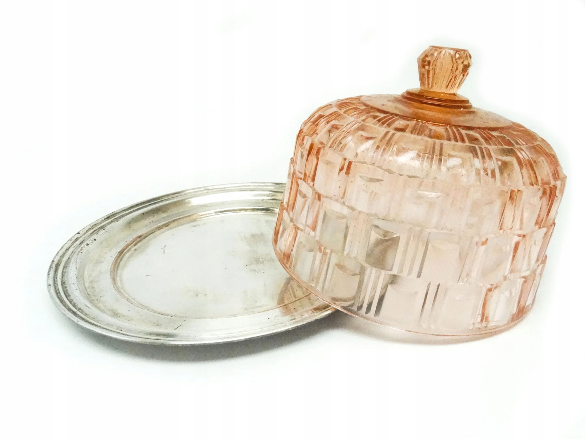 Klosz do ciasta z tacą został wyprodukowany w Niemczech w latach 30. Stan dobry. Kryształ oraz taca.