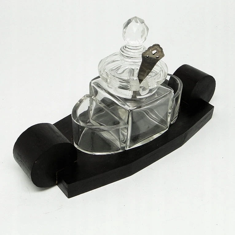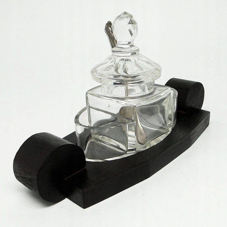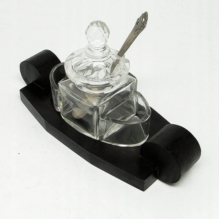 DXA ART DECO - kryształowy kabaret na przyprawy na drewnianej machoniowej podstawie