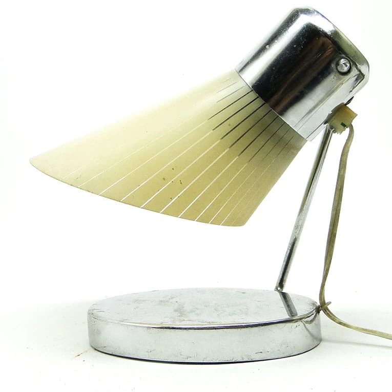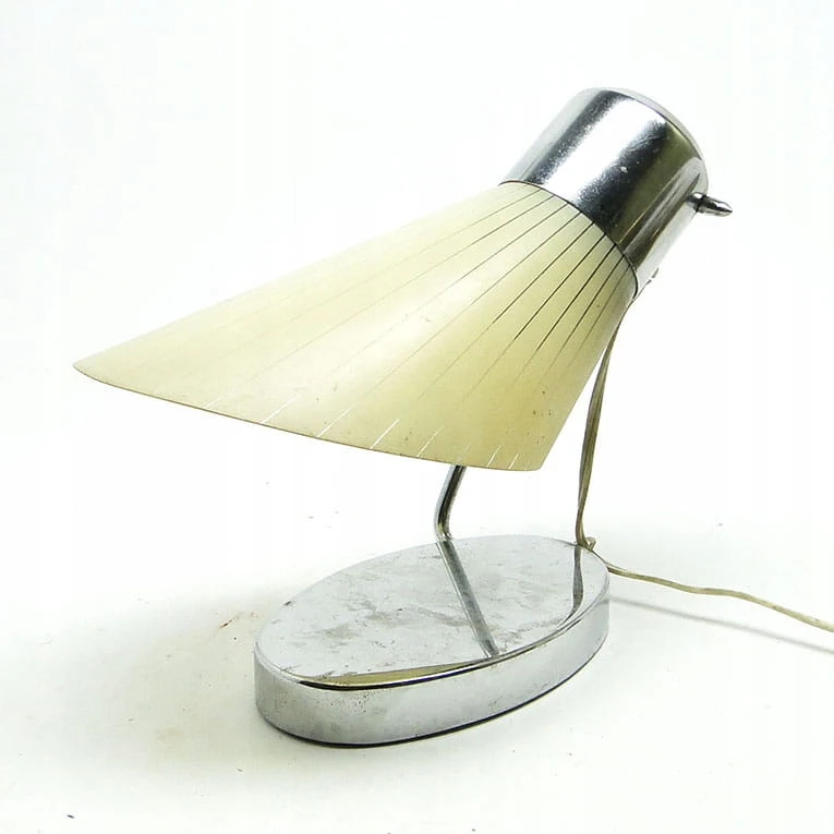 Lampka nocna pochodzi z Czechosłowacji. Została wyprodukowana w latach 50. Konstrukcja jest metalowa, chromowana. Lampka została zachowana w dobrym stanie, jest sprawna technicznie. Pochodzi on z okresu 1950-59.
