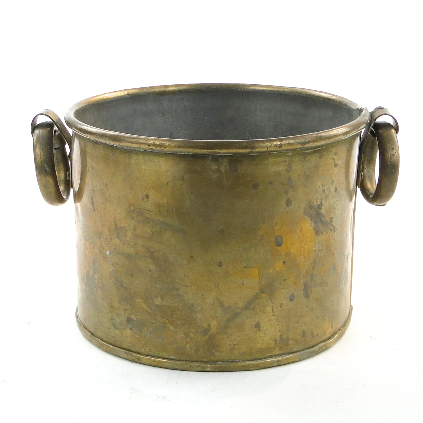Osłona na doniczkę wyprodukowany w latach 60. w Polsce. Wykonana została z mosiądzu. Stan dobry.
