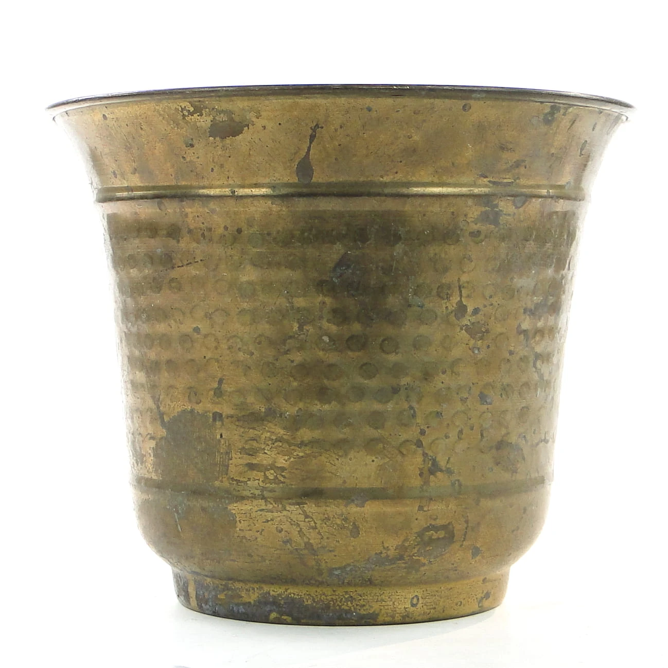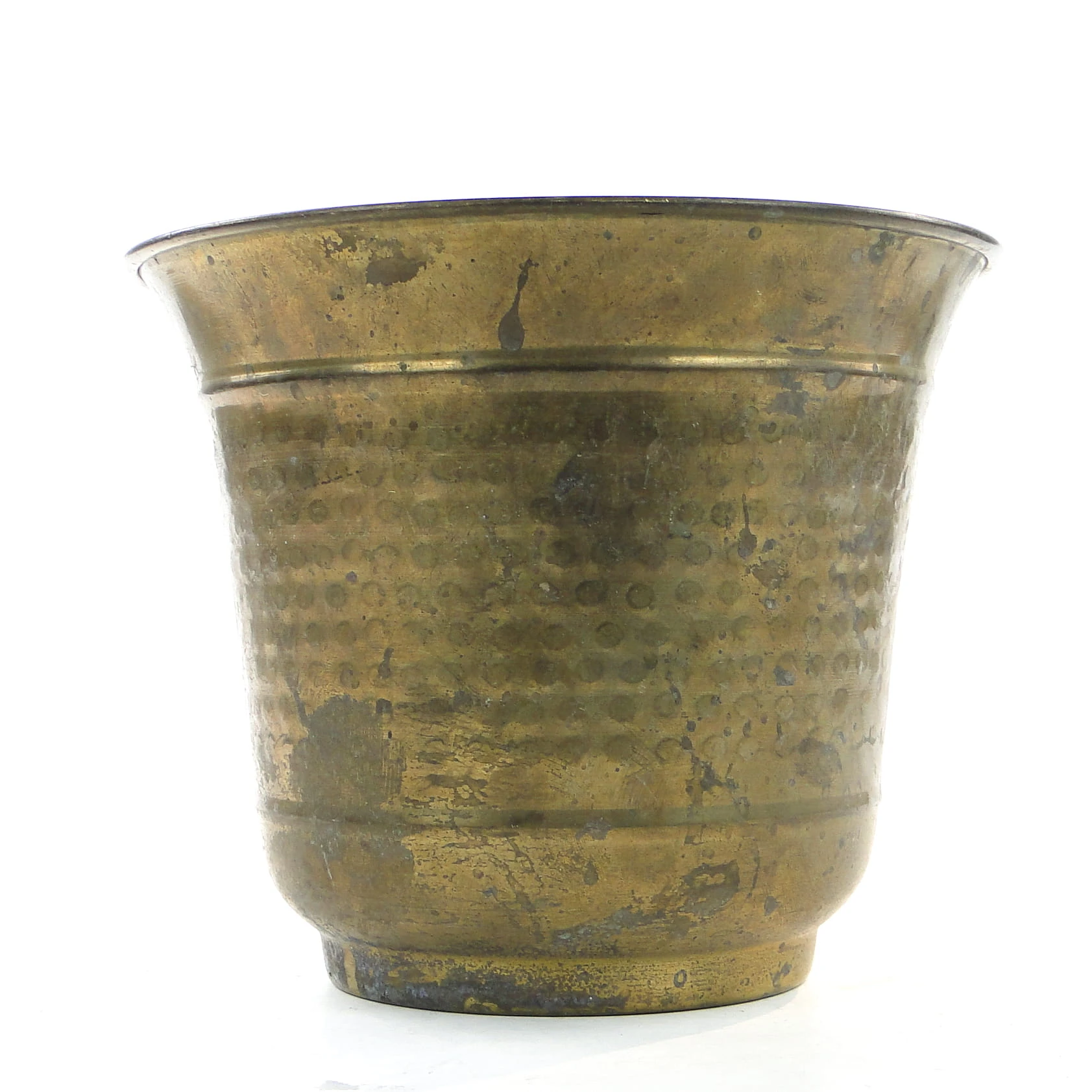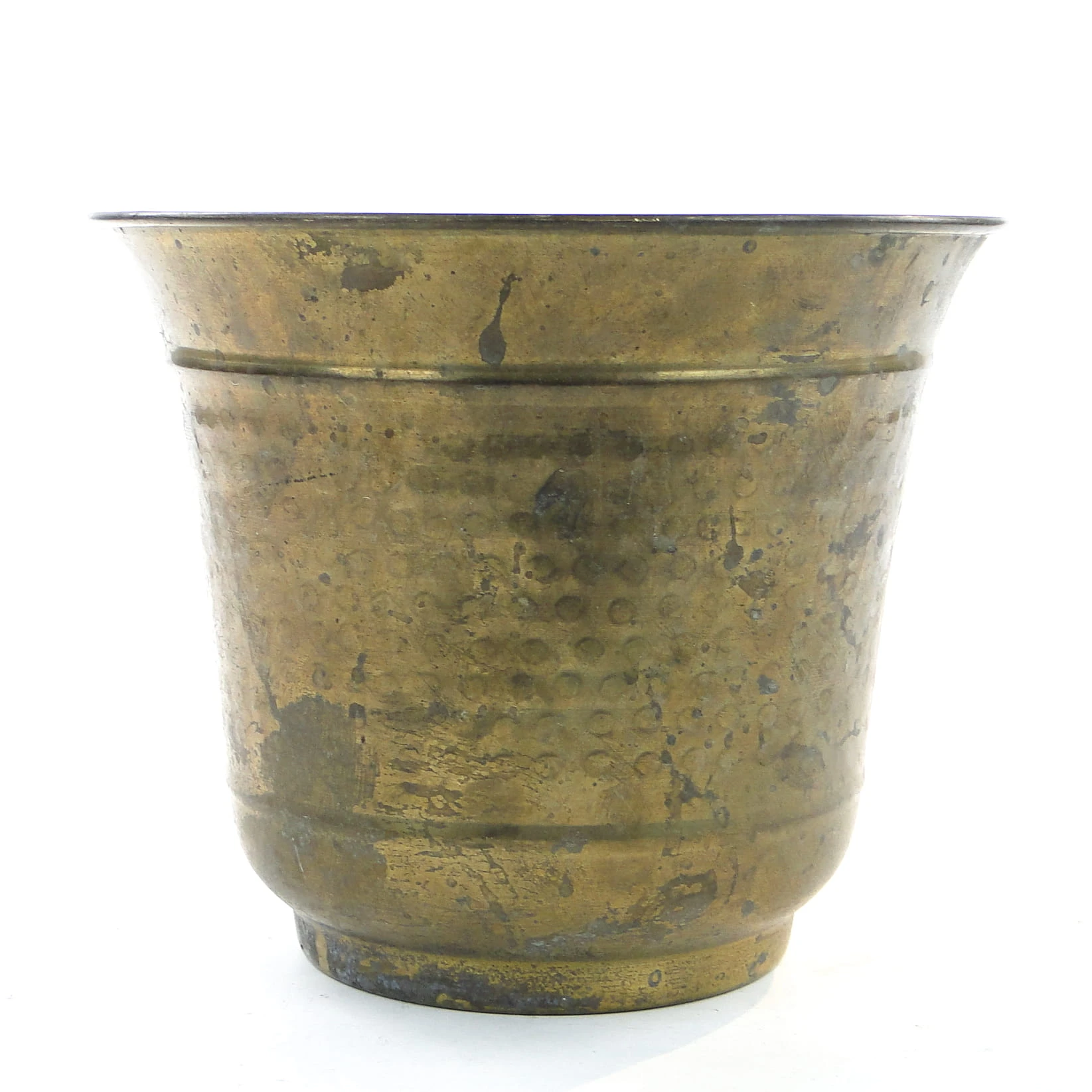 Osłona na doniczkę wyprodukowany w latach 60. w Polsce. Wykonana została z mosiądzu. Stan dobry.