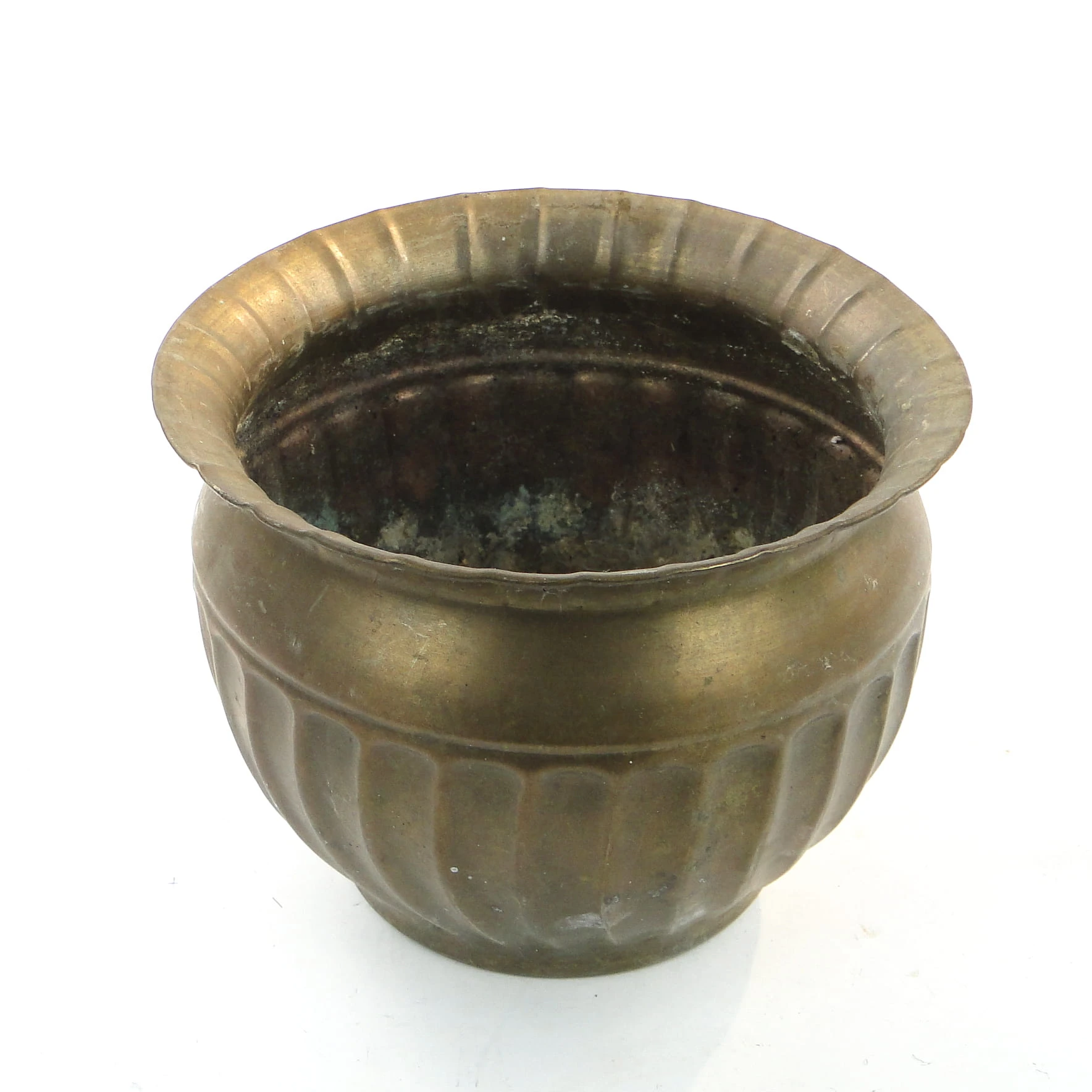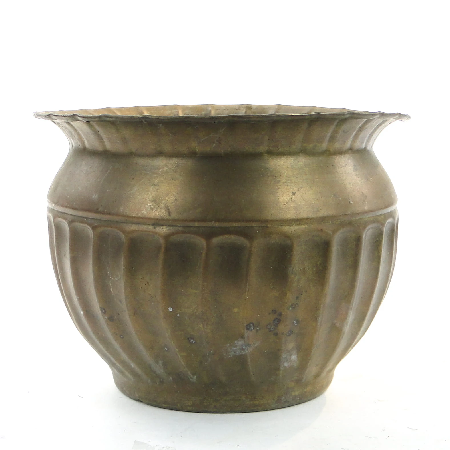 Osłona na doniczkę wyprodukowana w latach 60. w Polsce. Wykonana została z mosiądzu. Stan dobry.
