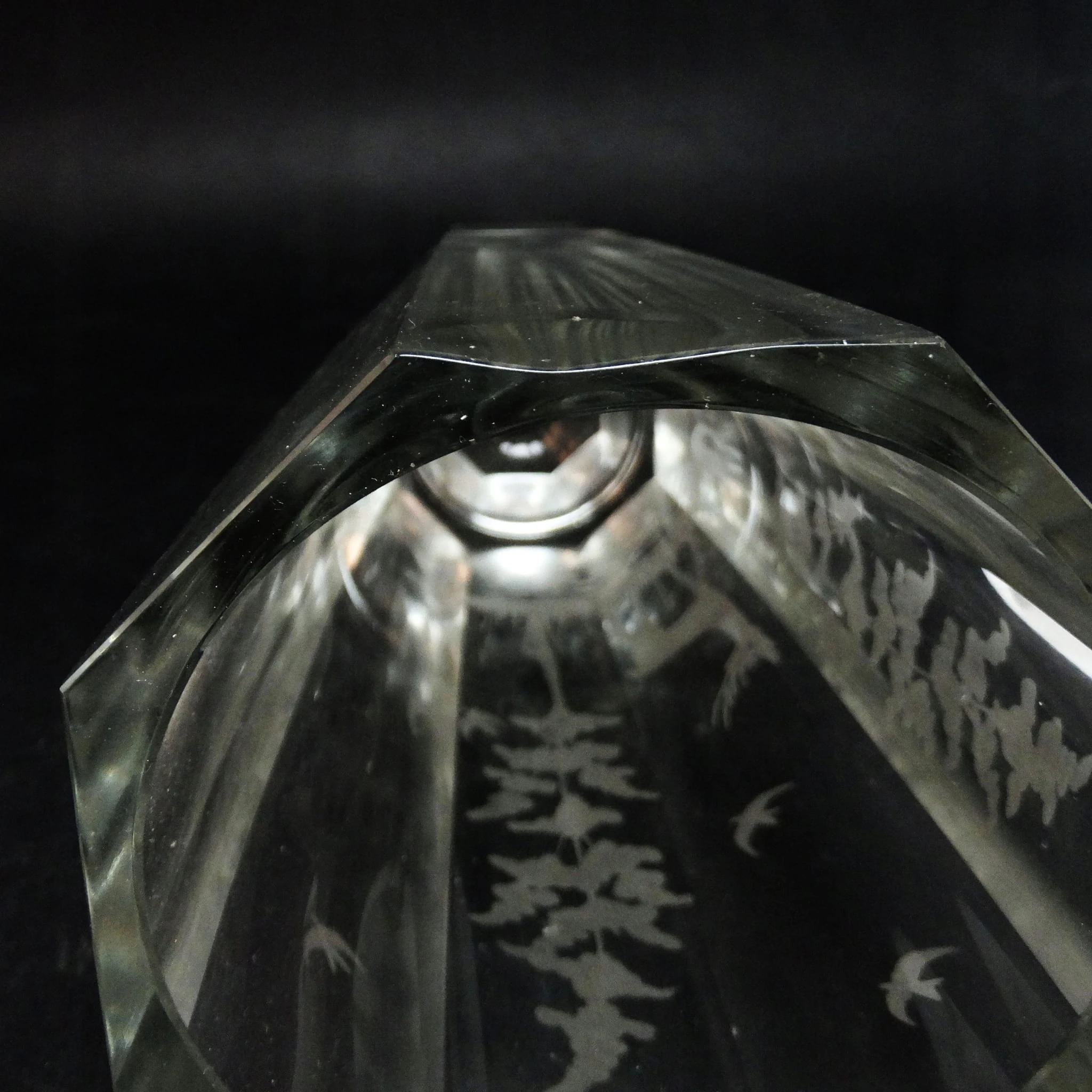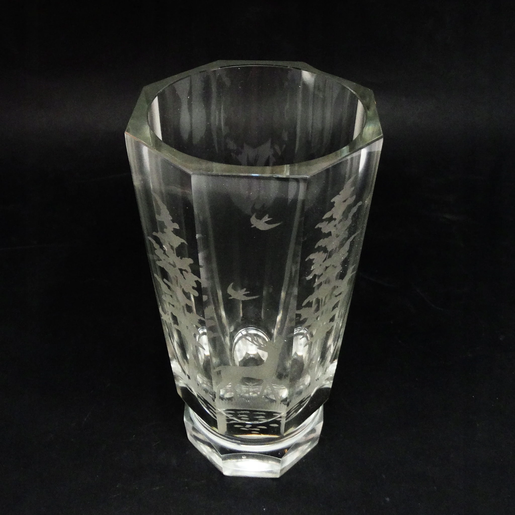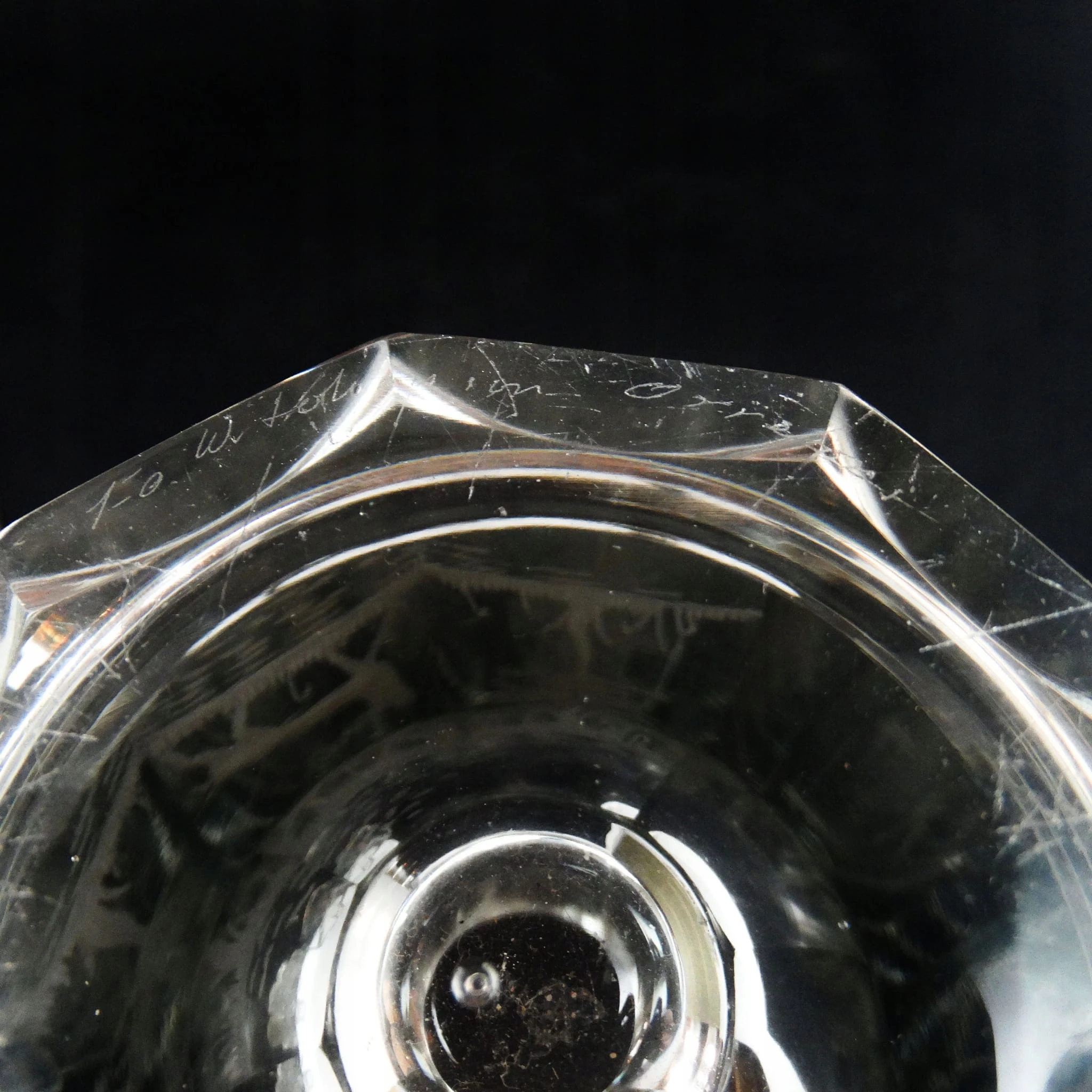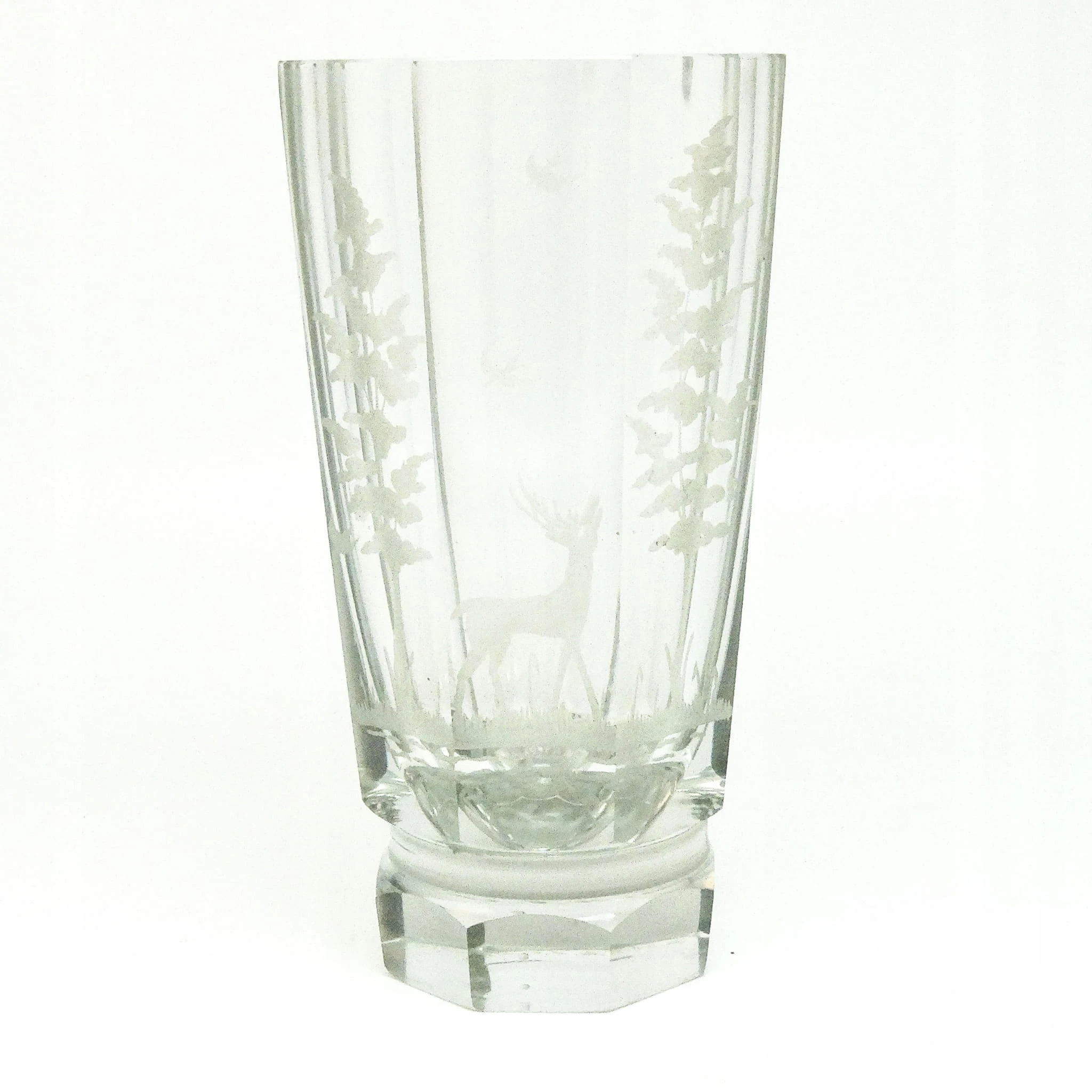 Wazon wyprodukowany został w Belgii w latach 30. Wykonany jest z fasetowanego szkła. Posiada grawerowane wzory oraz dodatkowe oznaczenia. Zachowany w stanie dobrym.