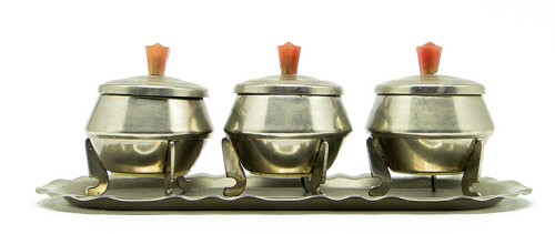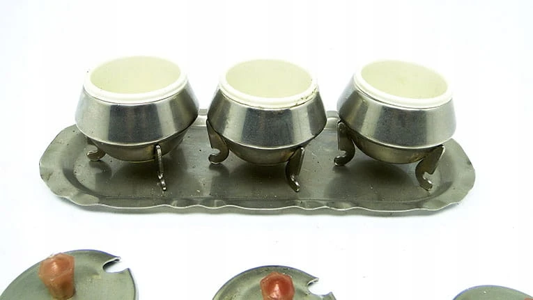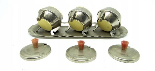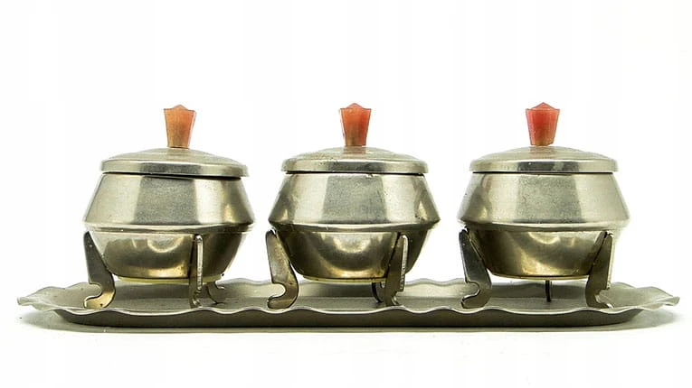 ART DECO/POP-ART/Design komplet 3 solniczek + tacka gratis 1950