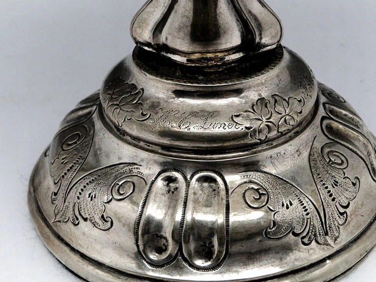 Poza datą powstania na przedmiocie znajdują się imiona i nazwiska pierwszych właścicieli.