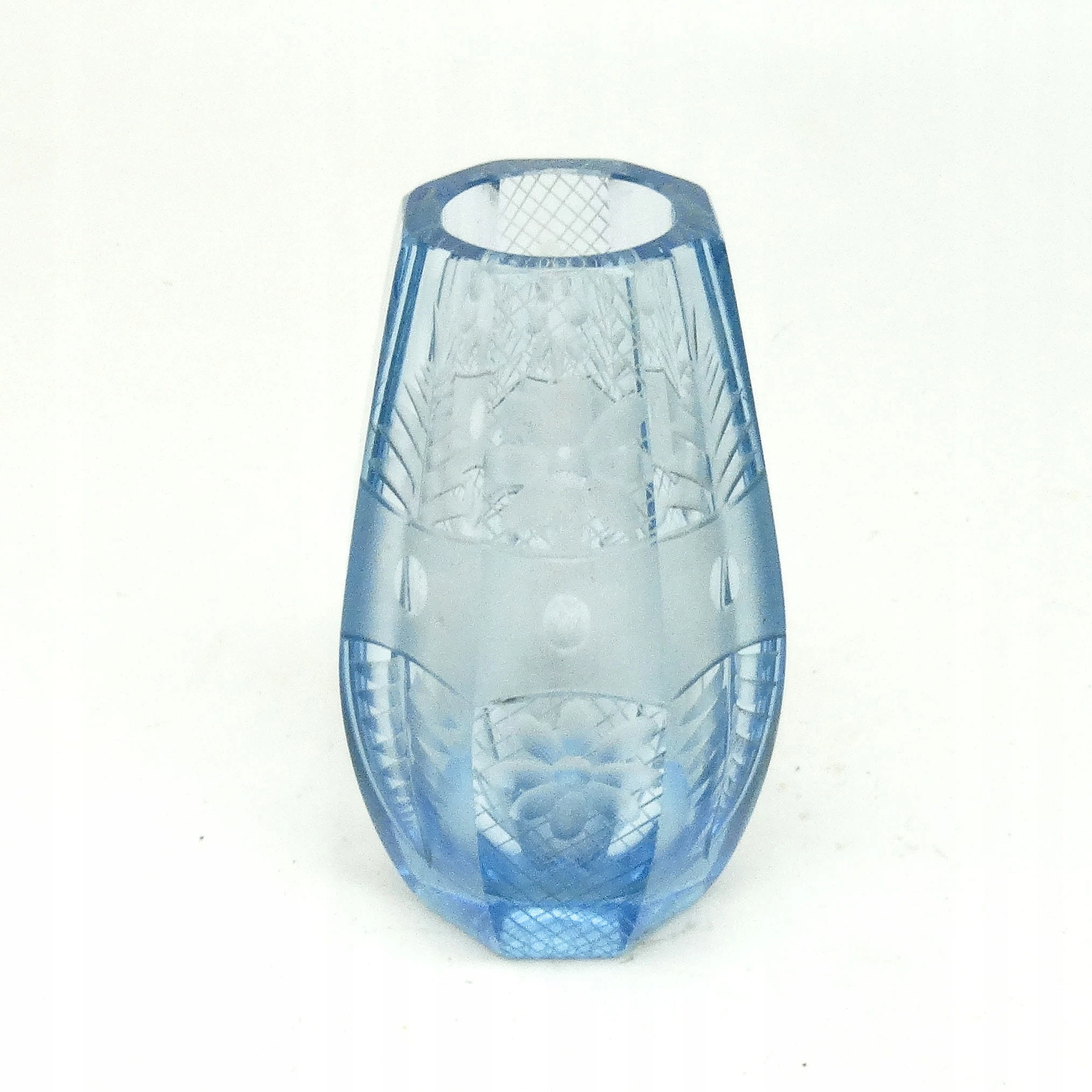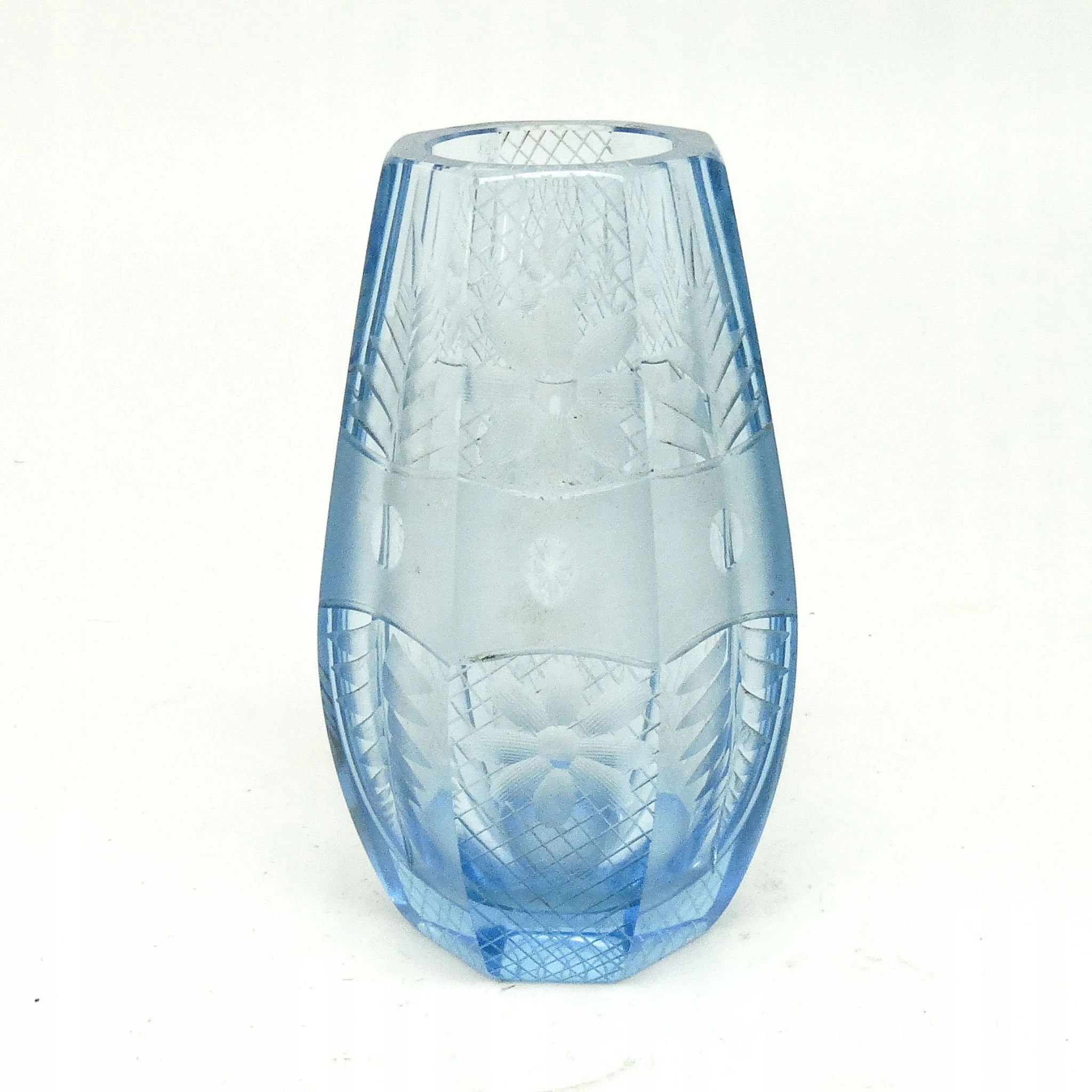 Wazon wykonany jest ze szkła barwionego w masie, fasetowanego.