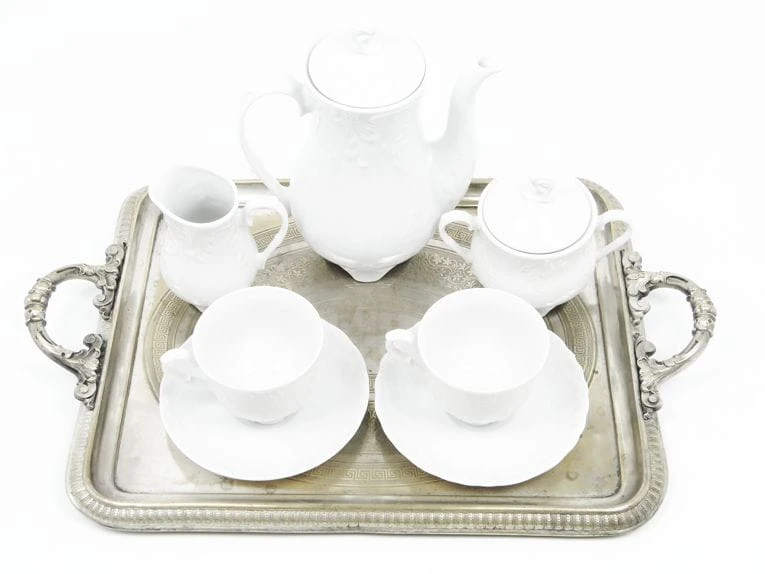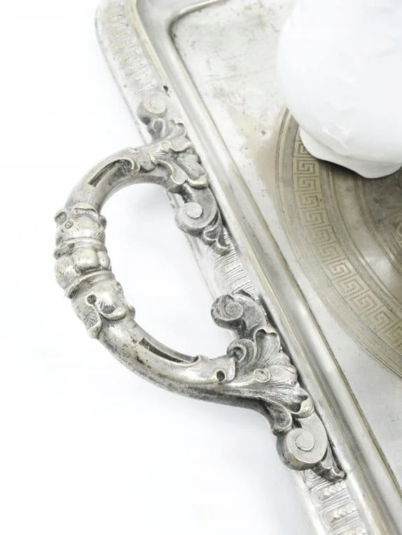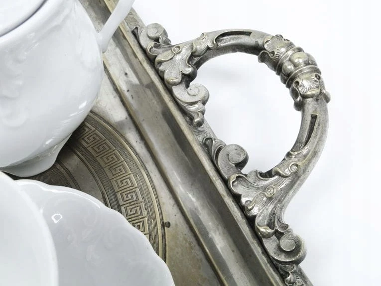 Taca pod serwis kawowy lub do herbaty warszawskiej wytwórni Braci Buch. Bardzo zdobny przedmiot.