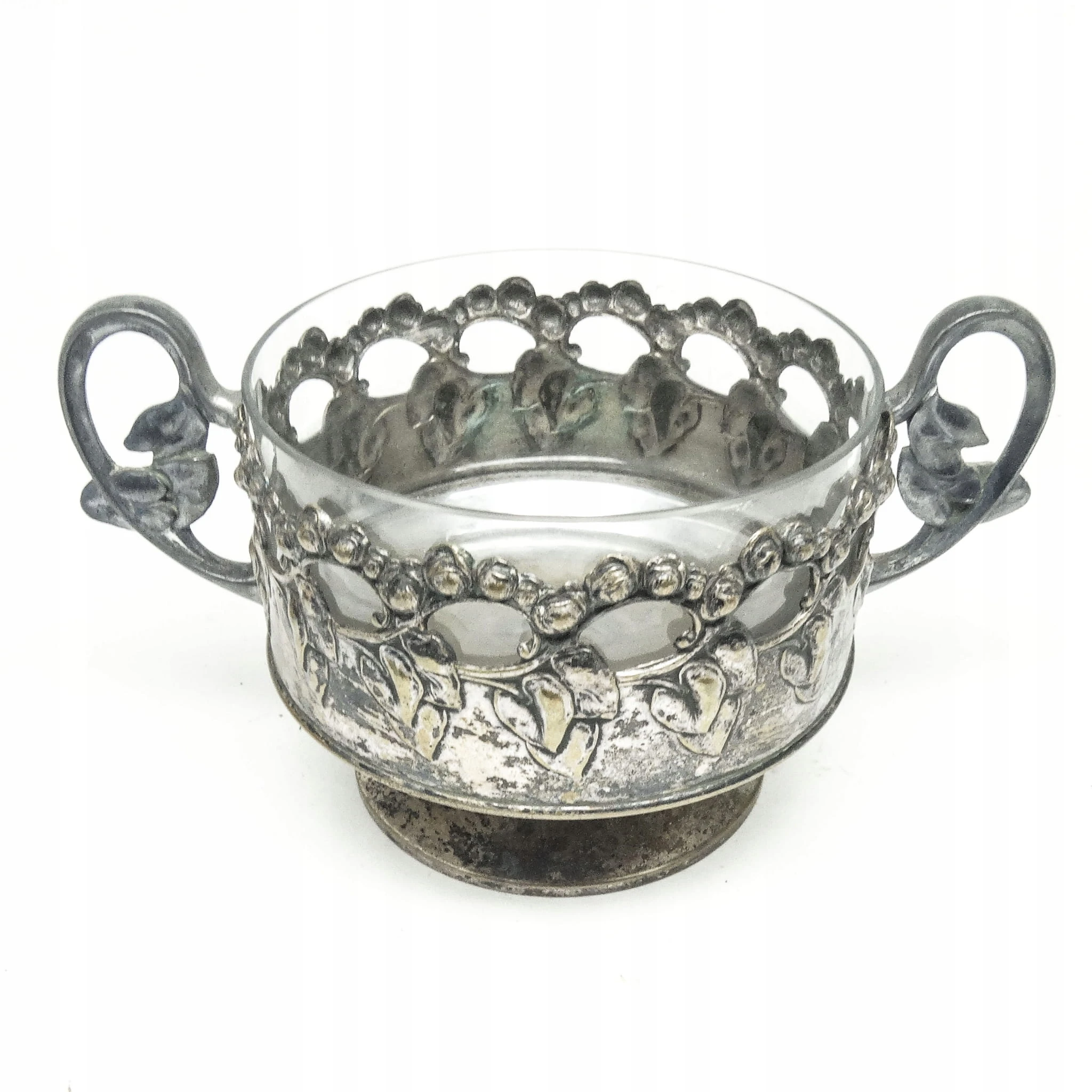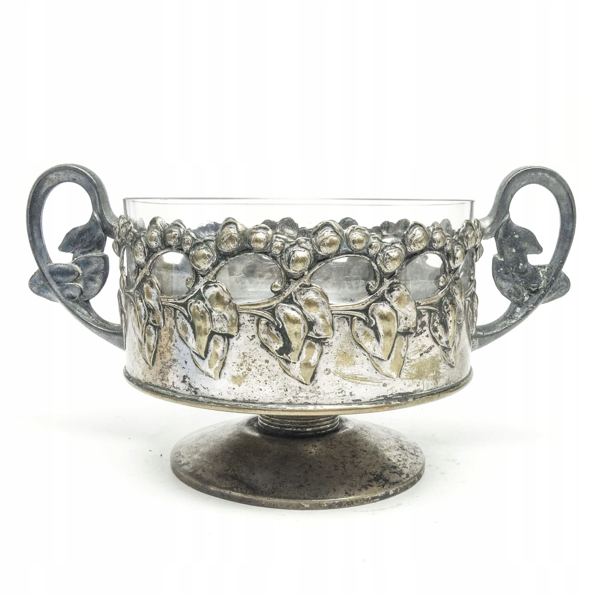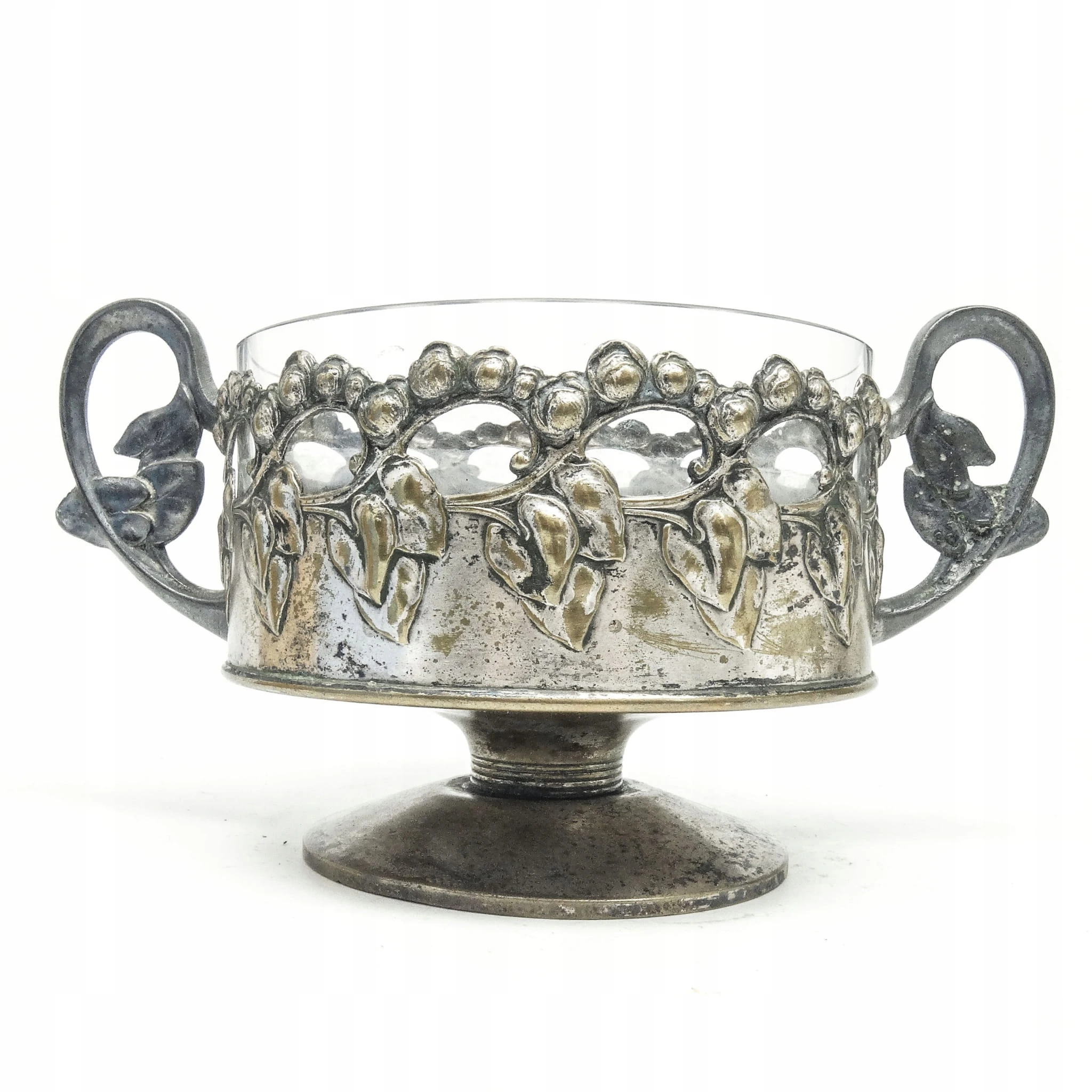 Cukiernica wykonana została z platerowanego mosiądzu w wytwórni Braci Buch w Warszawie około 1900 roku. Jej stan jest dobry. Wkład dobierany i pasuje idealnie. Wykonana w stylu secesyjnym.
