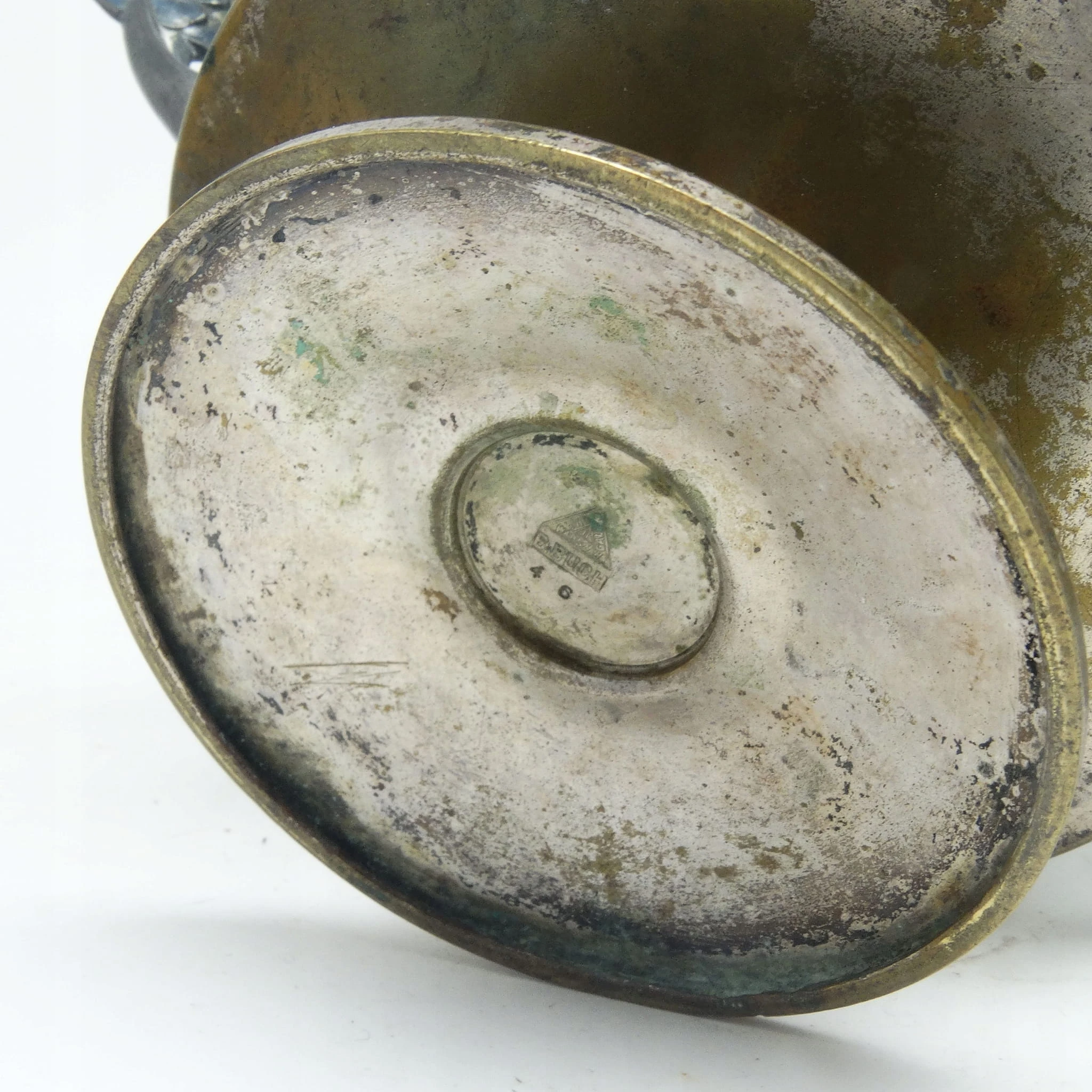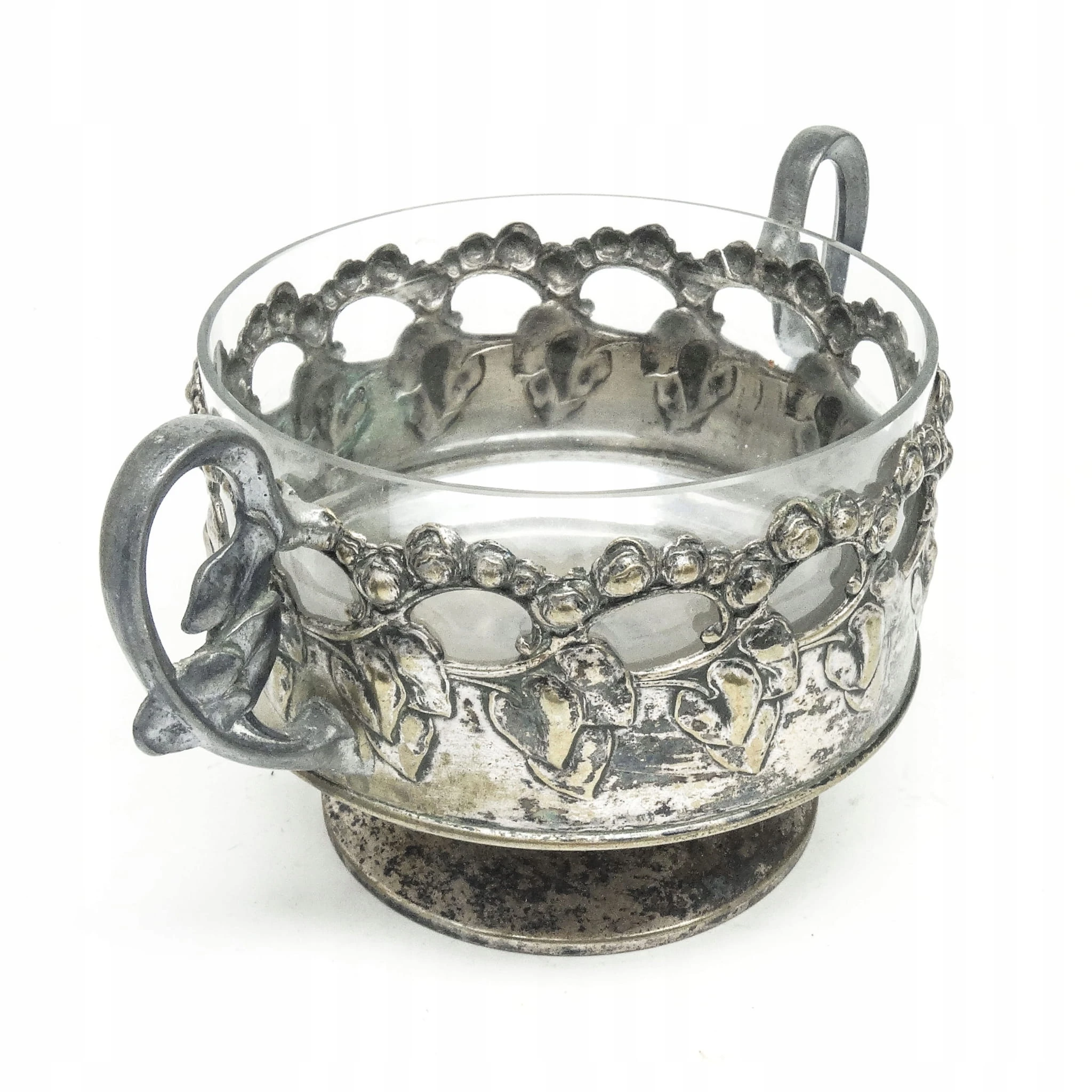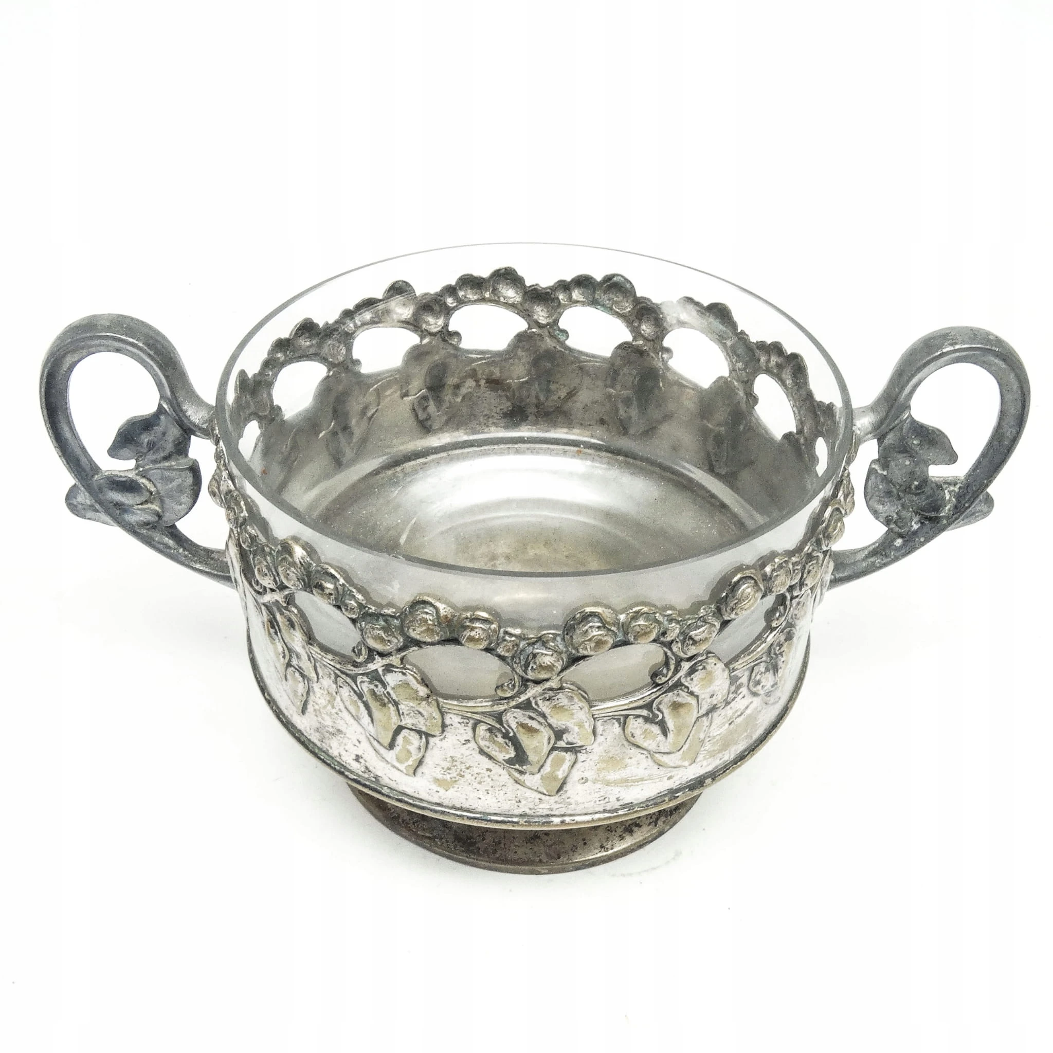 Cukiernica wykonana została z platerowanego mosiądzu w wytwórni Braci Buch w Warszawie około 1900 roku. Jej stan jest dobry. Wkład dobierany i pasuje idealnie. Wykonana w stylu secesyjnym.