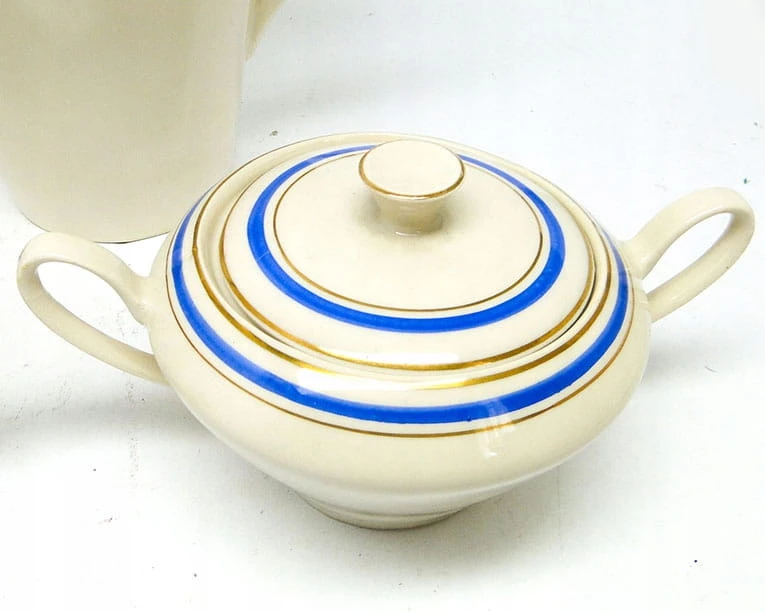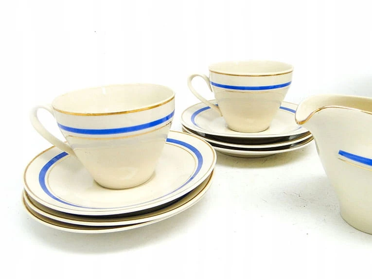 Stan przedmiotu : serwis składa się z dzbanka, mlecznika, cukiernicy, dwóch filiżanek i sześciu spodków. Dodatkowo dodaję za darmo dwie pęknięte filiżanki. Pęknięcia są pokazne na zdjęciach.