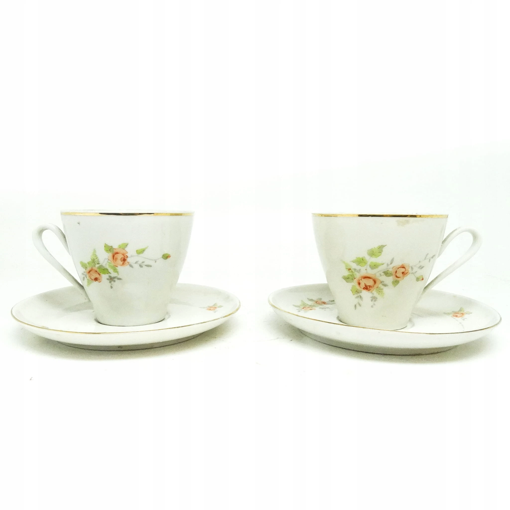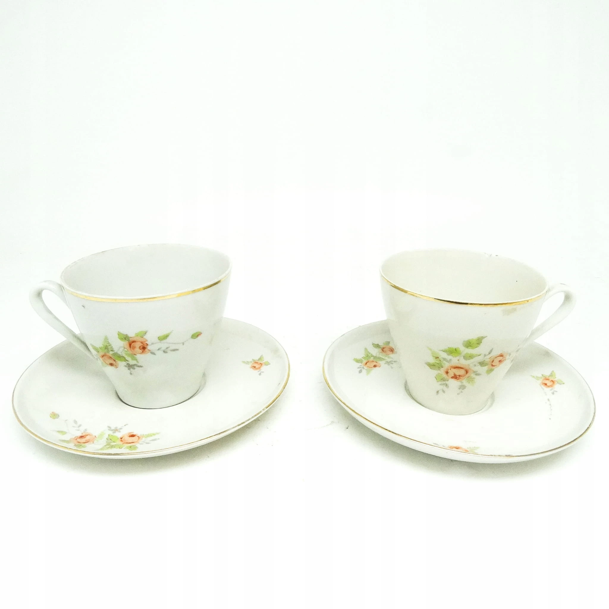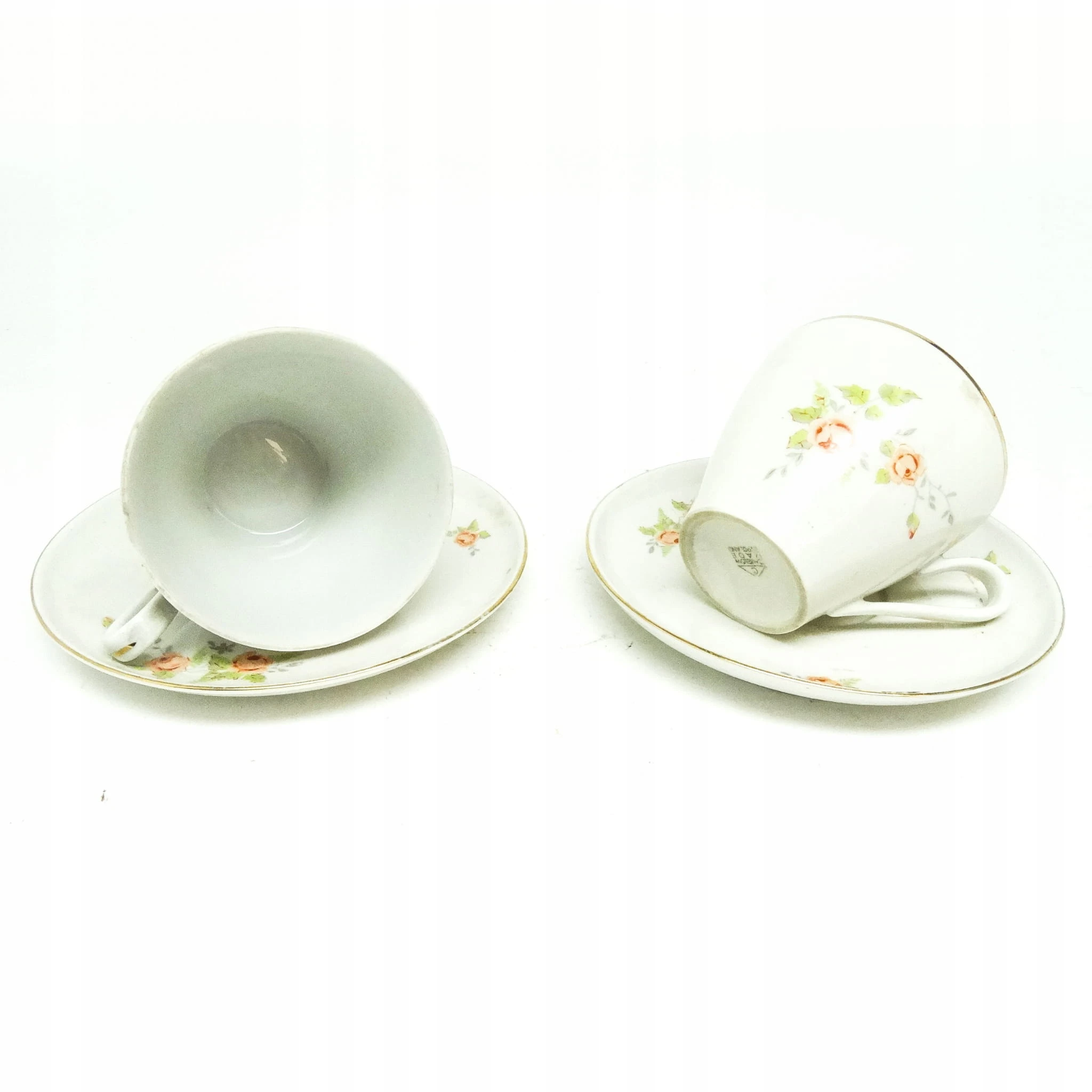 Para filiżanek ze spodkiem powstała w wytwórni Ćmielów w latach 60. Stan dobry.
