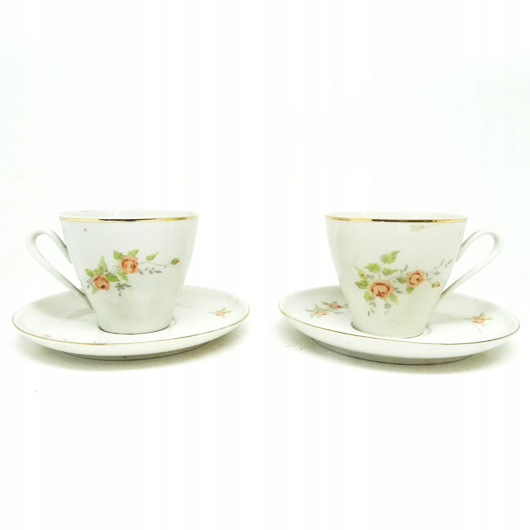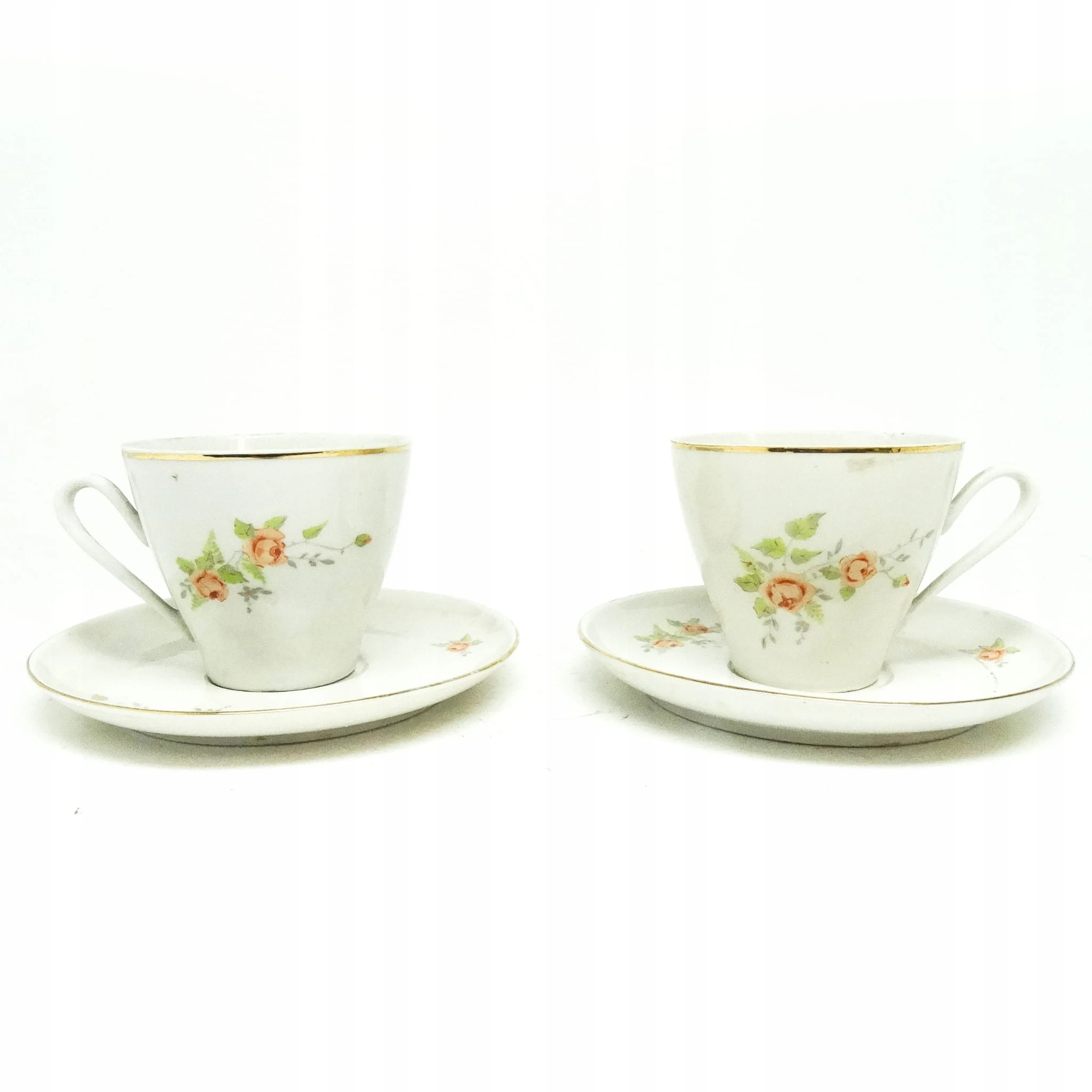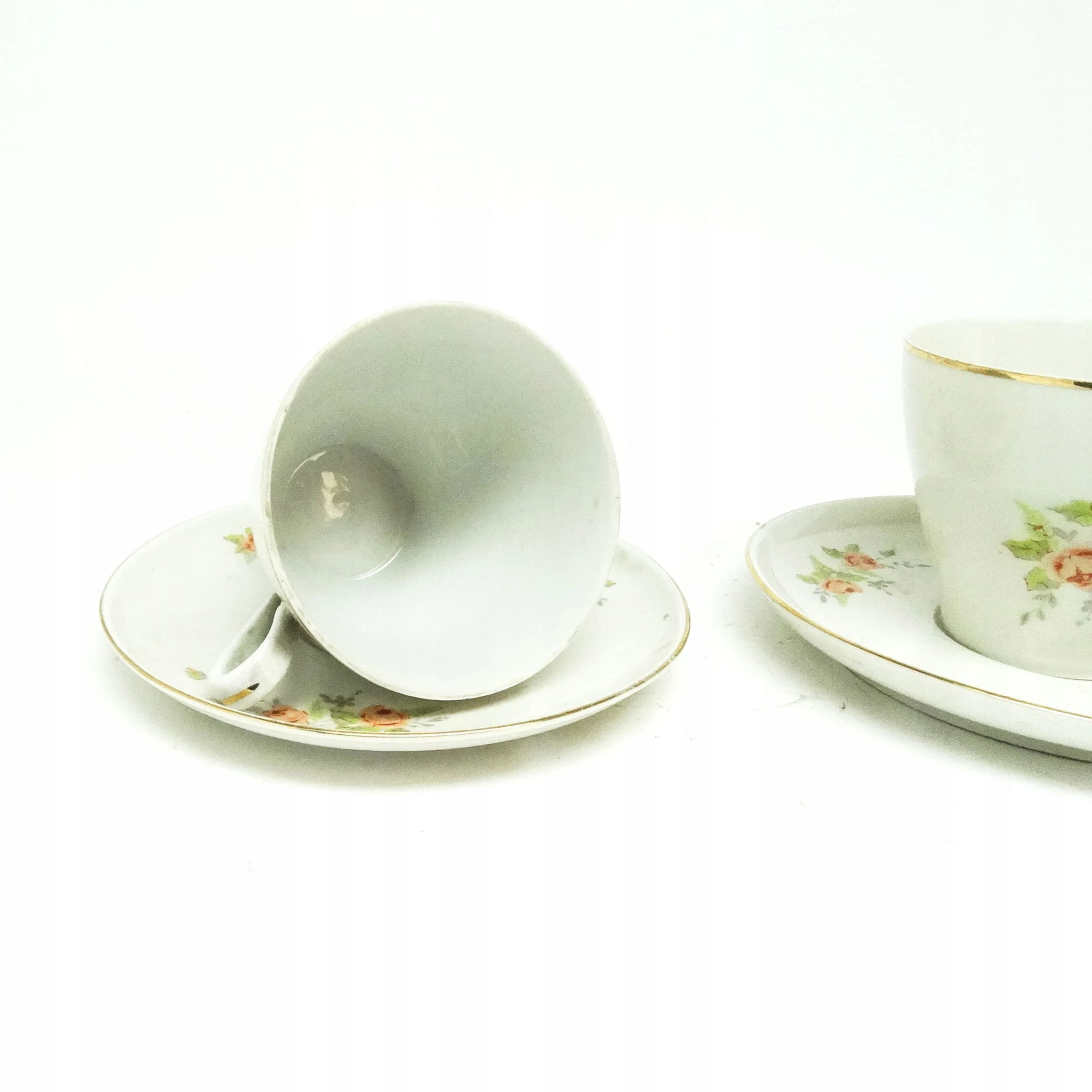 Para filiżanek ze spodkiem powstała w wytwórni Ćmielów w latach 60. Stan dobry.