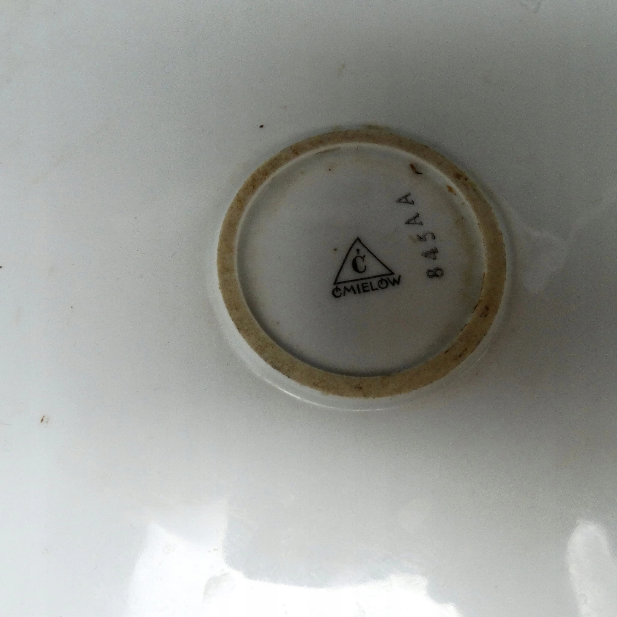 Patera pochodzi z wytwórni wyrobów porcelanowych w Ćmielowie, wykonana w latach 30. Stan bardzo dobry.