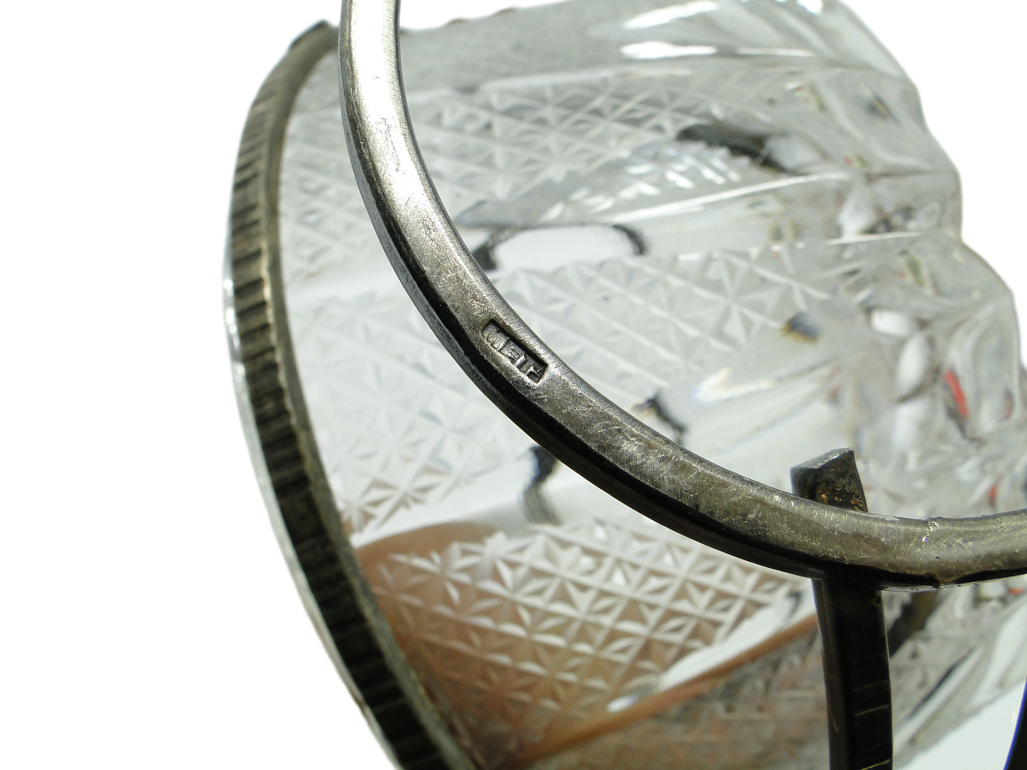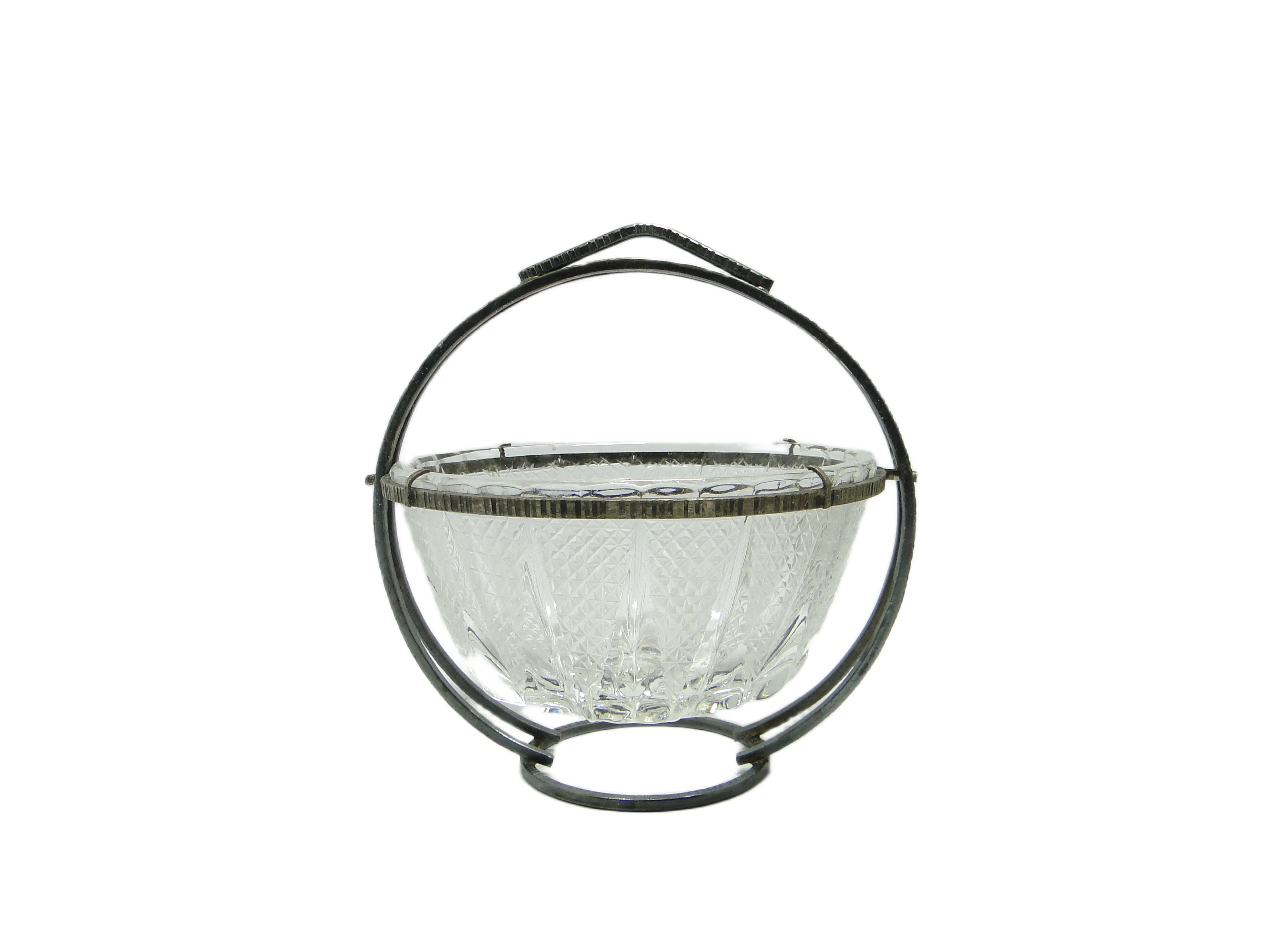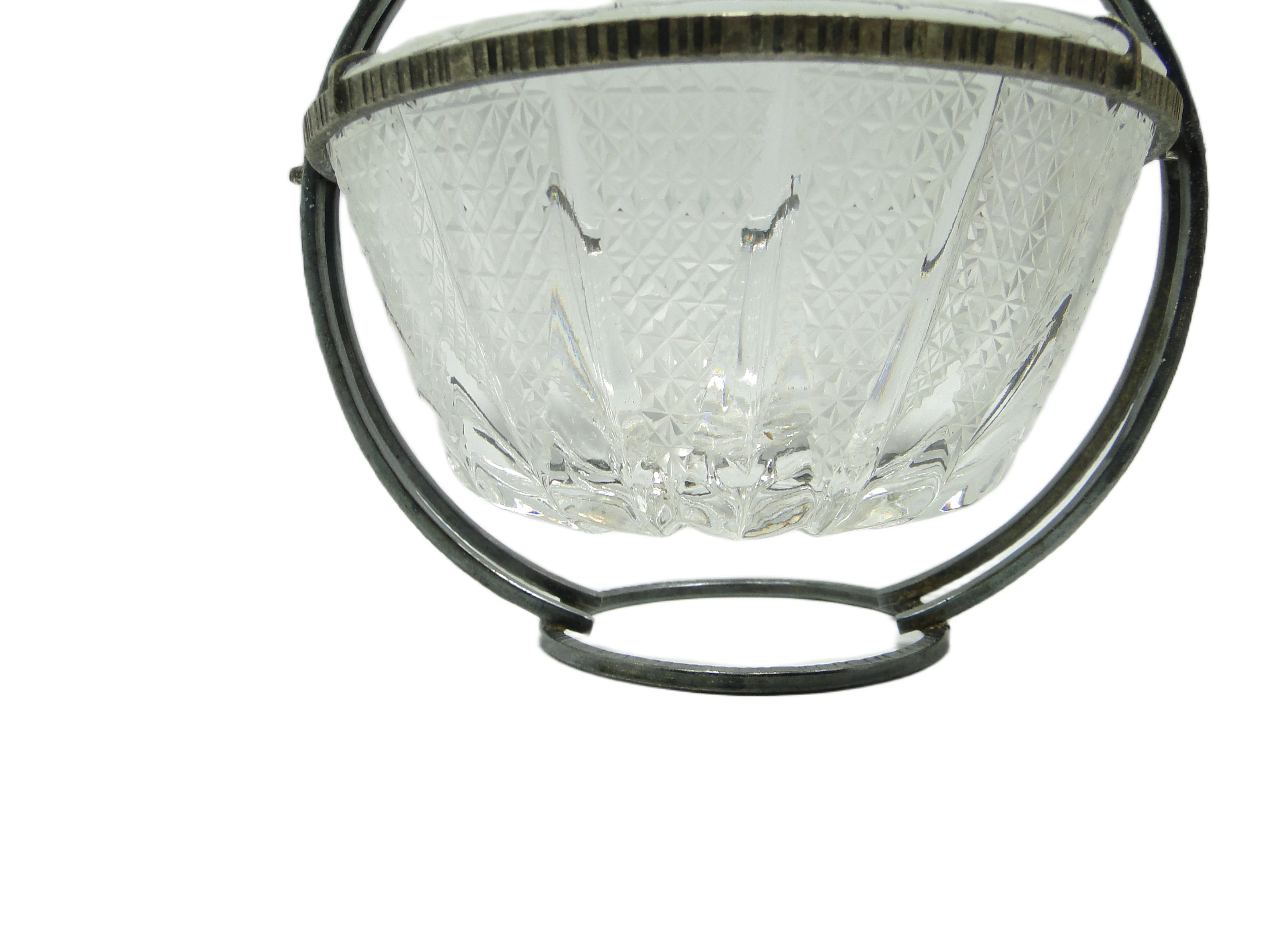Cukiernica z lat 60. reprezentuje polskie wzornictwo mid-century modern poprzez połączenie transparentnego, szlifowanego szkła z posrebrzanym mosiądzem. Korpus naczynia wykonano z grubego szkła o geometrycznym, diamentowym wzorze, który efektownie rozprasza światło i nadaje przedmiotowi trójwymiarowy charakter. Metalowa, srebrzysta oprawa otacza szkło, tworząc solidną, okrągłą podstawę oraz dużą, łukowatą rączkę z teksturowanym wykończeniem w górnej części. Proporcje są harmonijne, a całość utrzymana w chłodnym, srebrnym tonie. Drobne ślady patyny na metalu podkreślają autentyczność vintage, podczas gdy szkło pozostaje wolne od ubytków i pęknięć. Stan zachowania bardzo dobry: minimalne ślady użytkowania na metalu, szkło w nienaruszonej kondycji.Forma tej cukiernicy niesie w sobie ducha polskich lat 60. – czasów, w których pragmatyzm i oszczędność wyrazu łączyły się z subtelnym dążeniem do codziennej elegancji. Transparentne szkło wydobywa światło, przywołując obraz gościnnego stołu, na którym kawa i herbata były codziennym rytuałem. Metalowa opaska, z delikatnym połyskiem i śladami dawnych spotkań, opowiada o przedmiocie zaprojektowanym tak, by łączyć trwałość z dekoracyjnością – jakby przypominała, że nawet prosty detal może być nośnikiem atmosfery domowego ciepła.Cukiernica sprawdzi się zarówno podczas kameralnych podwieczorków, jak i jako wyrazisty akcent na nowoczesnej tacy serwującej napoje. Można ją zestawić z porcelaną z epoki, barwionym szkłem lub minimalistyczną ceramiką, by podkreślić geometryczny wzór i chłód srebrzonego metalu. Dobrze odnajdzie się w salonie utrzymanym w duchu mid-century modern, pośród fornirowanych mebli i prostych form. Jako element kolekcji vintage może stanowić subtelny punkt skupiający wzrok na półce lub w przeszklonej witrynie, a także pełnić funkcję naczynia do serwowania drobnych słodkości podczas spotkań w niewielkim gronie.