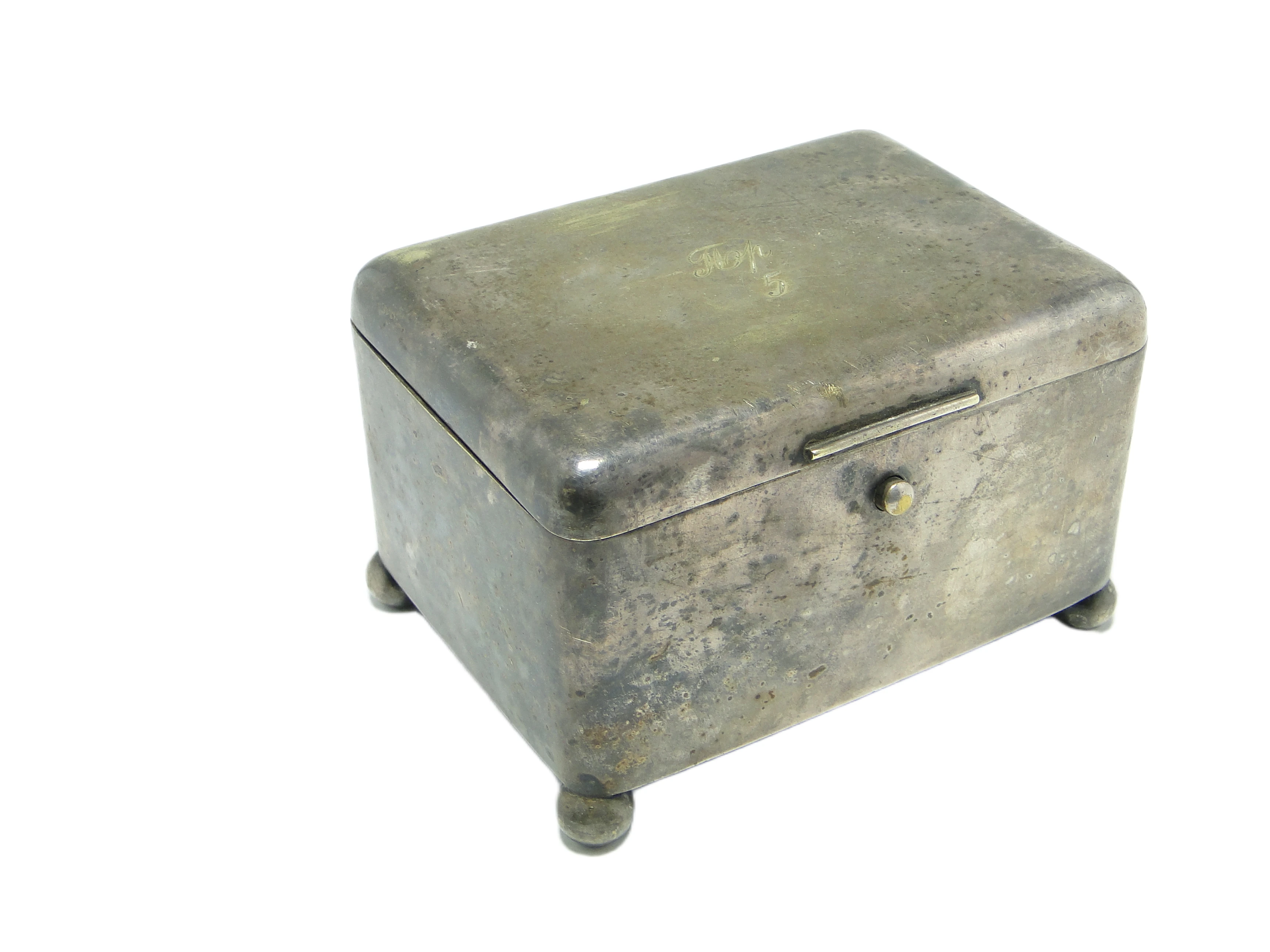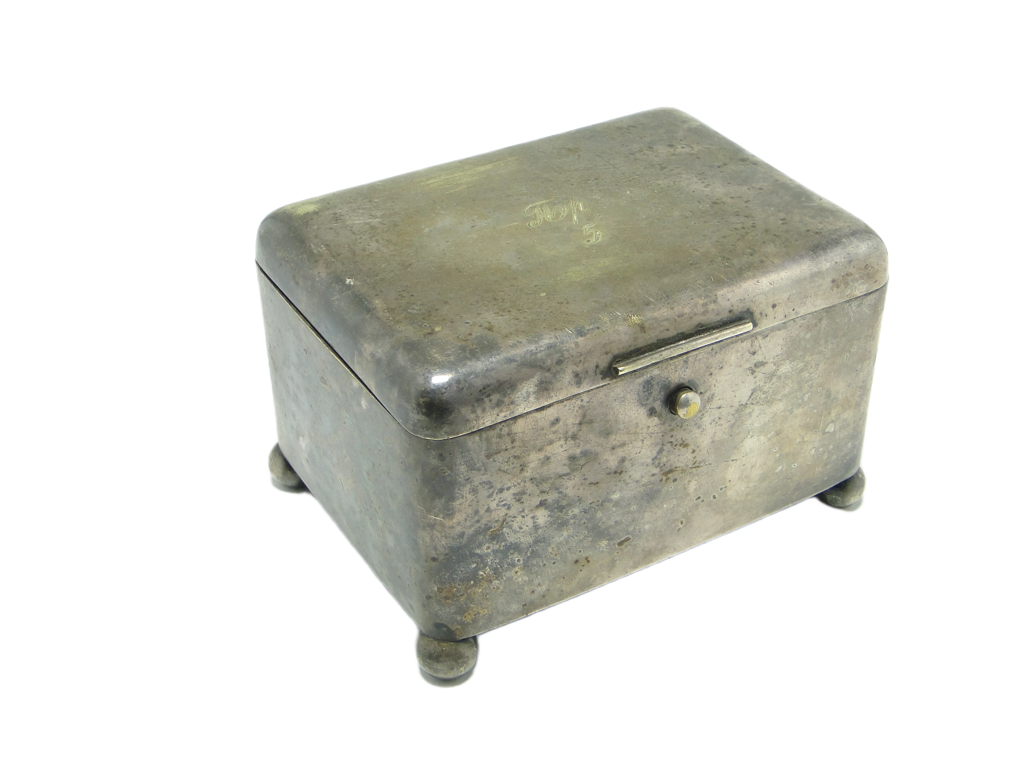 Cukiernica Art déco z lat 20. XX wieku została wykonana ze srebrzonego mosiądzu w warszawskiej wytwórni Norblin, będąc przykładem wczesnego polskiego rzemiosła tego okresu. Prostokątna bryła o subtelnie zaokrąglonych narożnikach i płaskiej pokrywce podkreśla geometryczną dyscyplinę stylu. Pokrywka zwieńczona jest niewielkim, kulistym uchwytem oraz prostą listwą, oba elementy utrzymane w matowym srebrze, z miejscami widocznym cieplejszym odcieniem mosiądzu. Cukiernica opiera się na czterech drobnych, kulistych nóżkach, które nadają jej lekkości i stabilności. Satynowo-matowa powierzchnia utrzymana jest w chłodnym srebrze, z wyraźną patyną i naturalnymi śladami oksydacji, miejscami odsłaniając cieplejsze barwy metalu. Widoczne są drobne rysy i przebarwienia, typowe dla antyków, lecz bez pęknięć czy większych wgnieceń. Całość zachowana jest w bardzo dobrym stanie, bez oznak współczesnej renowacji, z autentyczną patyną i śladami użytkowania.Forma tej cukiernicy przywołuje głos lat 20., gdy Art déco wkraczało do codziennych przedmiotów, przynosząc ze sobą nową logikę porządku i umiaru. Geometryczna linia i chłód srebrzonej powierzchni mówią o epoce, która poszukiwała harmonii pomiędzy funkcją a elegancją, czyniąc z prostoty cnotę. Patyna i przebłyski mosiądzu są niczym dyskretne ślady dawnych spotkań przy stole – każda rysa to milczący zapis chwil i domowych rytuałów, które z biegiem lat nabrały szlachetności.Cukiernicę można wyeksponować na klasycznej tacy z epoki, w towarzystwie porcelany o geometrycznych wzorach lub barwnego szkła. Dobrze sprawdzi się na bufecie, regale z antykami lub w eklektycznej aranżacji salonu, gdzie jej prosta forma podkreśli kunszt innych detali. W stylizacjach Art déco warto połączyć ją z niklowanymi dodatkami lub lustrami w prostych ramach; w nowoczesnych przestrzeniach może stanowić subtelny kontrapunkt dla jasnych, minimalistycznych powierzchni.