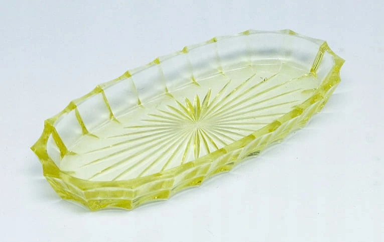Cytrynowa taca w stylu Art Deco wykonana ze szkła lanego .