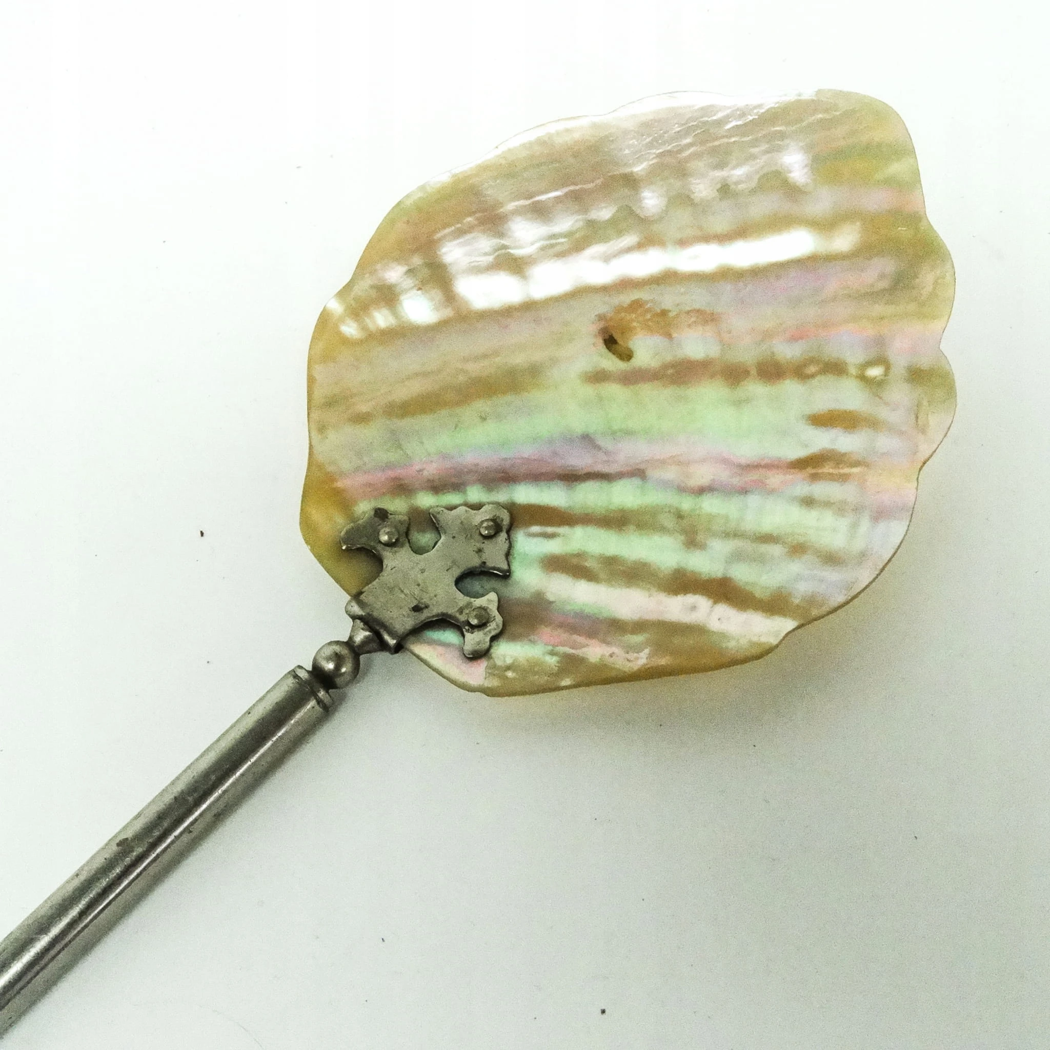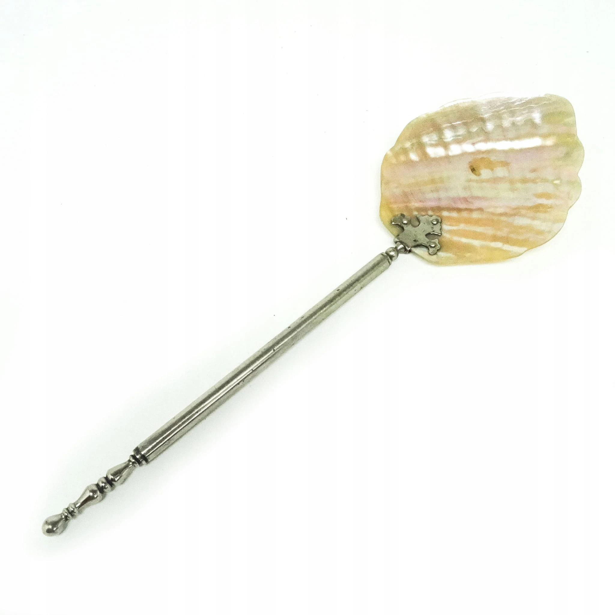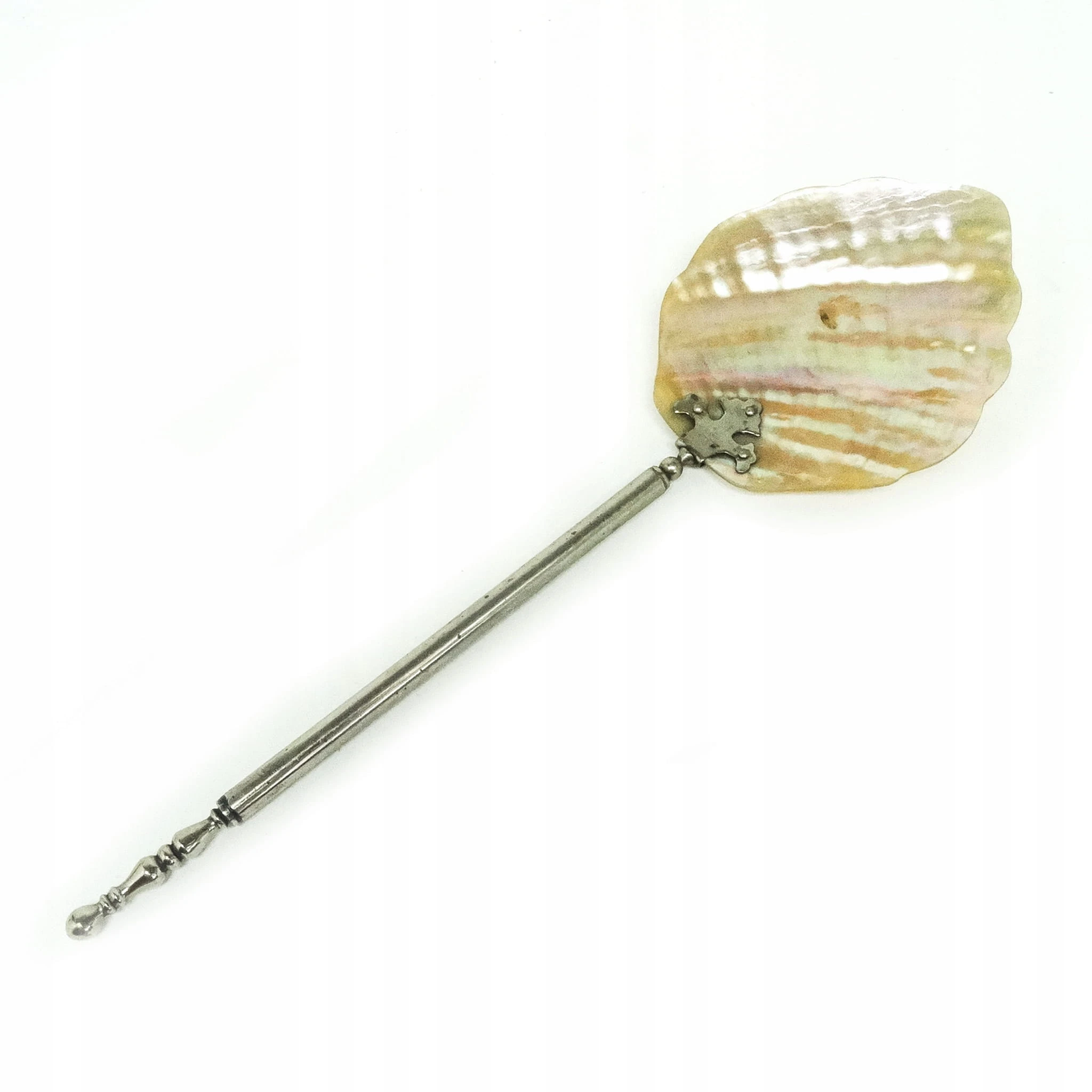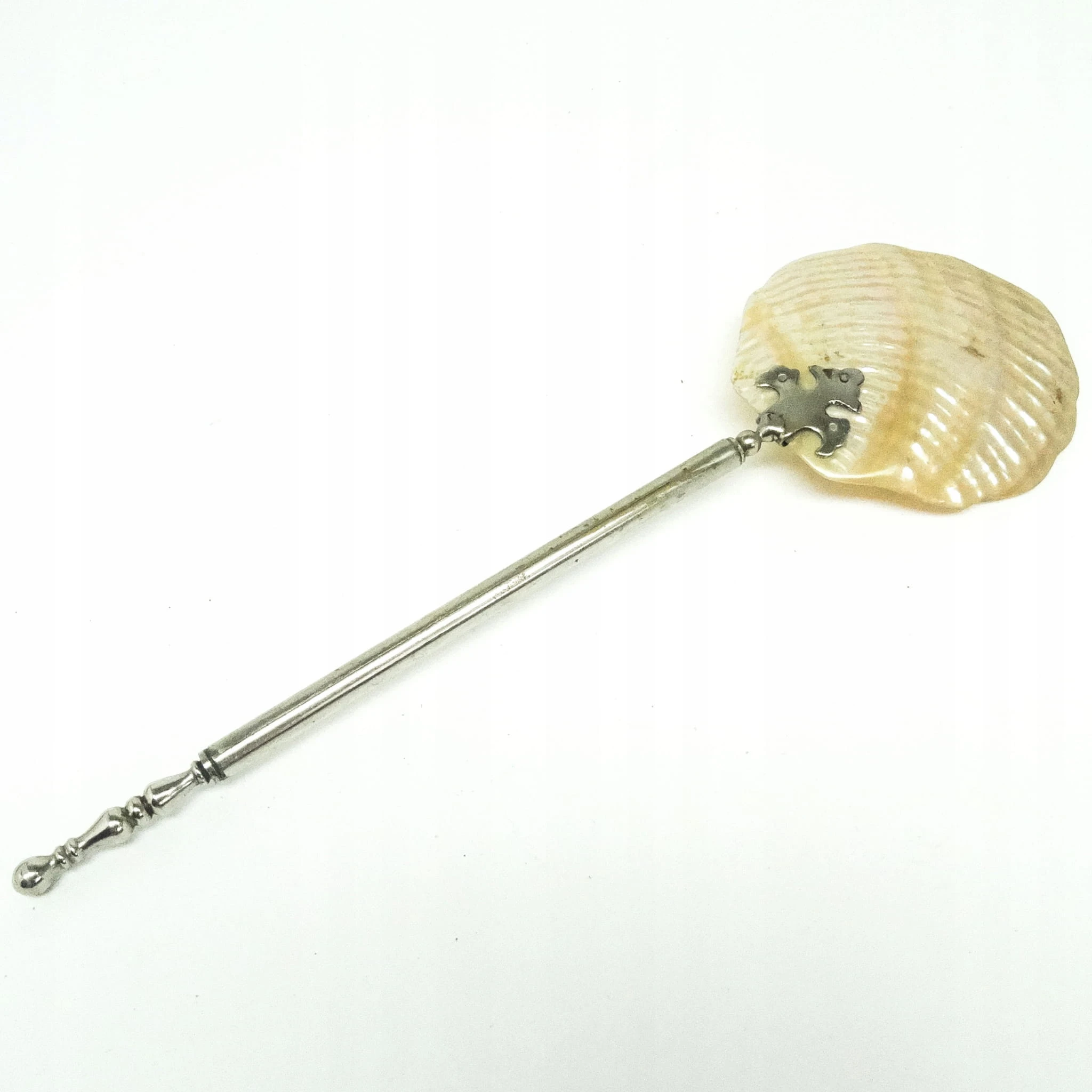Czerpak do kawioru wykonany z muszli oraz mosiądzu platerowanego wykonany został na początku XX wieku w Niemczech. Stan bardzo dobry.
