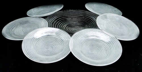 Cały zestaw 6 talerzy oraz wielki talerz środka stołu zaprojektowany przez Jana Sylwestra Drosta.