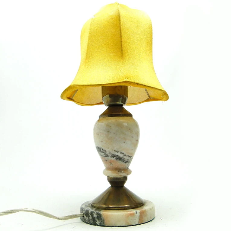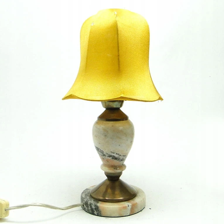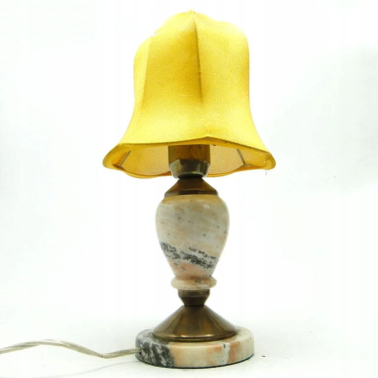 Lampka nocna pochodzi z Polski z lat 70. Posiada abażur, który nosi ślady użytkowania.