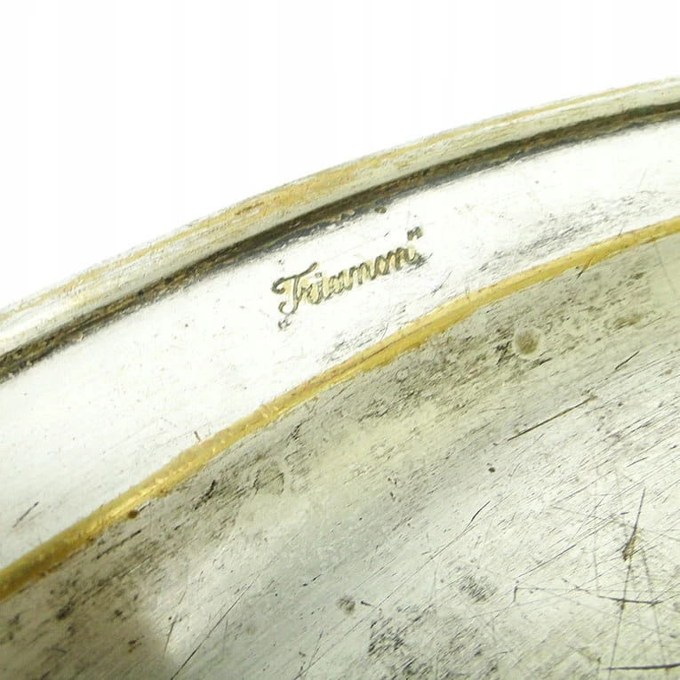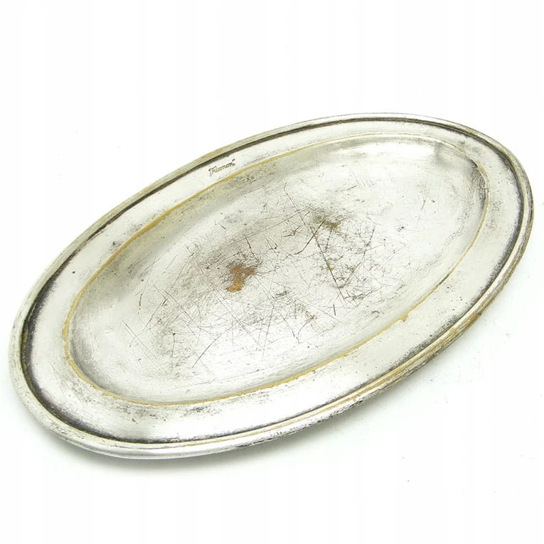 Półmisek wyprodukowany na terenie Polski przez wytwórnię Ferdynanda Wolskiego w latach 30. Zachowany jest w bardzo dobrym stanie.