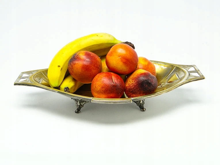 Patera na owoce. Wyprodukowana została w warszawskiej wytworni Fabryka Wolska.