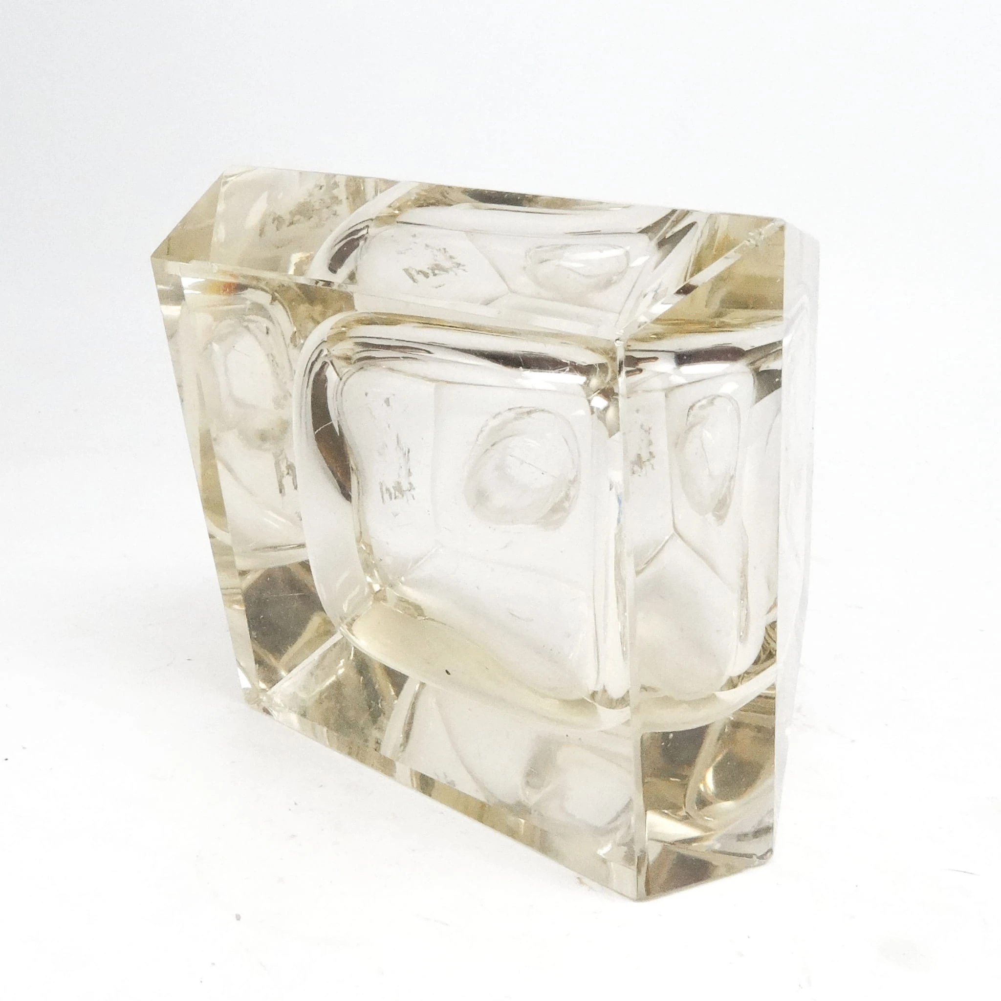 Kałamarz wyprodukowany został w Niemczech w latach 30. Wykonany jest w stylu art deco, powierzchnia jest z fasetowanego szkła przezroczystego i mosiądzu. Zachowany jest w dobrym stanie, dwa drobne odpryski.