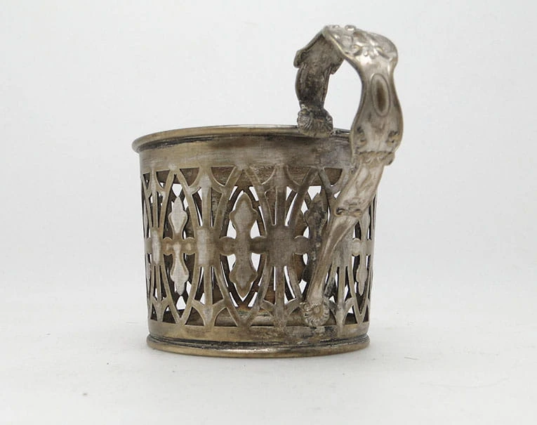 Podstakannik. Pochodzi z okresu 1860-1893.