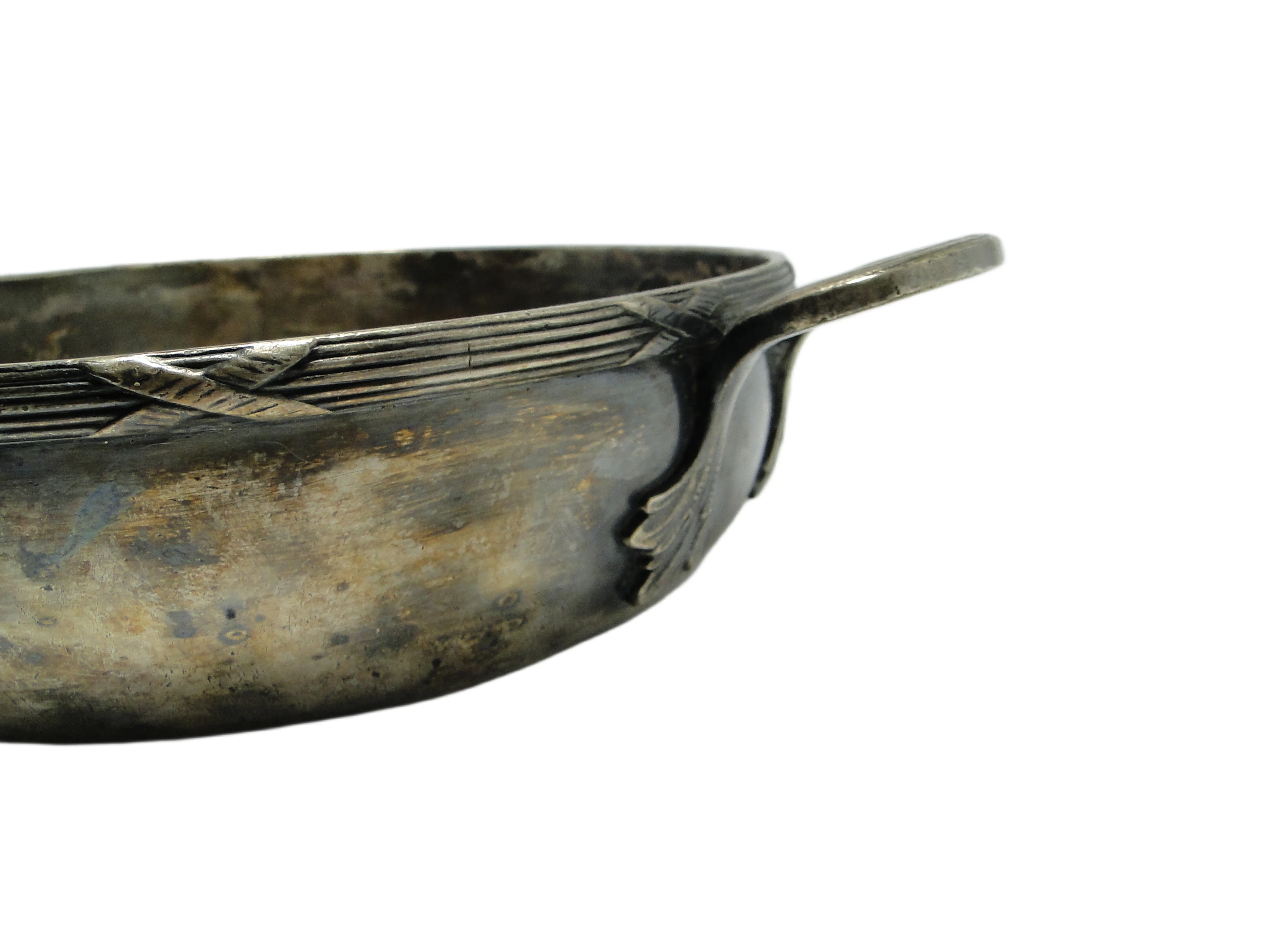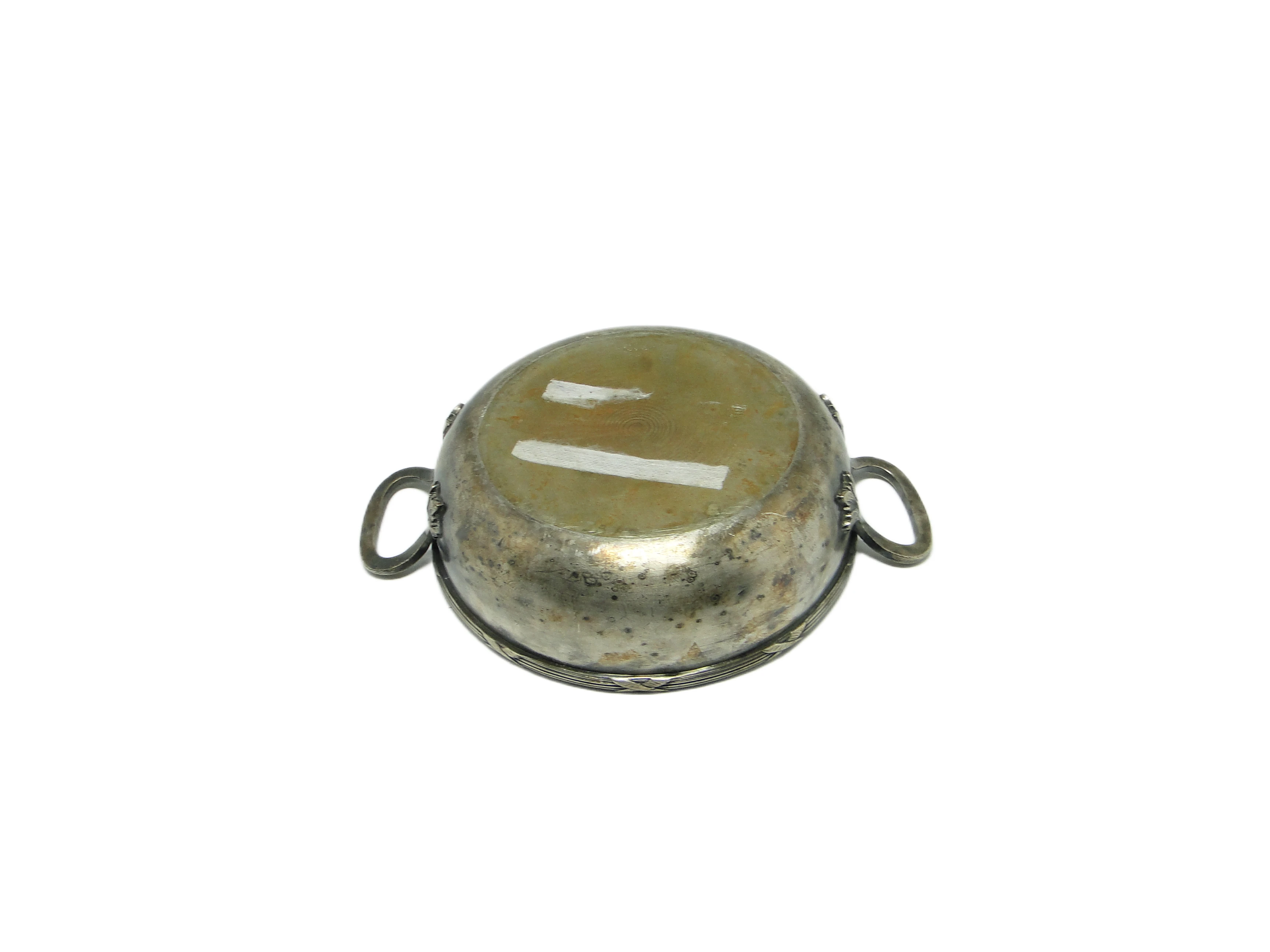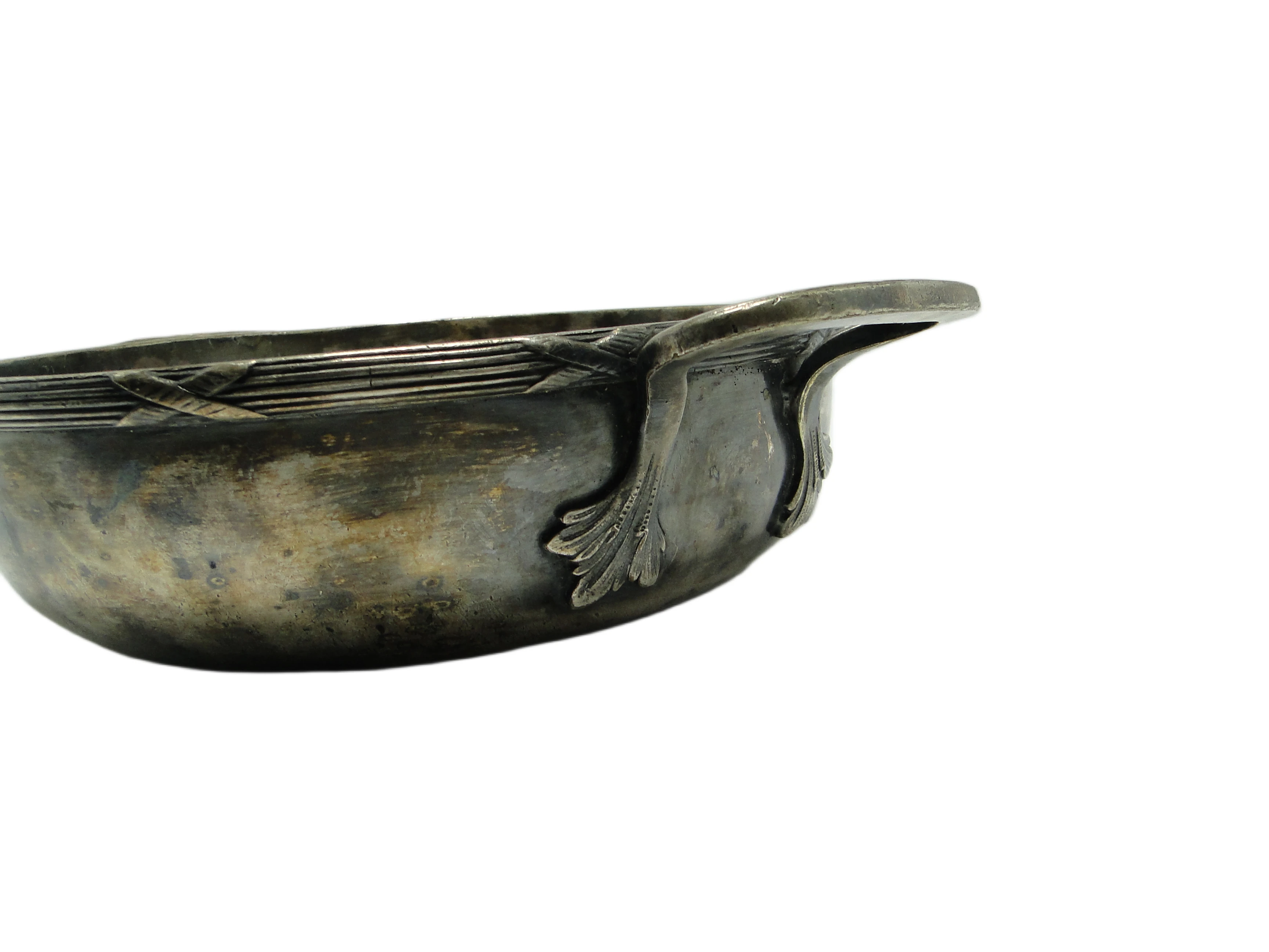 Eklektyczny garnek z początku XX wieku, wykonany ręcznie z mosiądzu na terenie Austrii, prezentuje niską, szeroką sylwetkę z subtelnie opadającymi ściankami. Dwa zaokrąglone uchwyty płynnie wtapiają się w korpus, a górną krawędź zdobi geometryczna bordiura z powtarzającym się motywem krzyżujących się linii i kształtów X, charakterystycznym dla stylistyki przełomu wieków. Matowa, przygaszona powierzchnia mosiądzu nosi nieregularną patynę – widoczne są ciemniejsze przebarwienia przy podstawie i uchwytach, jaśniejsze fragmenty tam, gdzie materiał przetarł się lub wypolerował przez lata użytkowania. Wyraźne ślady narzędzi, drobne wgniecenia i rysy podkreślają rzemieślniczy charakter naczynia. Konstrukcja została wykonana z jednego kawałka metalu, bez widocznych łączeń, a uchwyty mają lekko surową fakturę. Garnek zachowany jest w bardzo dobrym stanie, z autentycznym zużyciem typowym dla wieku – widoczne są drobne wgniecenia i naturalna patyna, lecz brak istotnych uszkodzeń czy napraw.W przedmiocie tym zaklęta jest historia codzienności przełomu XIX i XX wieku – czasów, gdy rzemieślnik nadał każdemu egzemplarzowi indywidualny rytm uderzeń młotka. Matowy połysk mosiądzu i geometryczna bordiura przywołują atmosferę domów monarchii austro-węgierskiej oraz inspiracje czerpane zarówno z salonów, jak i ludowego folkloru. Patyna, niejednolita i wielotonowa, zdaje się opowiadać o powolnym dialogu czasu z materią, o dawnych kuchniach i codziennych rytuałach, które ten garnek wciąż „pamięta”.Wnętrze zyska kolekcjonerski, historyczny akcent, jeśli garnek pojawi się wśród innych metalowych lub ceramicznych naczyń na otwartych półkach. Można zestawić go z drewnem o ciepłym odcieniu i miękkimi tkaninami, by podkreślić kontrast materiałów. Dobrze sprawdzi się też jako dekoracyjny element na konsoli w salonie, zwłaszcza w aranżacjach eklektycznych, gdzie spotykają się antyki, dywany o geometrycznych wzorach oraz współczesne grafiki.Brak dodatkowych danych technicznych oraz wskazówek dotyczących pielęgnacji.