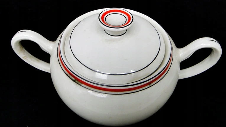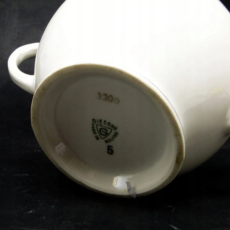 Cukiernica wyprodukowana została w Polsce przez wytwórnię Giesche w latach 30. Przedmiot wykonany jest z porcelany. Zachowany jest w bardzo dobrym stanie. Sygnowany.
