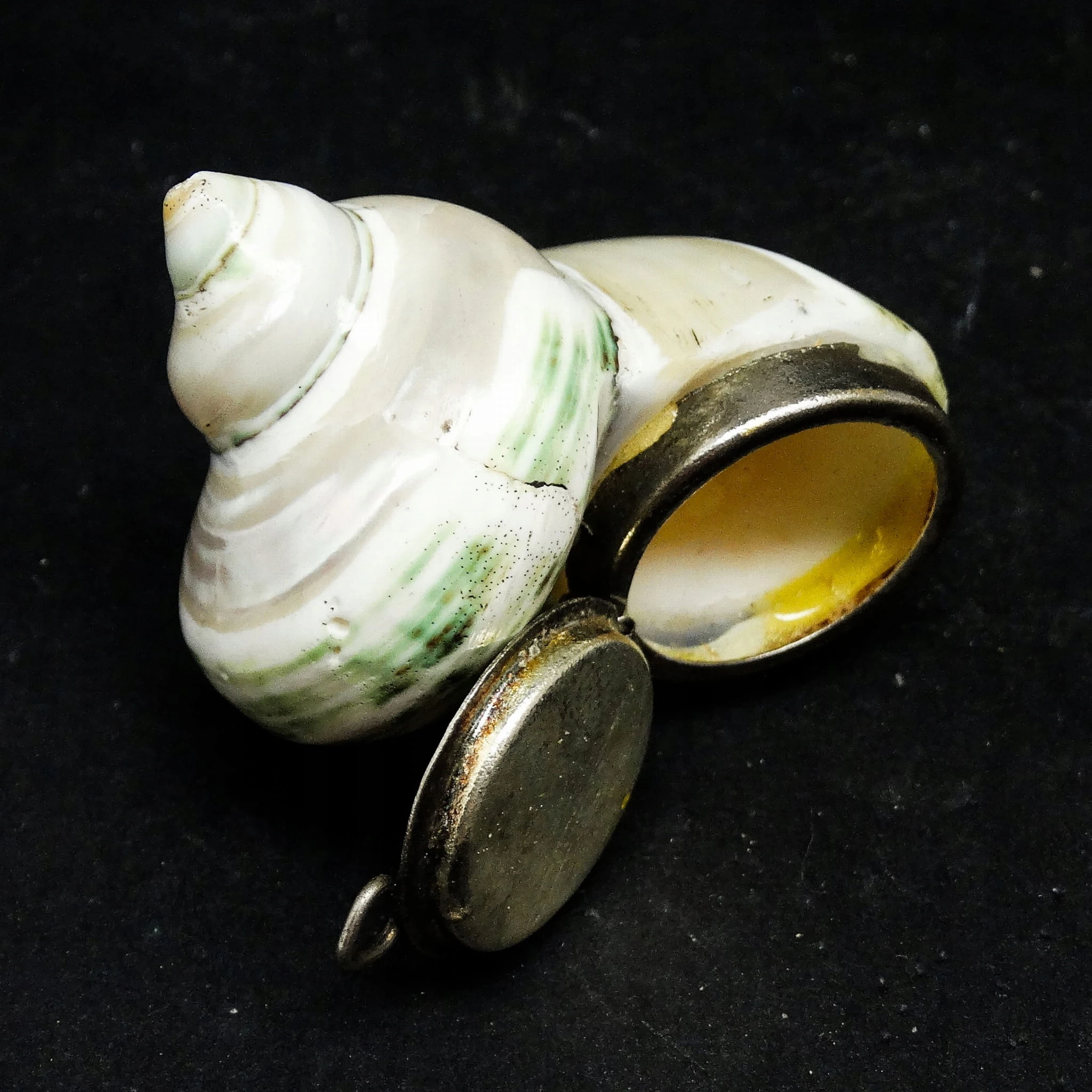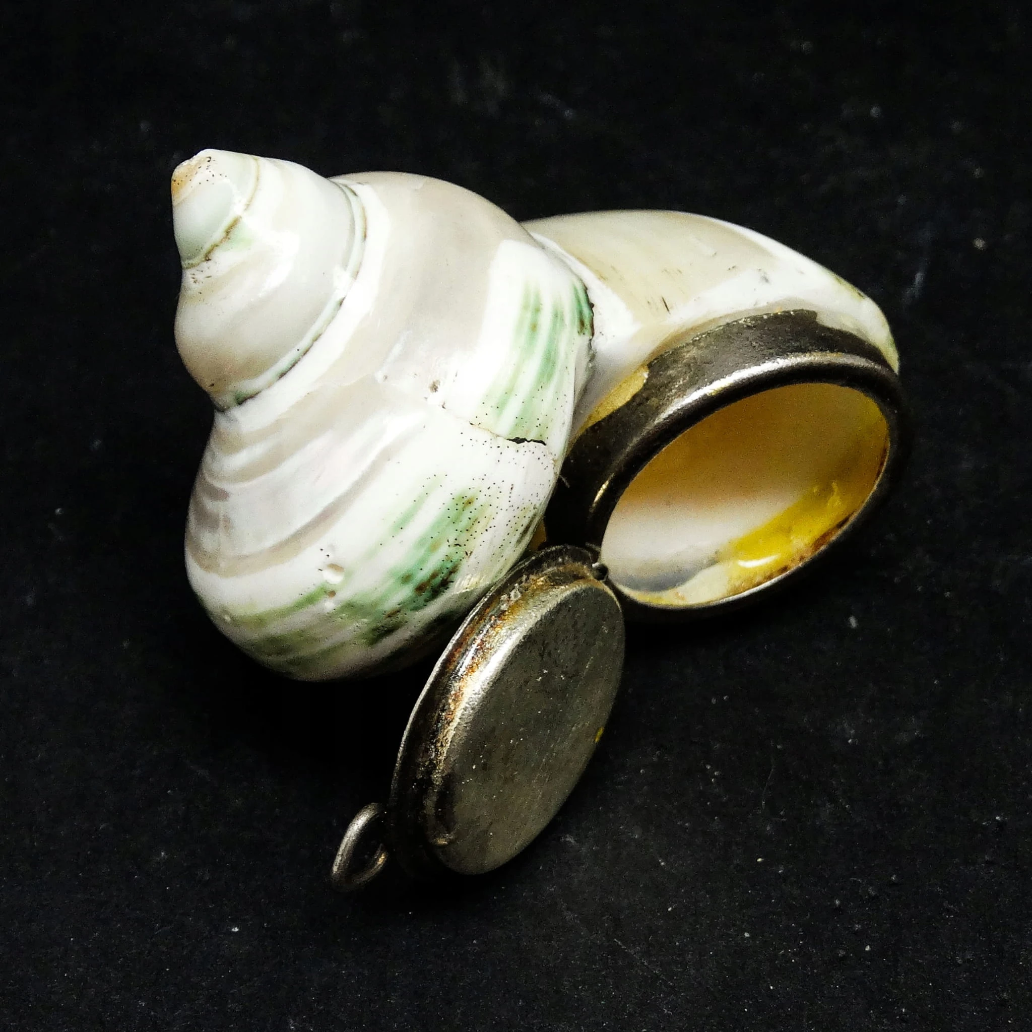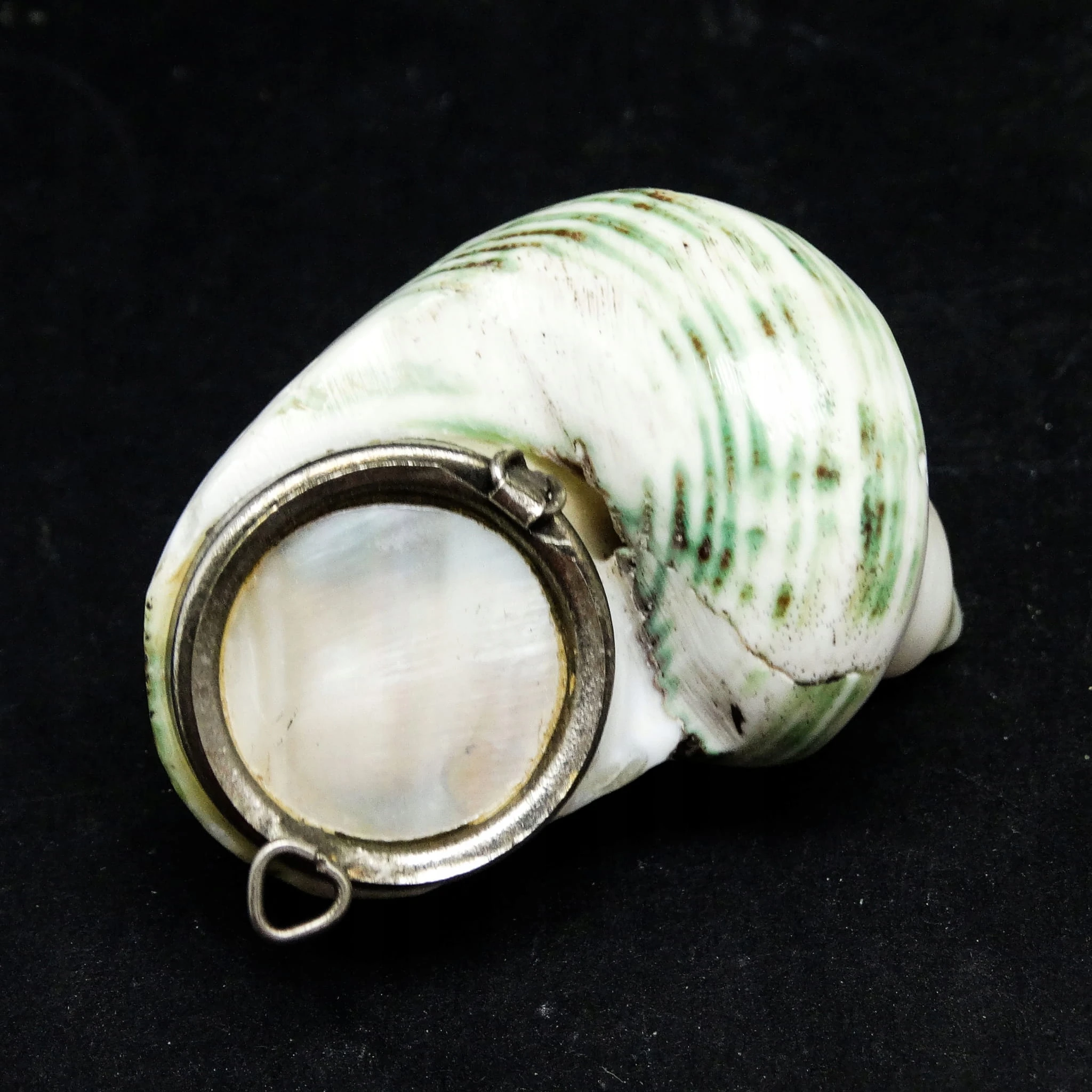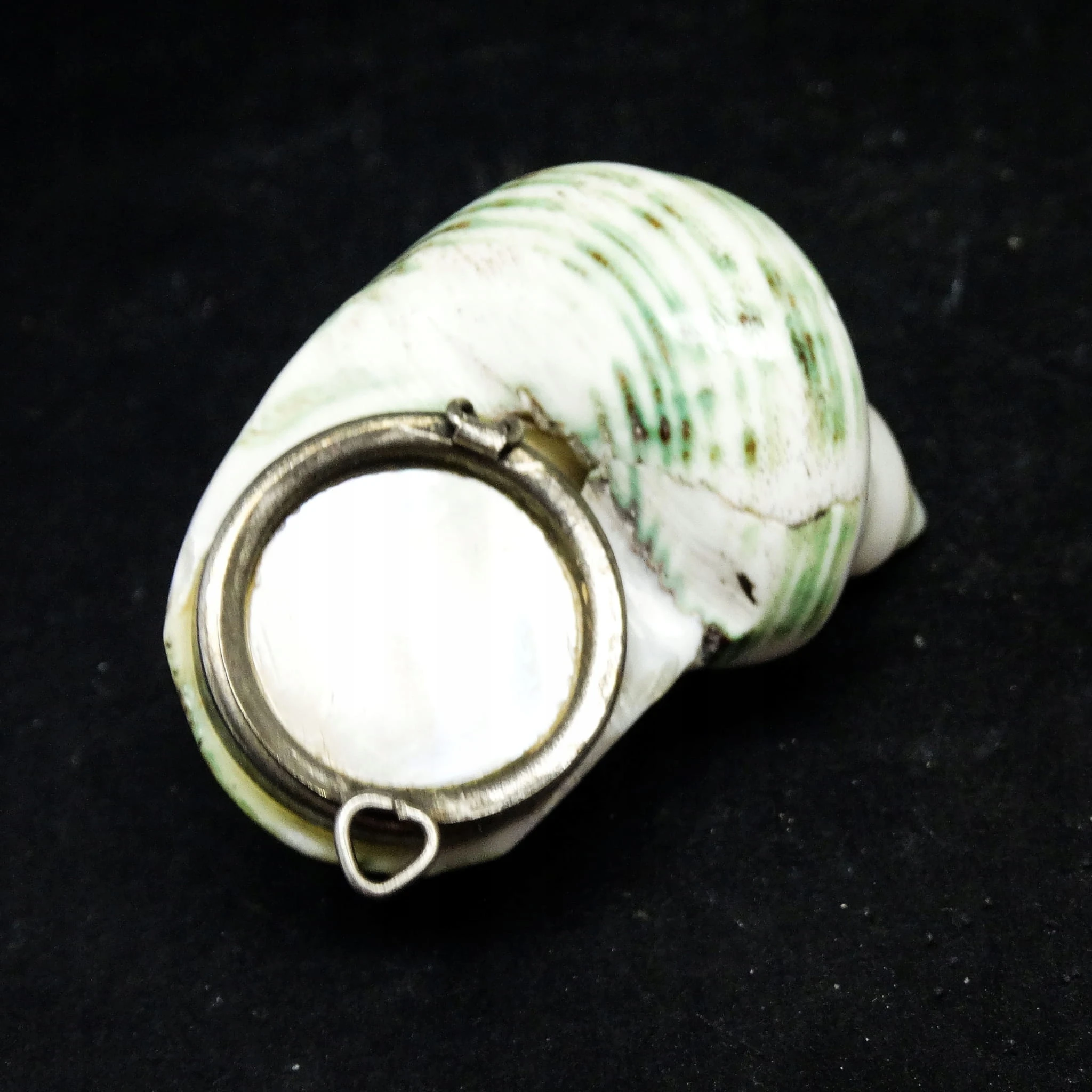 Pojemnik wyprodukowany został w Grecji w latach 50. Wykonany jest ze muszli i przeznaczony do przechowywania tabaki jak i różnych innych ziół i ziółek. Zachowany jest w dobrym stanie.