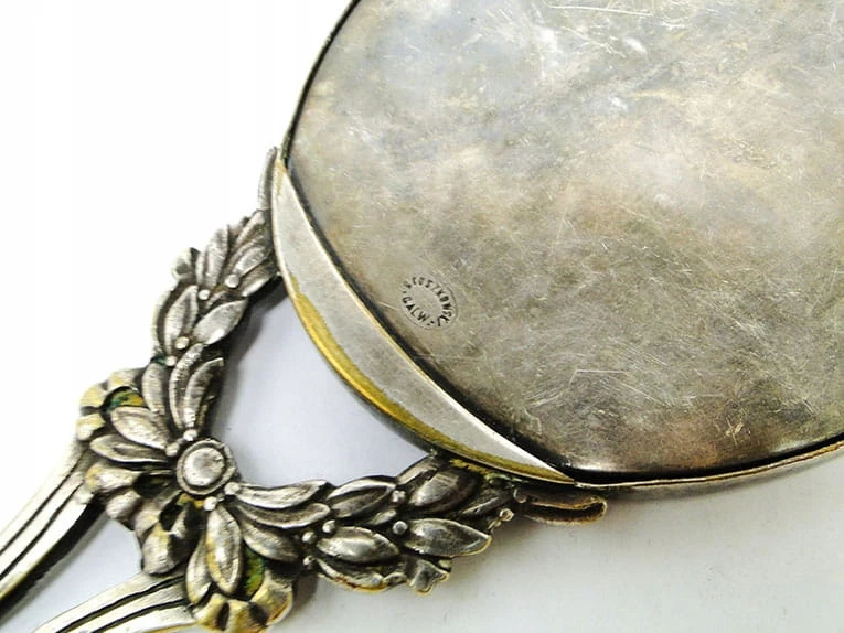 Lustro wyprodukowane pomiędzy 1880-1900 w Warszawie przez wytwórnię Groszkowski. Wykonane zostało z mosiądzu platerowanego. Zachowane jest w bardzo dobrym stanie, nie było do tej pory posrebrzane wtórnie, ani poddawane żadnym naprawom. Jest w stanie niezmienionym od momentu produkcji. Nosi ślady użytkowania.