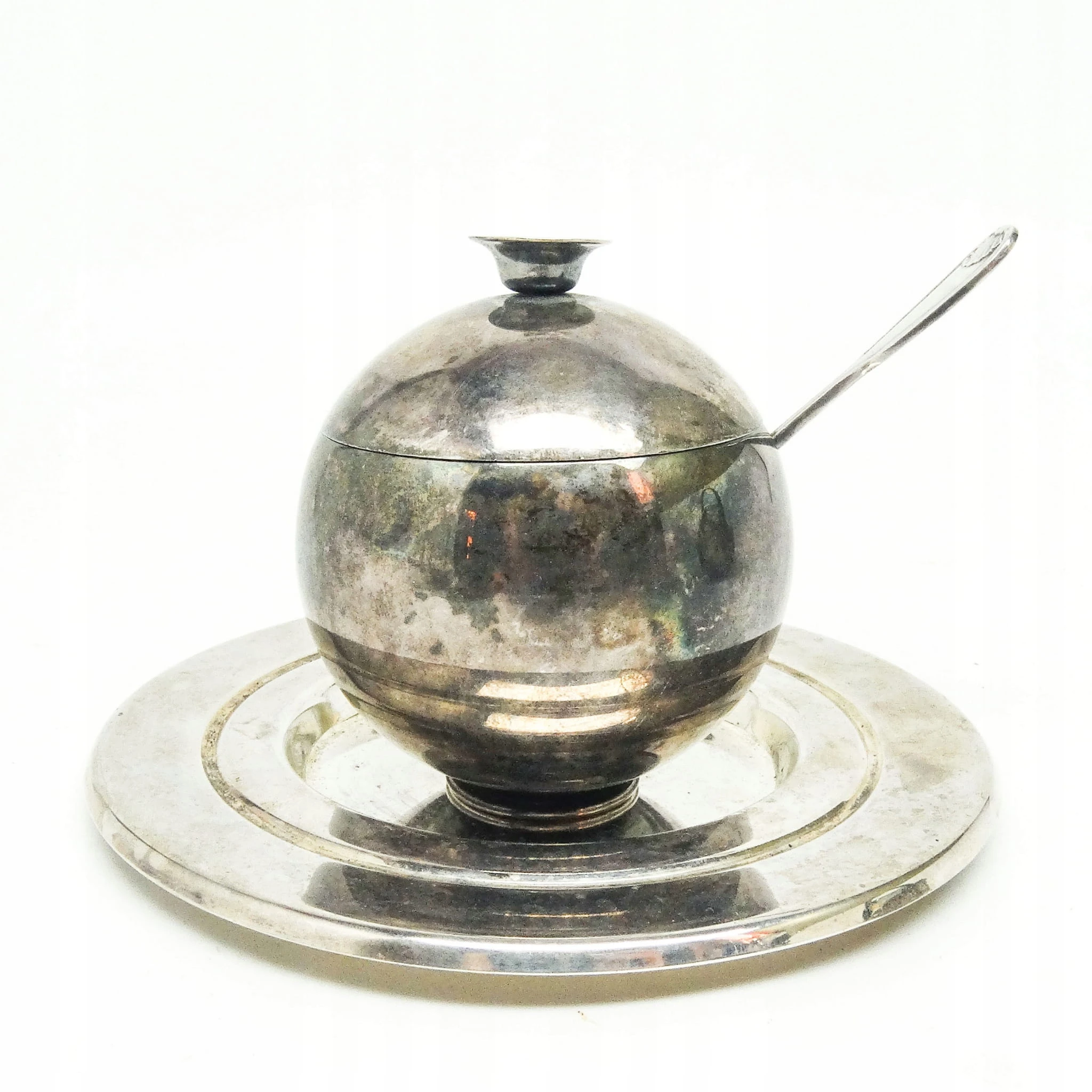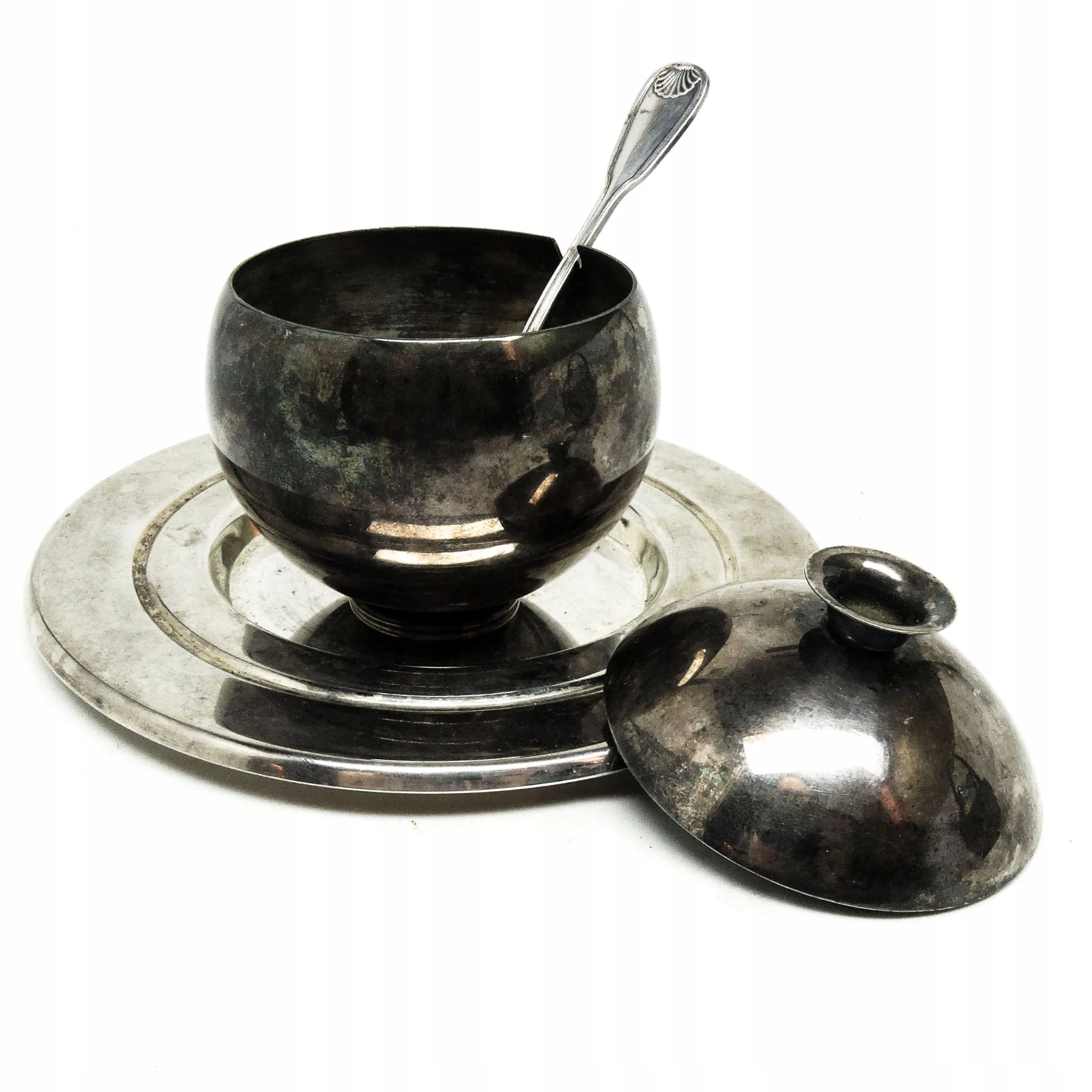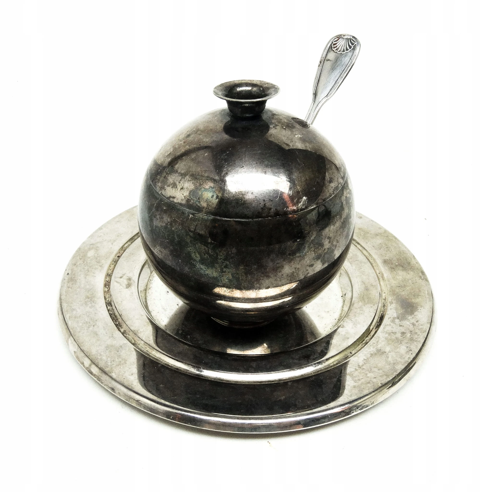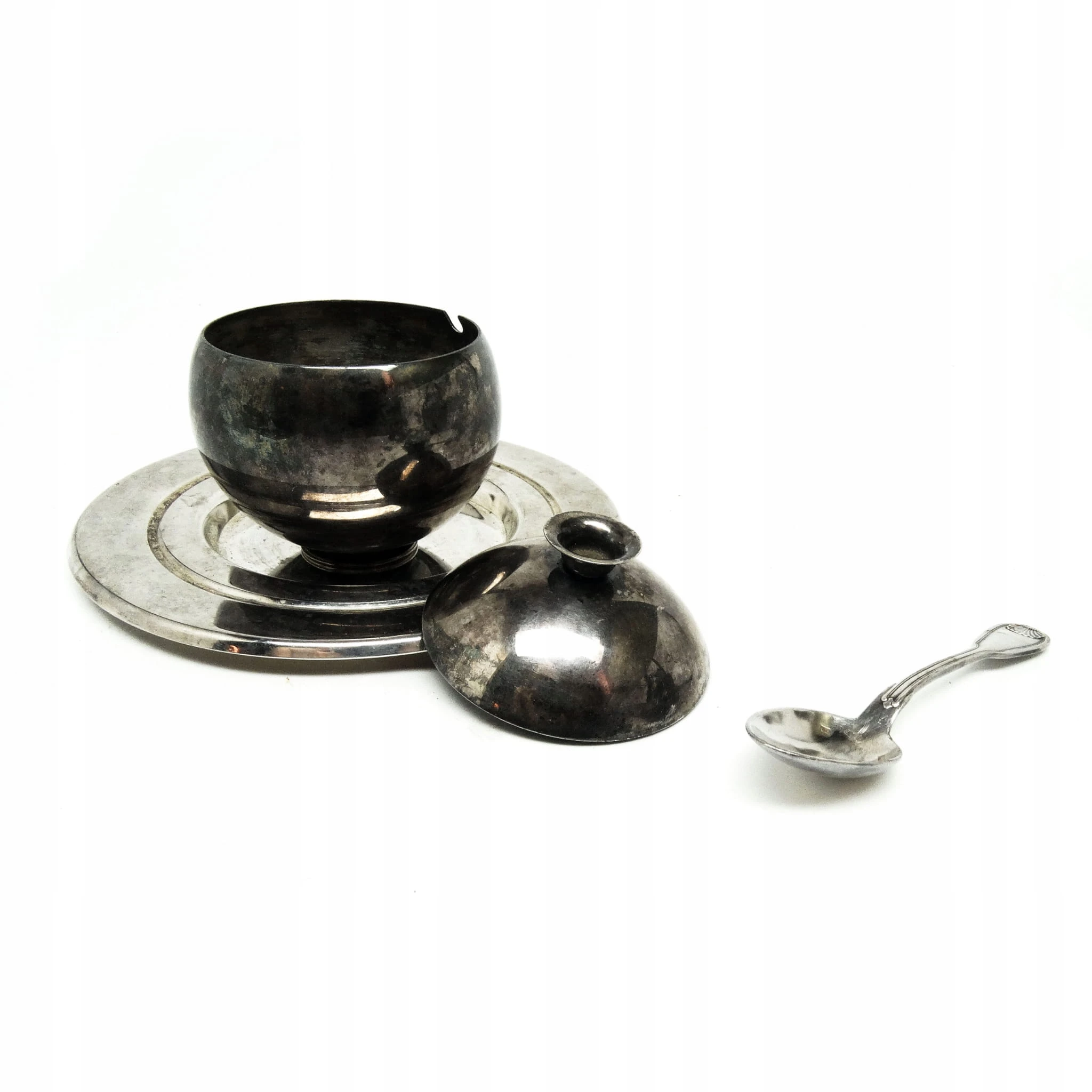 Cukiernica została wyprodukowana w Zakładzie Hefra w Polsce w latach 60. Wykonana z mosiądzu srebrzonego. Zachowana jest w dobrym stanie. W zestawie łyżka oraz spodek.