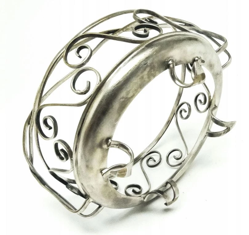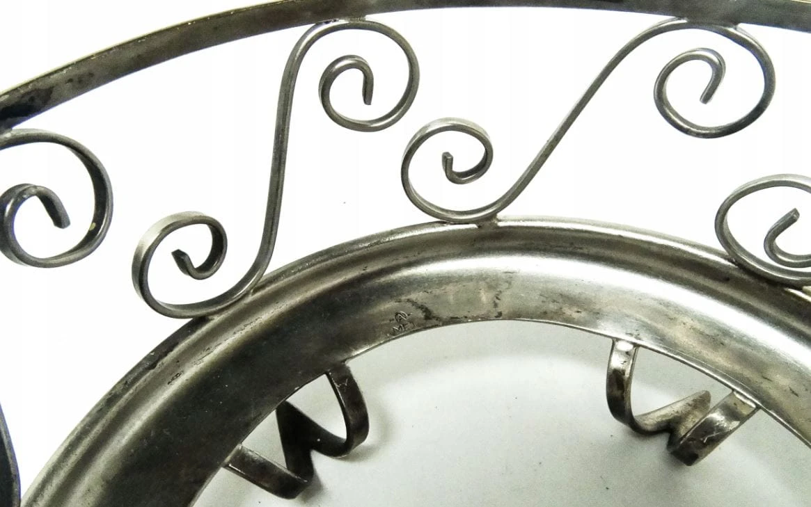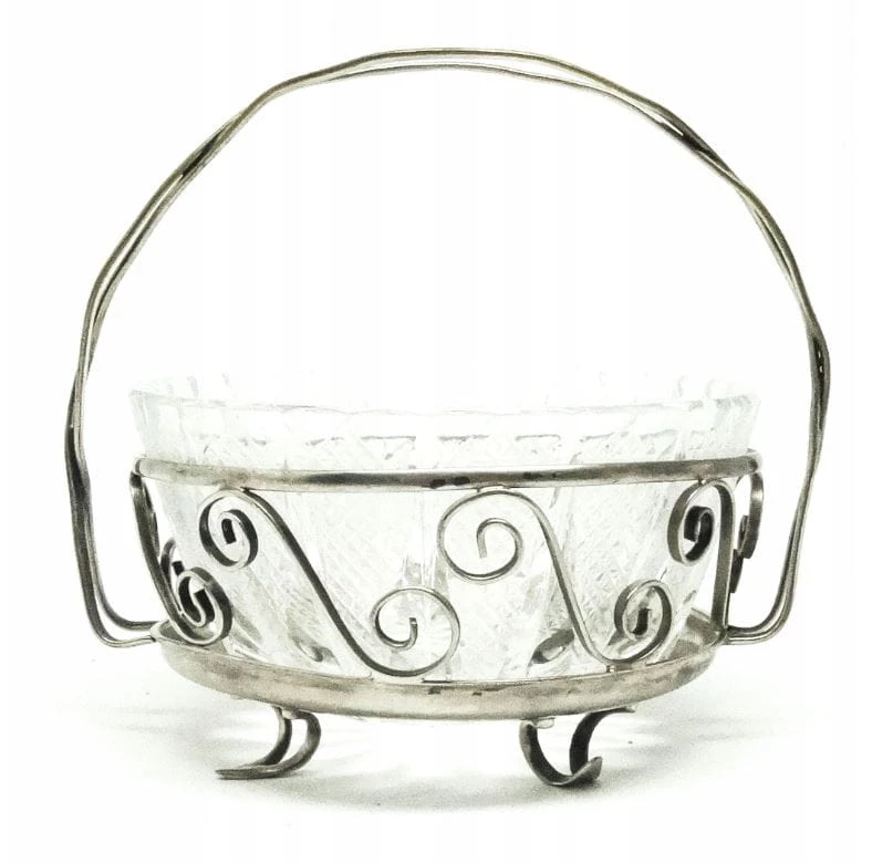 Cukiernica została wyprodukowana w Zakładzie Hefra w Polsce w latach 60. Wykonana z mosiądzu srebrzonego. Nosi ślady użytkowania.