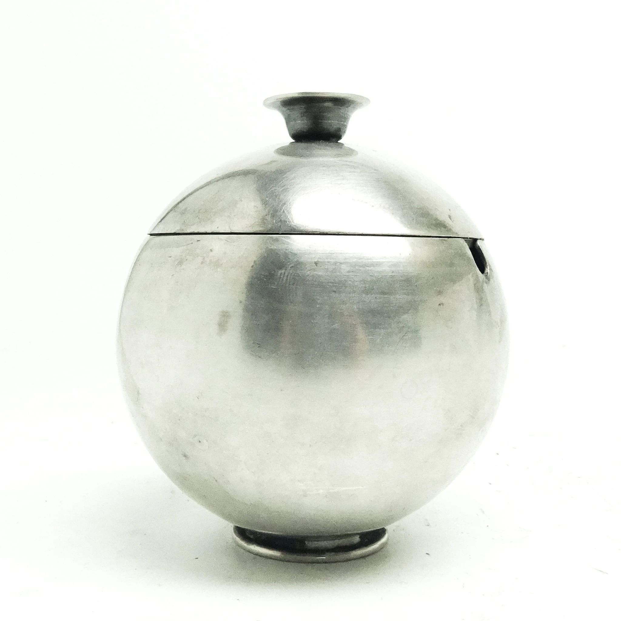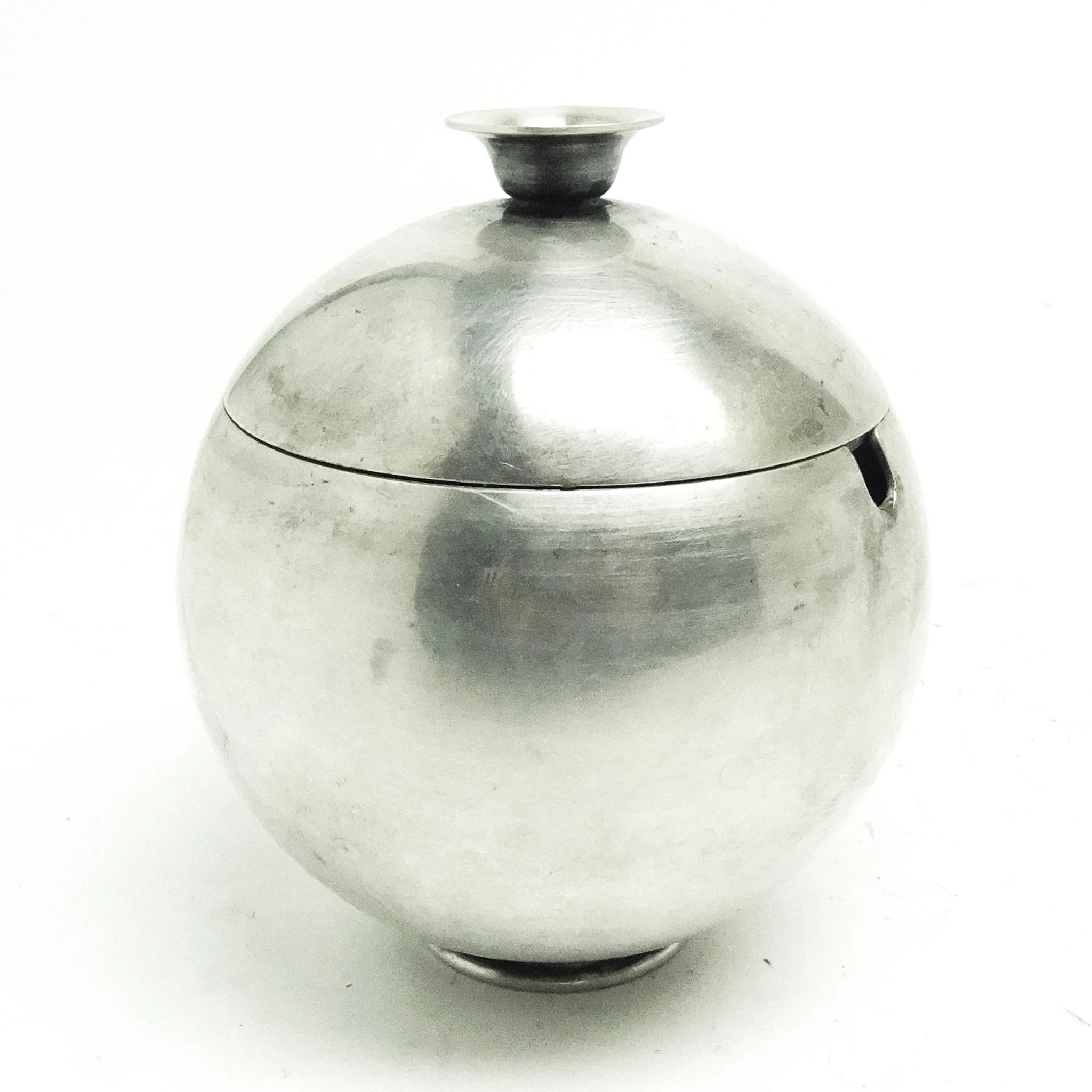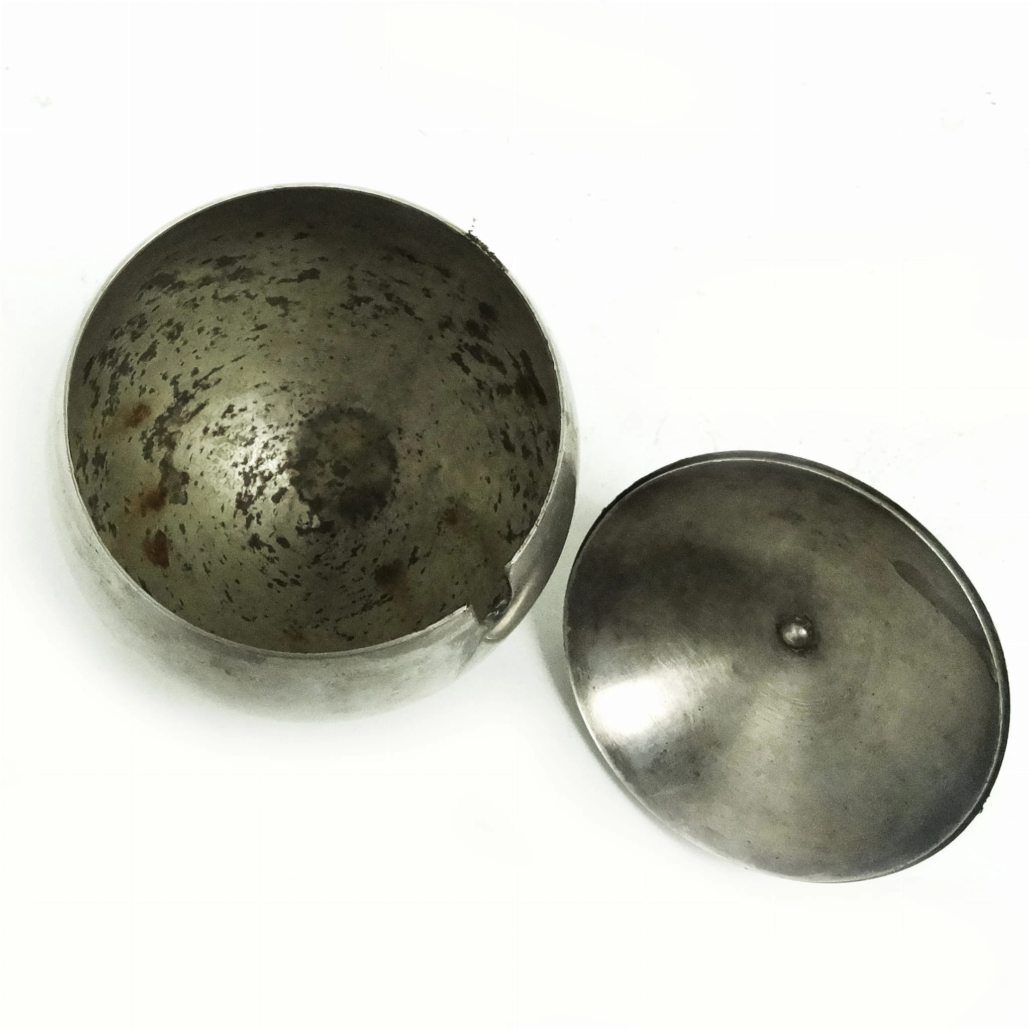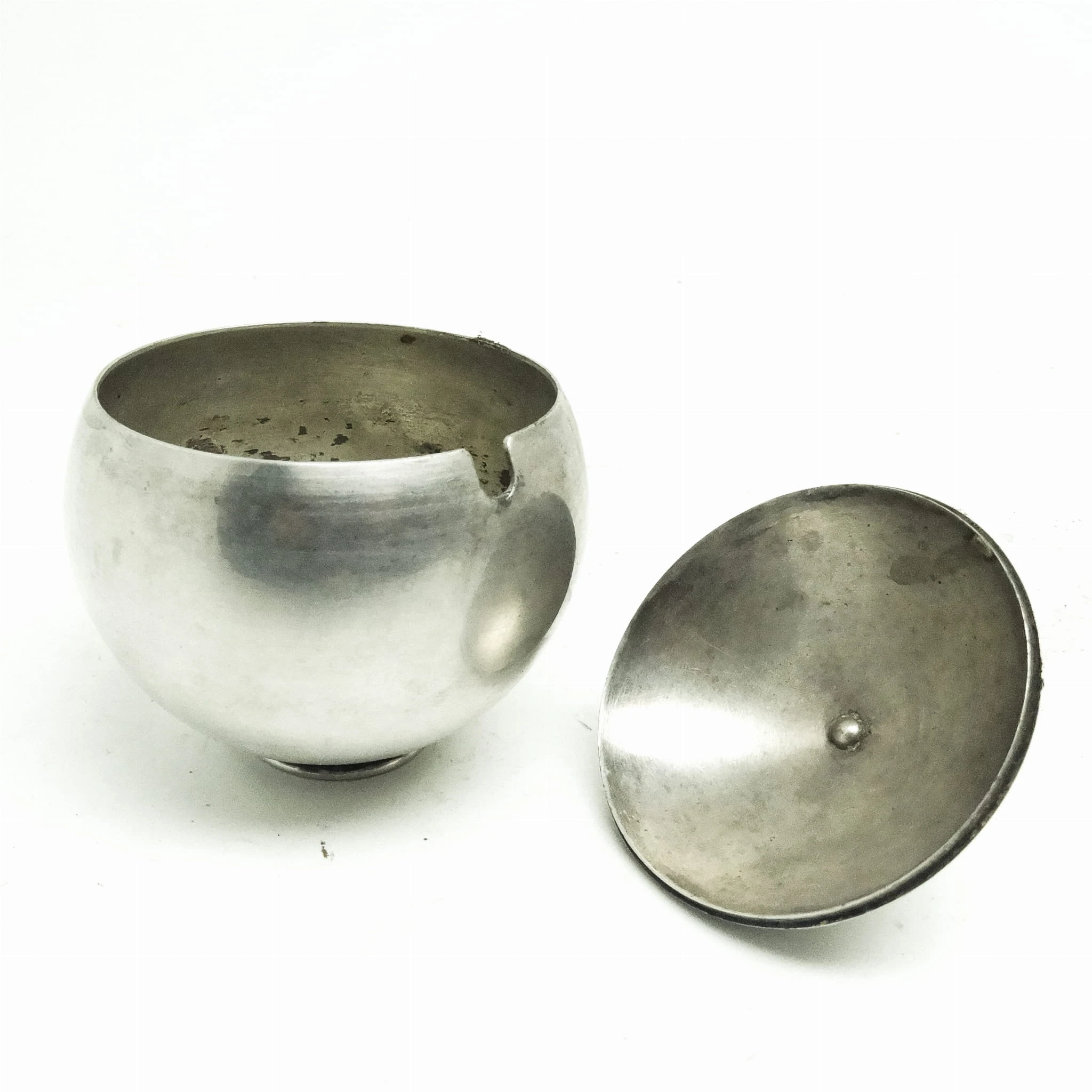 Cukiernica została wyprodukowana w Zakładzie Hefra w Polsce w latach 60. Wykonana z mosiądzu srebrzonego. Zachowana jest w dobrym stanie.
