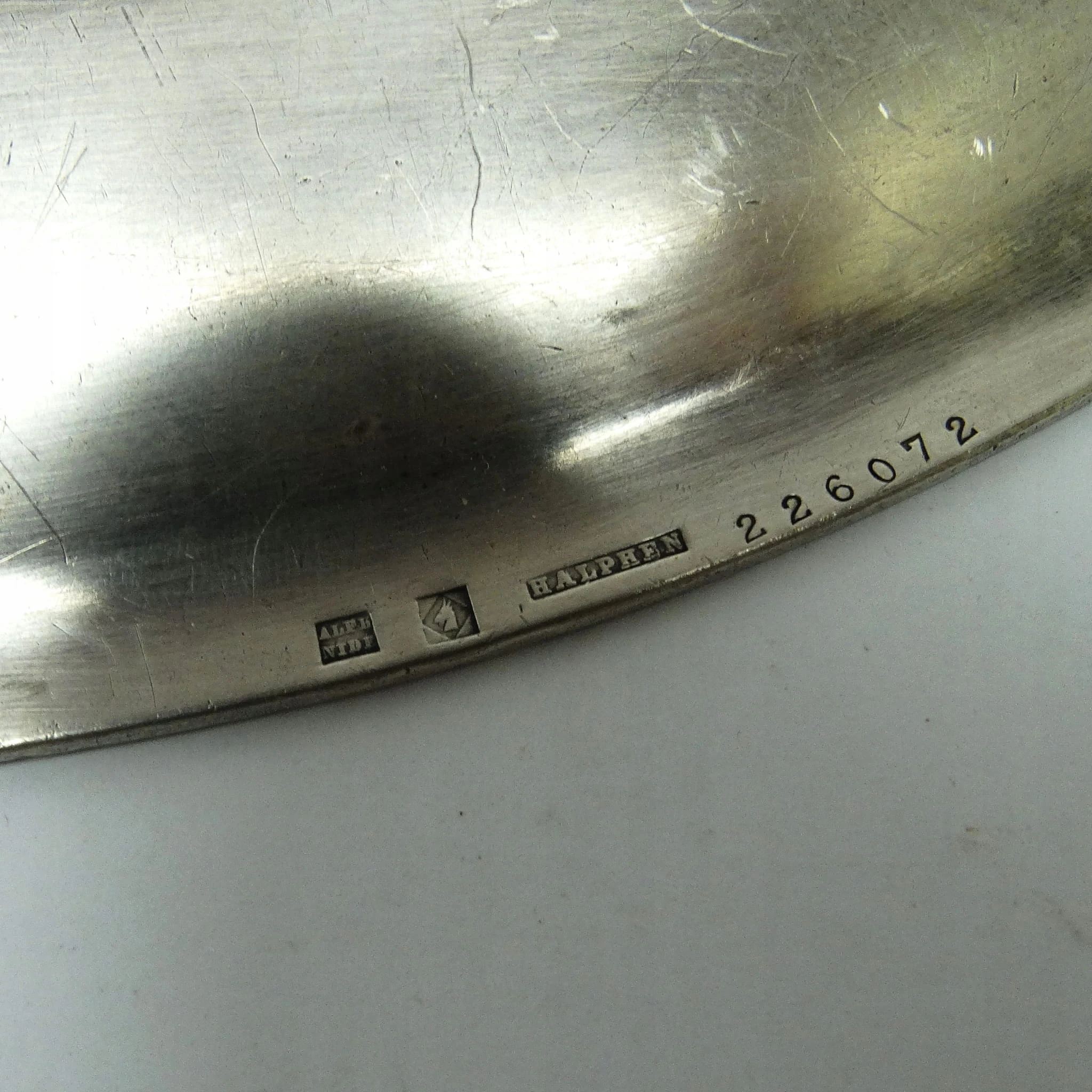 Taca została wykonana we Francji przez wytwórnię Halphen. Pochodzi z lat 50. Stan dobry