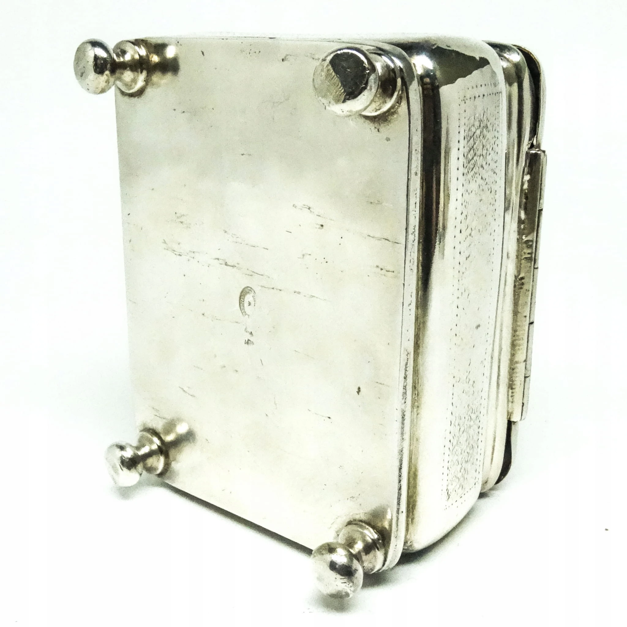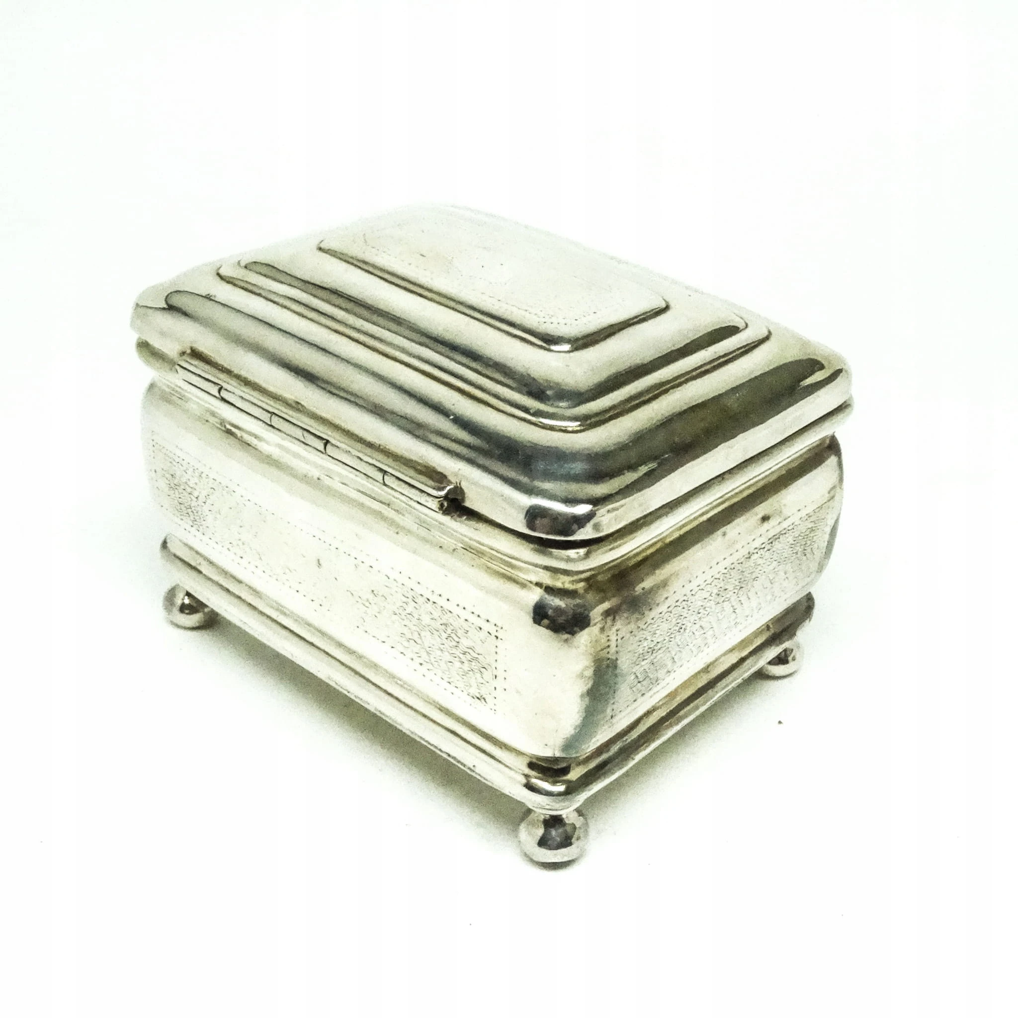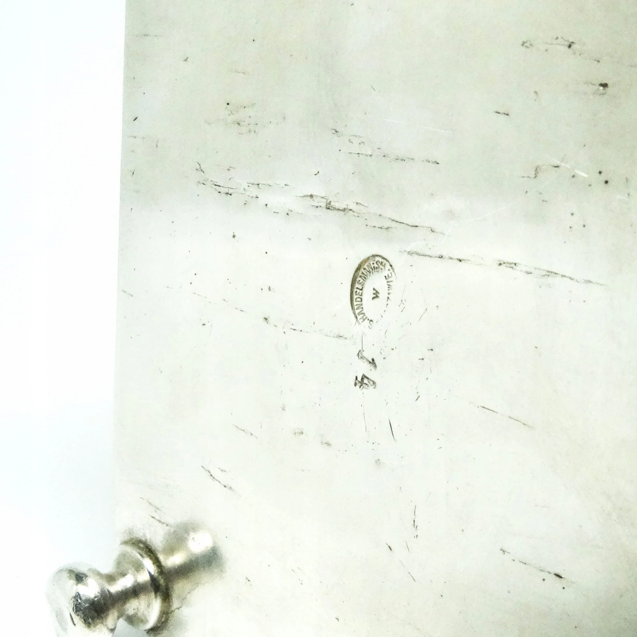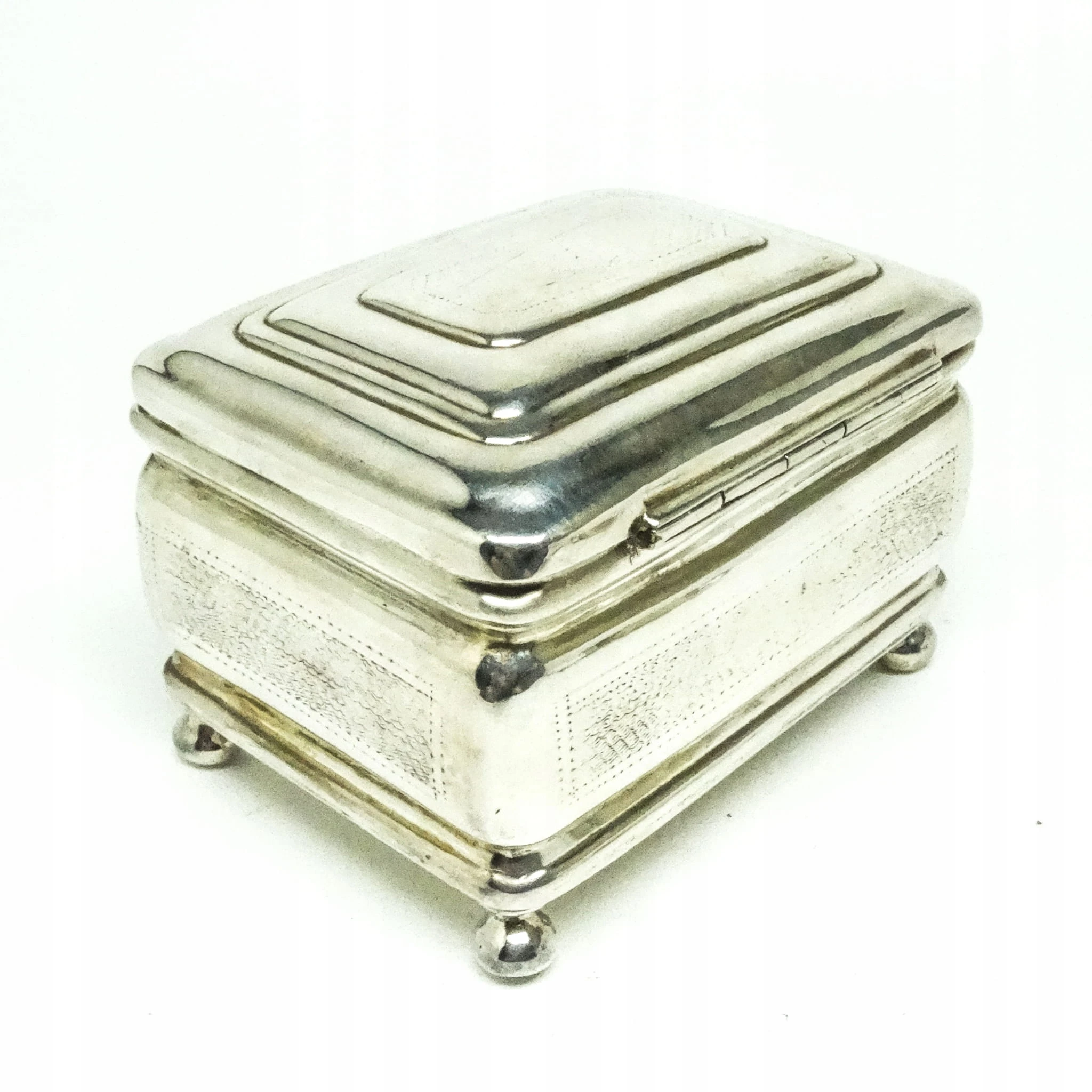 Cukiernica skrzynkowa została wyprodukowana w wytwórni platerów Handelsmann w Warszawie w latach 80. XIX wieku. Posiada zamek i kluczyk, stan dobry.
