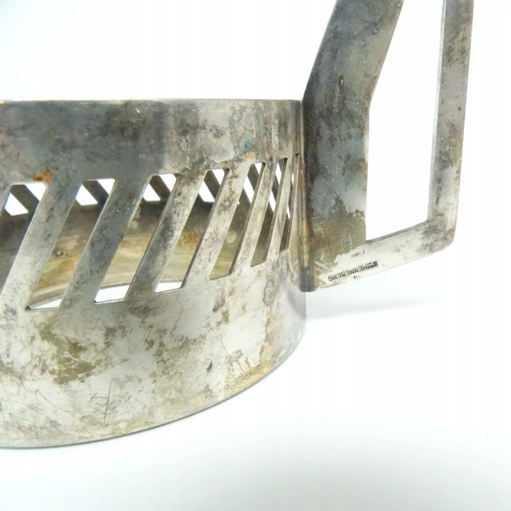 Koszyk do herbaty został wykonany w wytwórni platerów Bracia Henneberg w Warszawie. Pochodzi z lat 30. Obiekt jest w dobrym stanie.