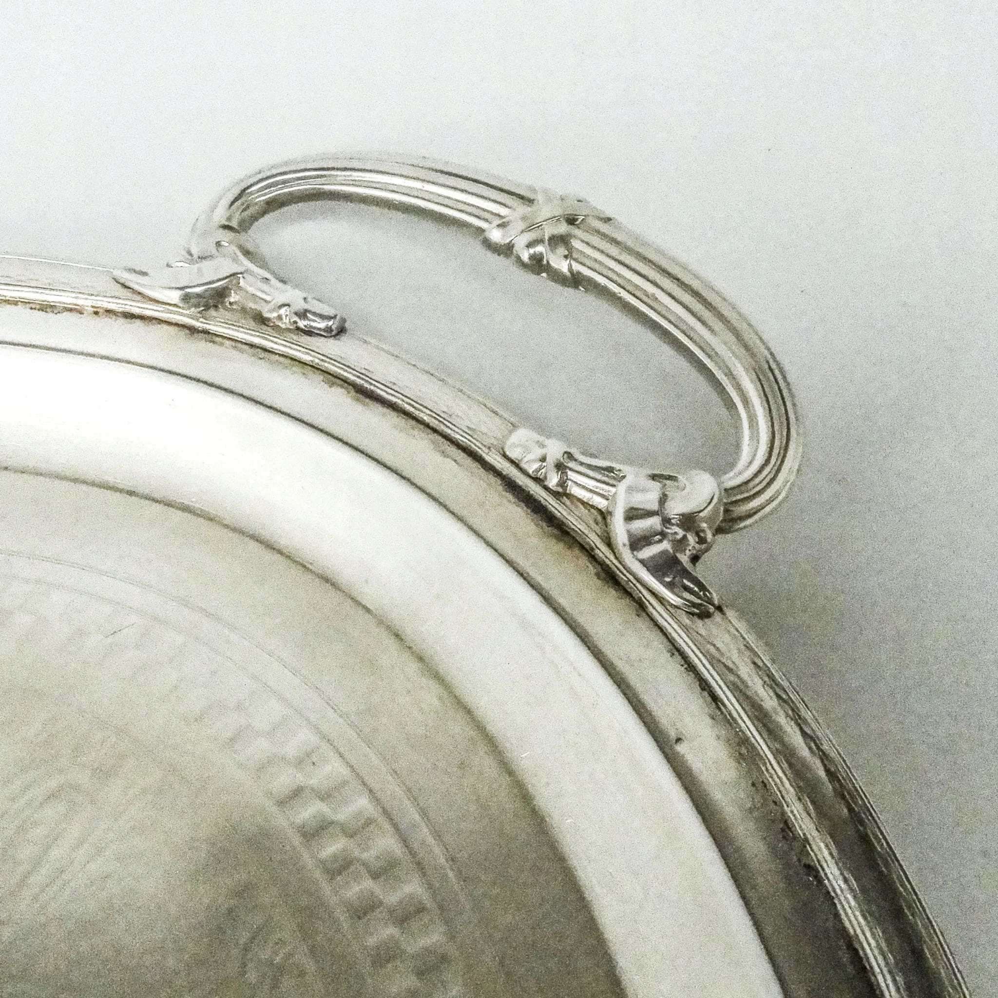 Taca została wykonana w wytwórni platerów Braci Henneberg w Warszawie. Pochodzi z lat 1870-1890. Stan dobry, była poddawana renowacji. Taca jest giloszowana. Posiada wzór grecki. Jest sygnowana. Klasa przedmiotu jest bez wątpienia wysoka.