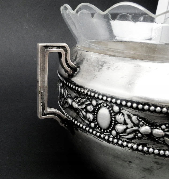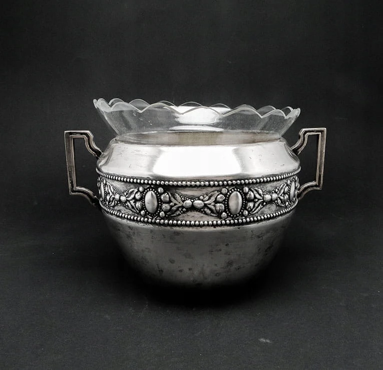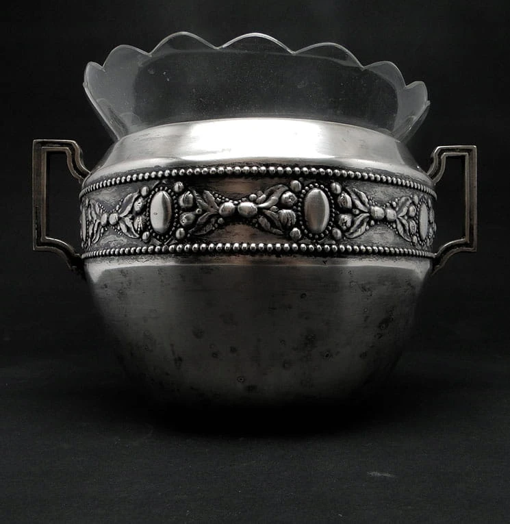 Klasycystyczna żardiniera wytwórni Br. Henneberg. Bardzo ozdobny przedmiot.