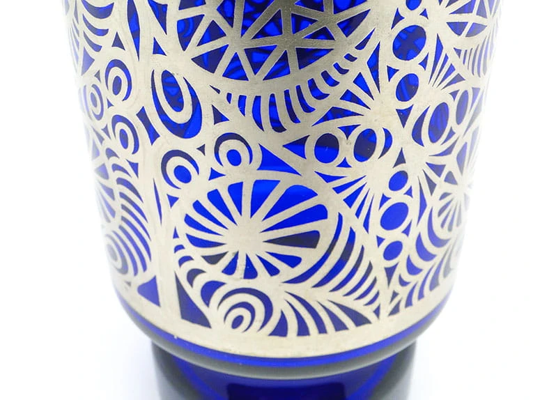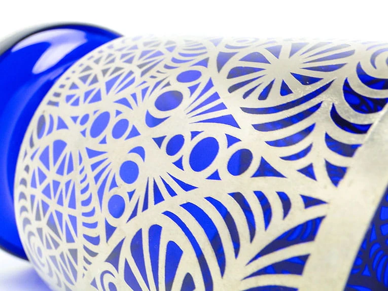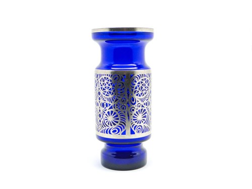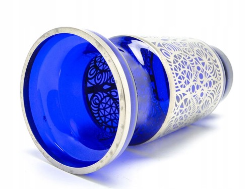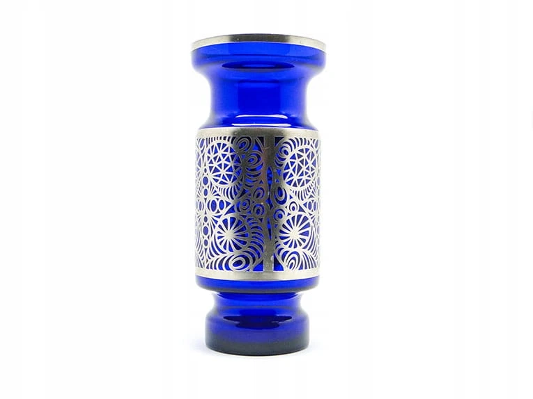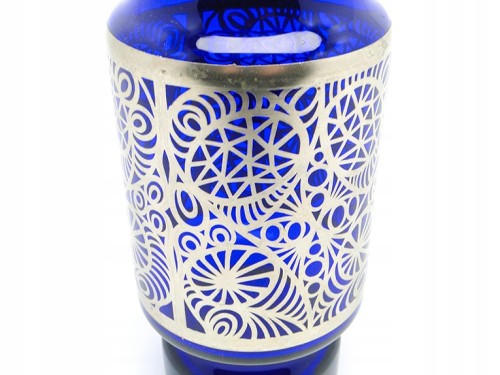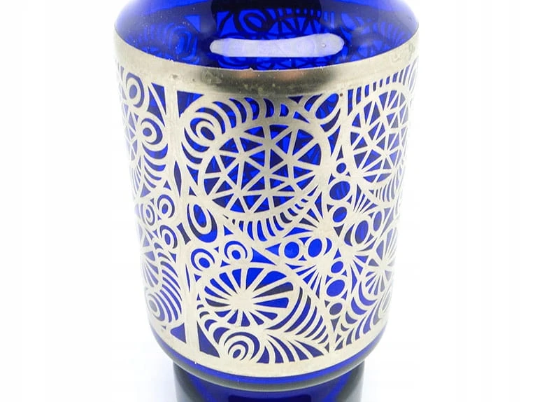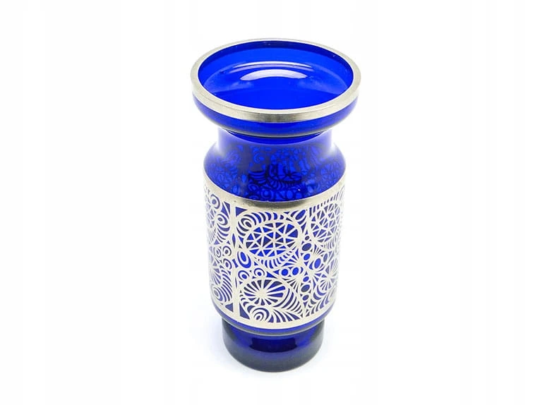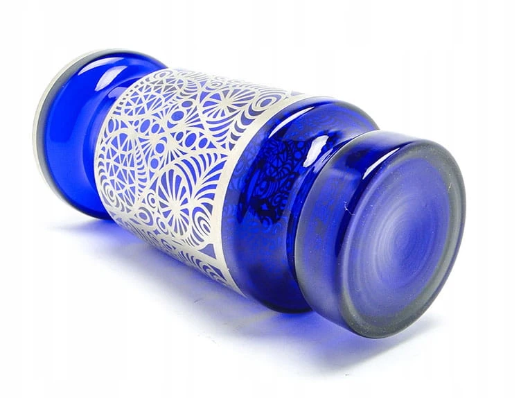 Kobaltowy wazon ze szkła wykonany w stylu POP-ART.