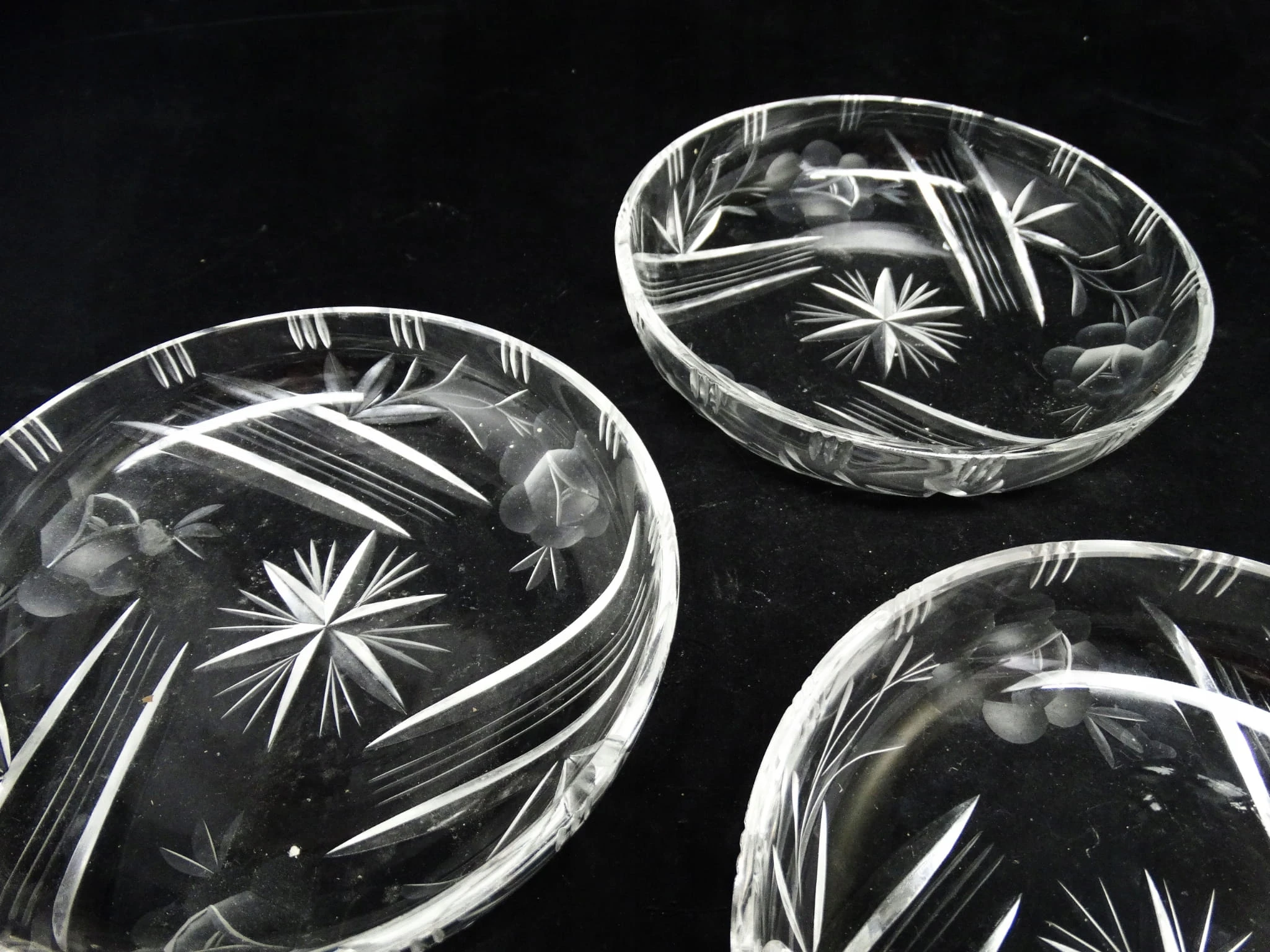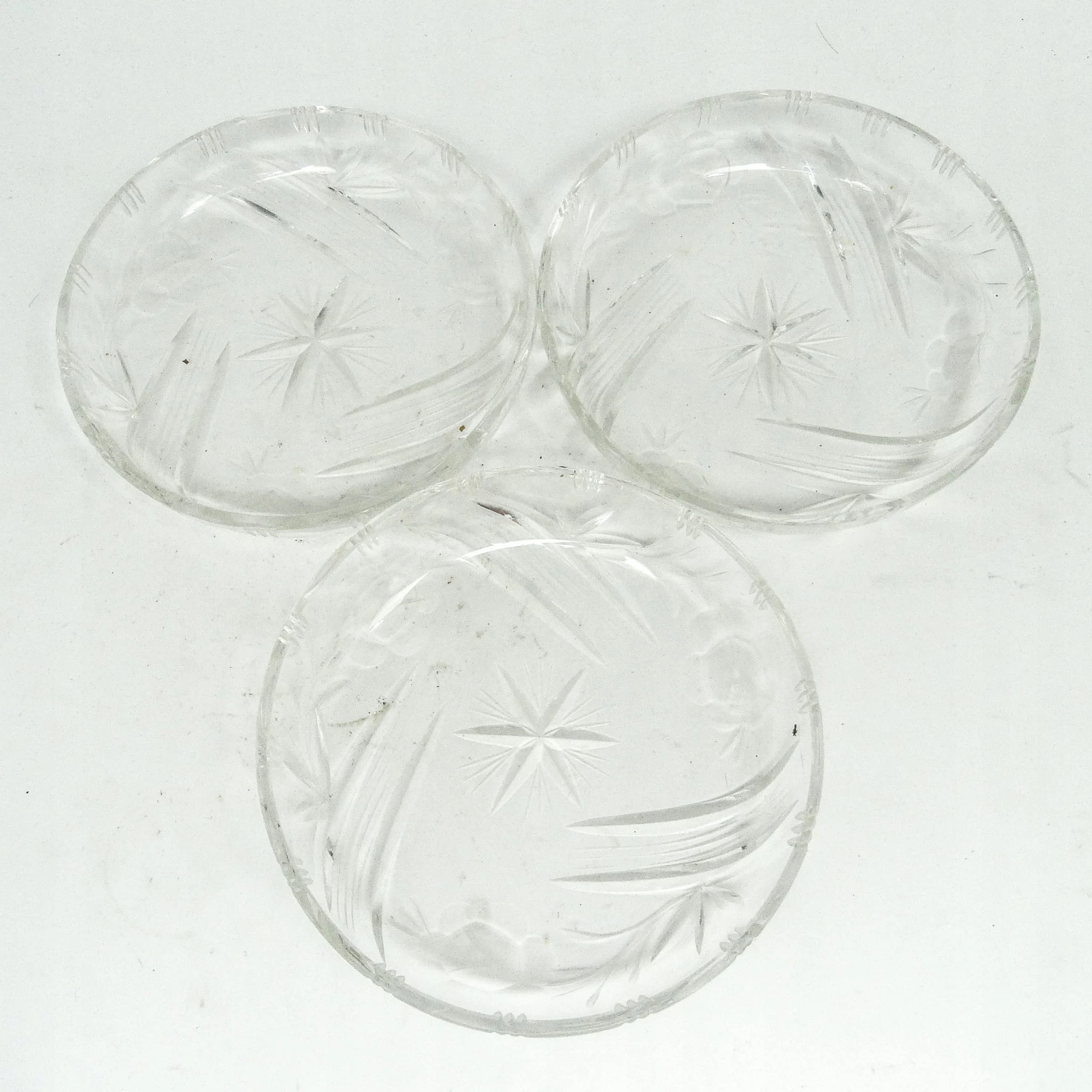 Komplet talerzyków - 3 szt. - pochodzi z Huty Hortensja, został wykonany w latach 30. Stan bardzo dobry.