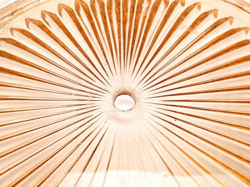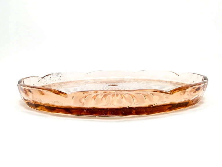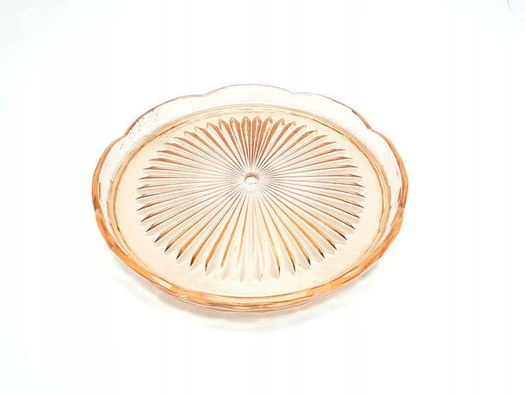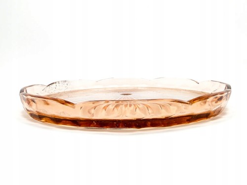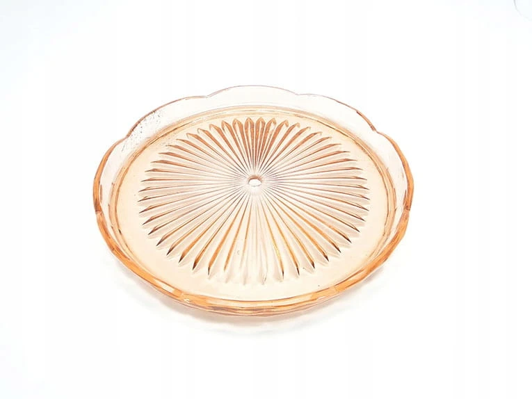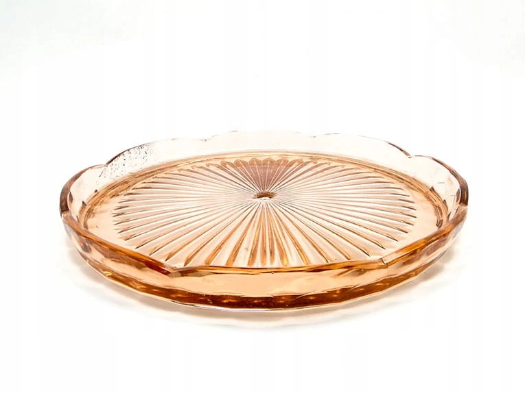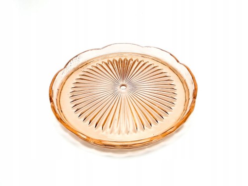 Talerz do patery / tortownicy w stylu Art Deco wykonany z czerwonego szkła lanego.